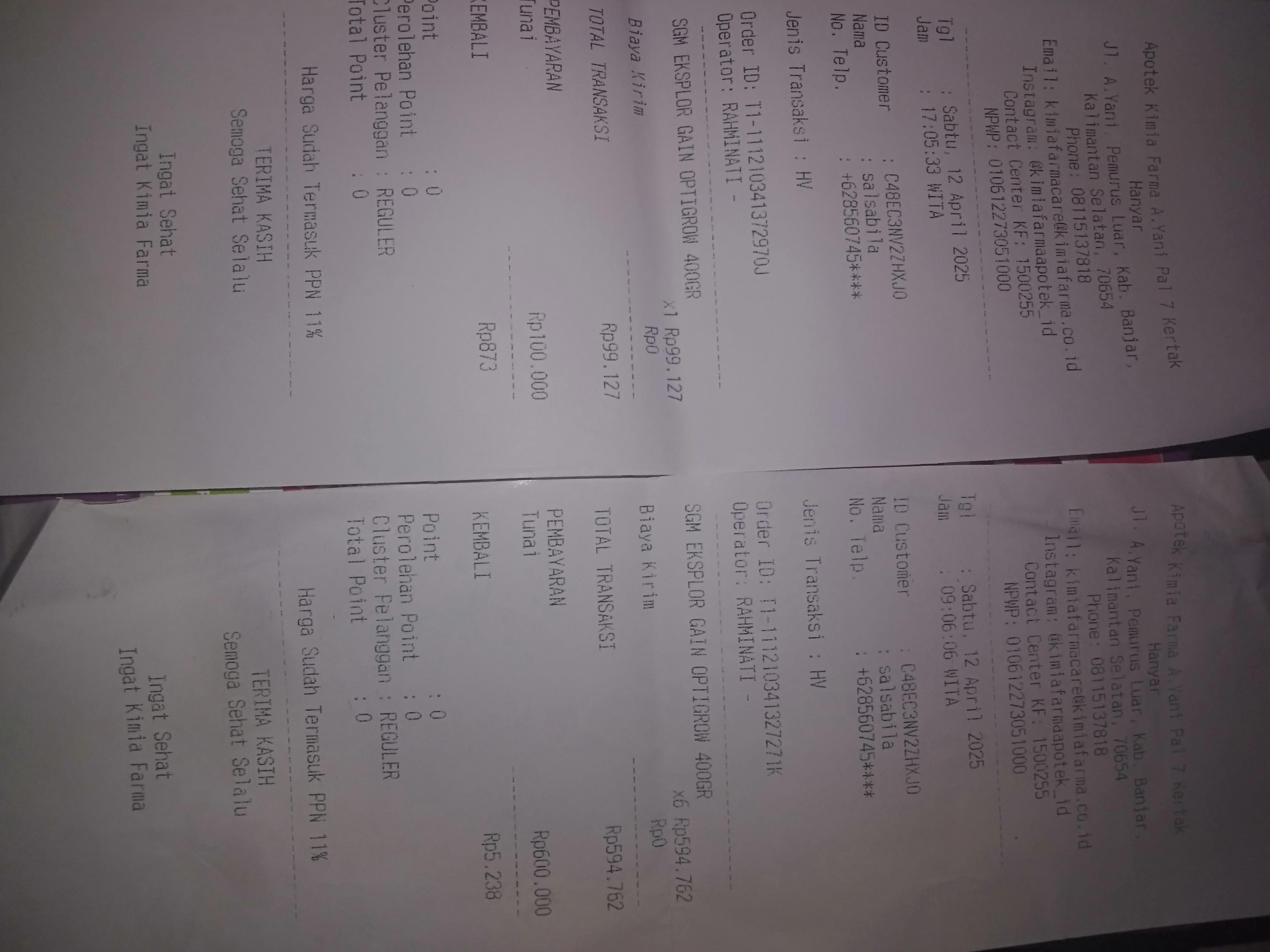 Dana digunakan untuk 1. Susu SGM ungu optigrow 1+ Rp100.000 x 3 dus = Rp300.000 2. Kontrol online ke RS jantung harapan kita Rp275.000 3. Biaya konsumsi kontrol di RSUD Ulin banjarmasin 2 kali Rp150.0002025-08-18 09:35:44