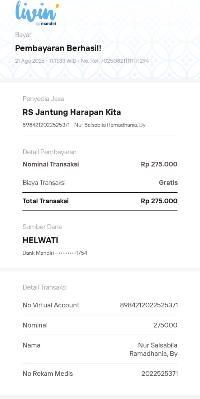 Saat ini Salsabila masih menunggu antrian untuk kontrol. Hasil kontrol online di Rumah Sakit Harapan Kita juga belum tahu kapan jadwal kateterisasi jantungnya.