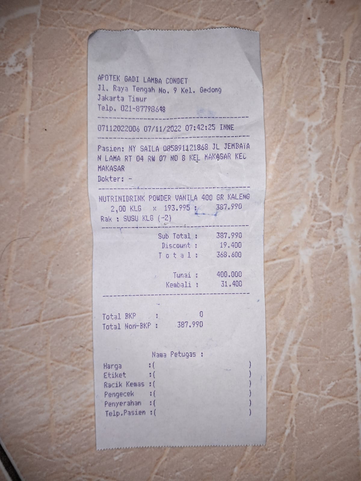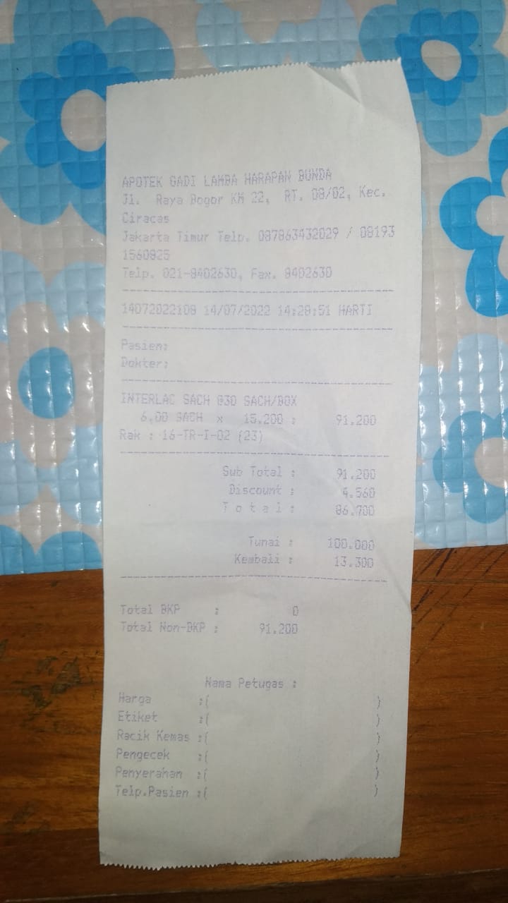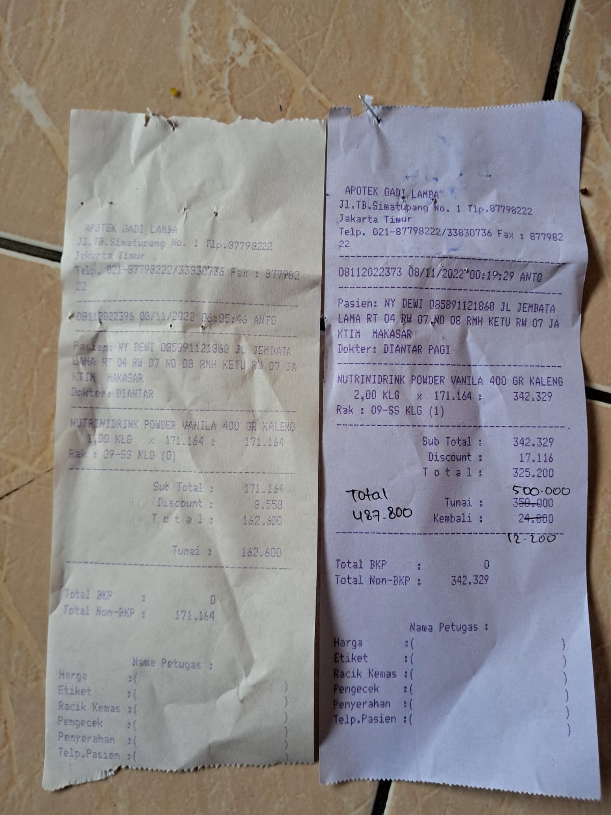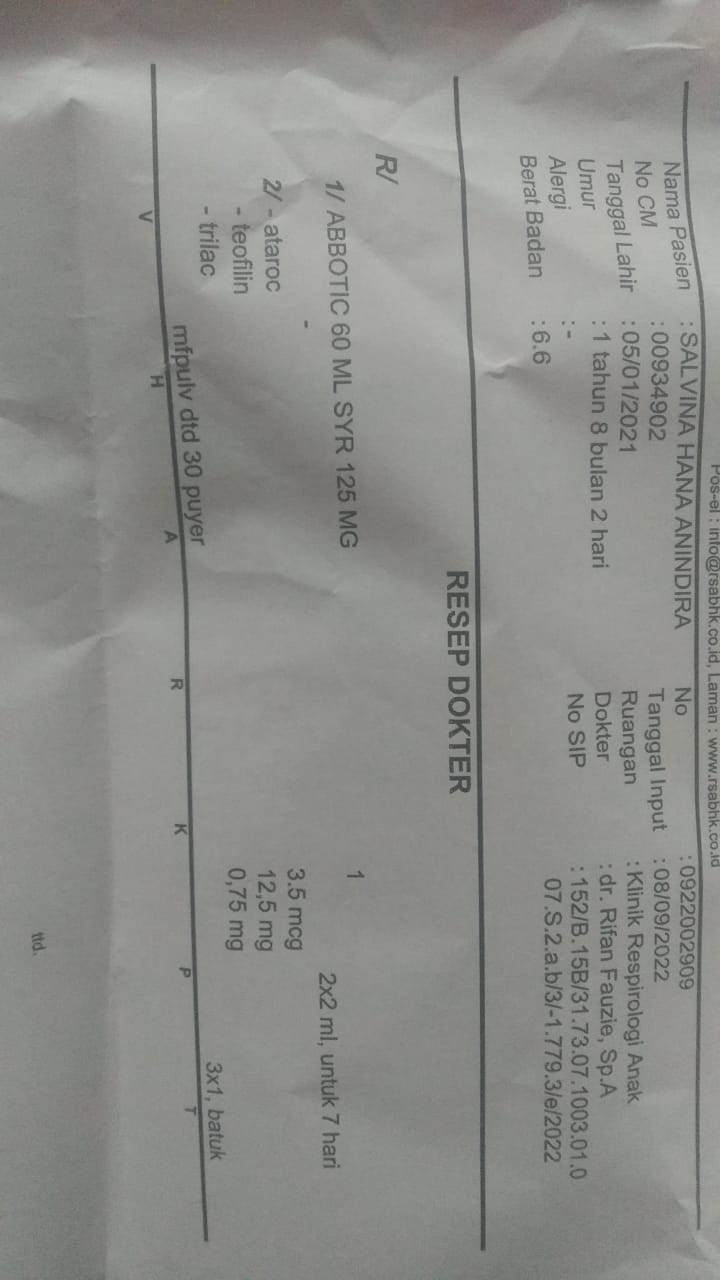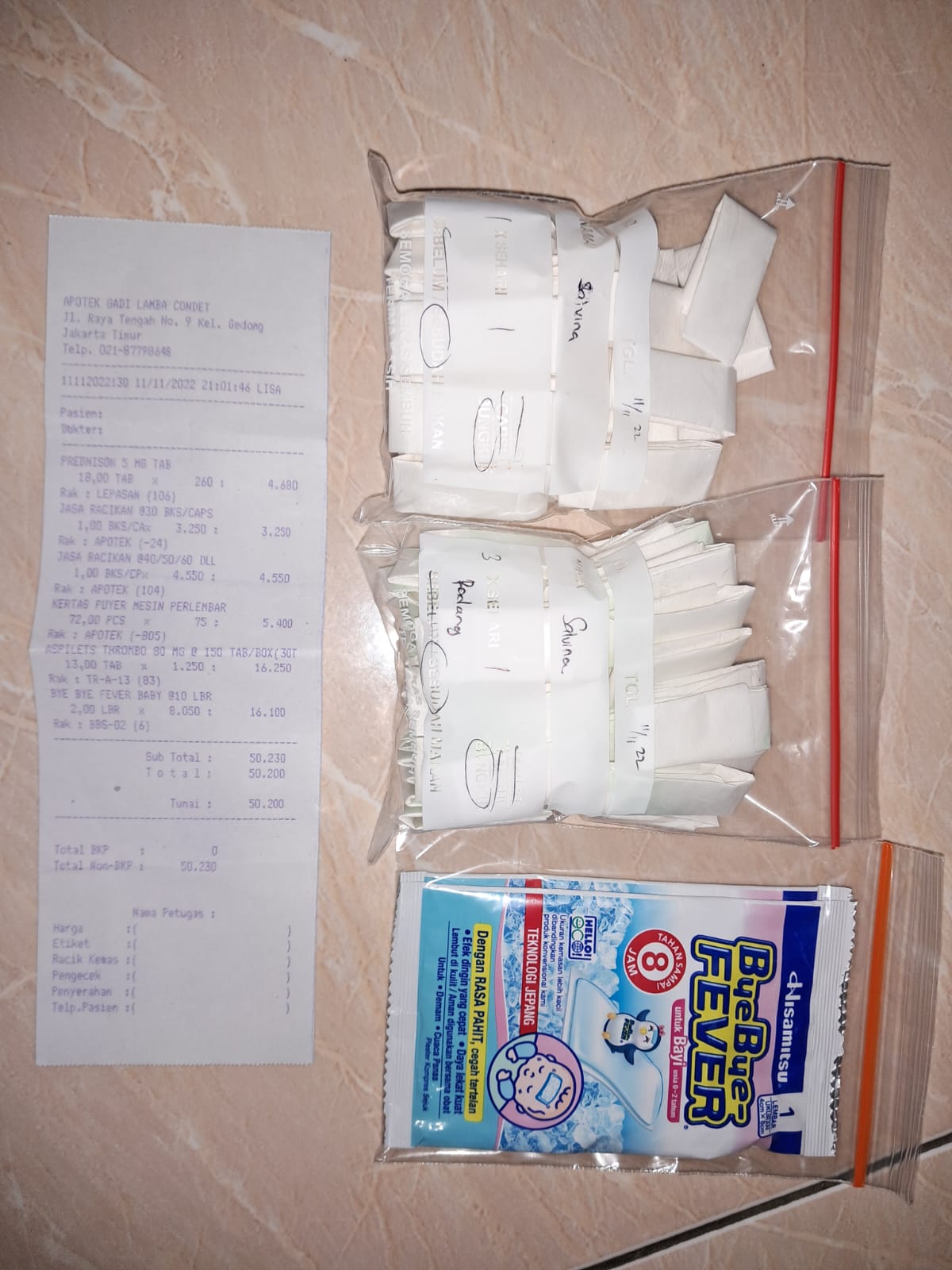 Untuk obat kemarin saya beli sendiri karena sudah habis. Harusnya, Salvina kontrol 1 minggu setelah rawat inap, namun tidak dapat kuota, sehingga baru kontrol kemarin.