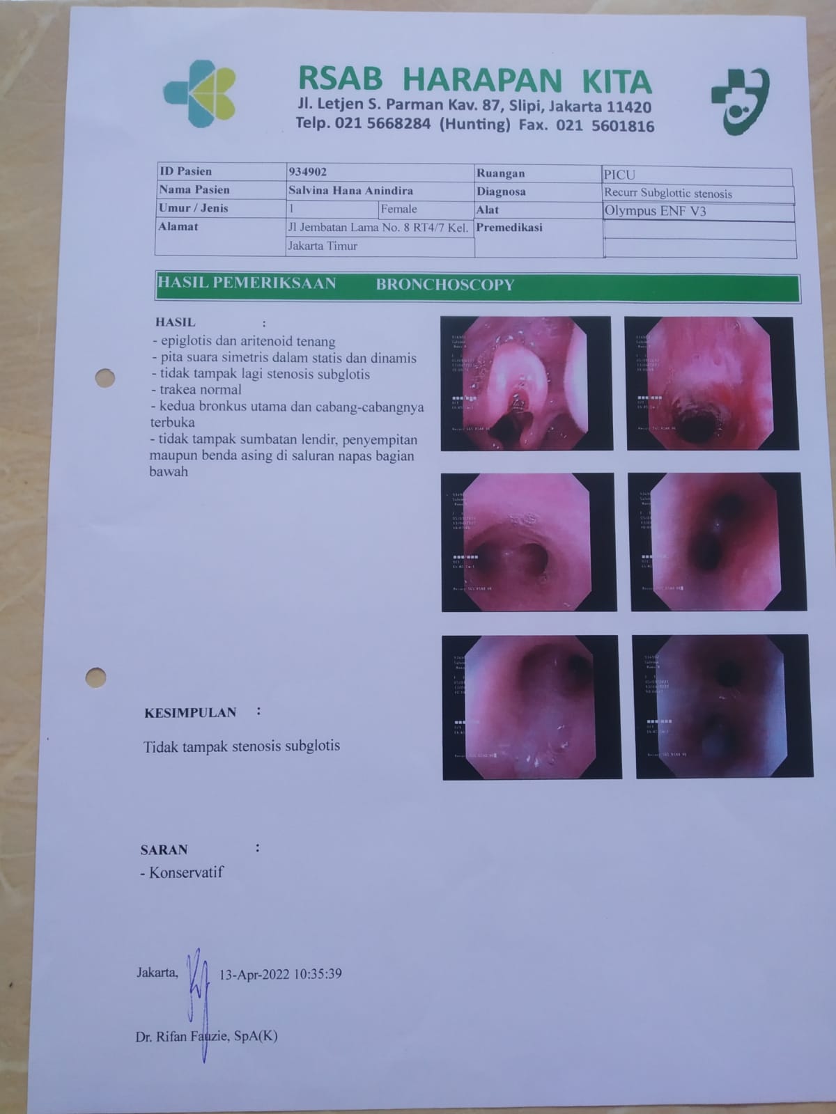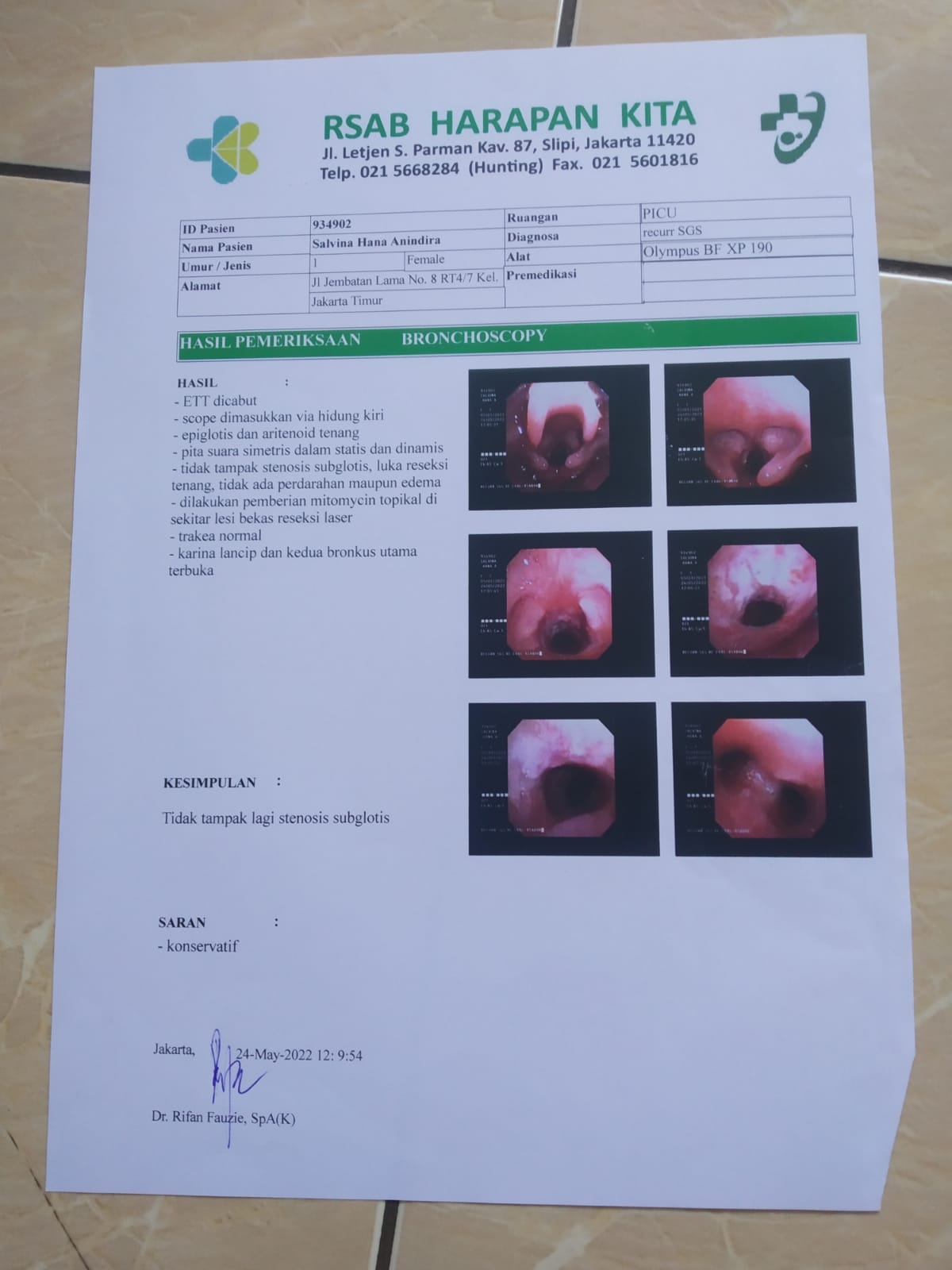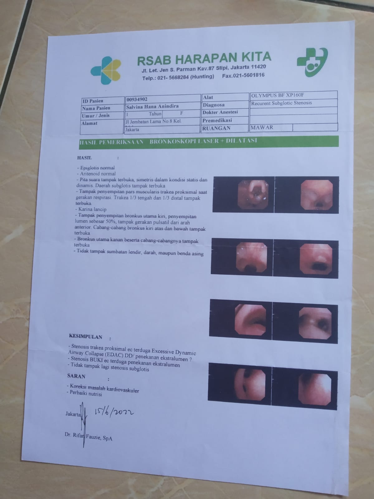 Saat ini kondisi Salvina masih kurang baik, kemarin sempat kontrol dokter respirologi, namun belum ada jadwal untuk evaluasi stenosisnya.
