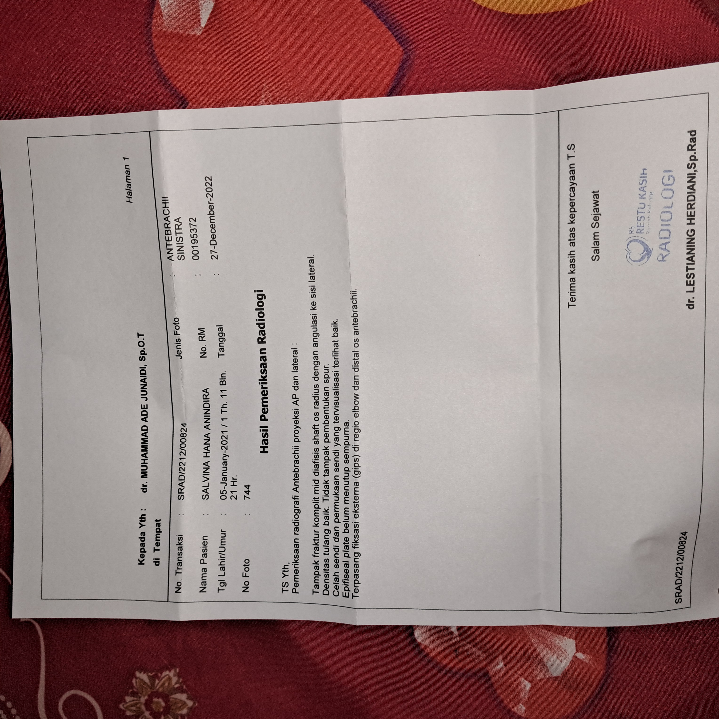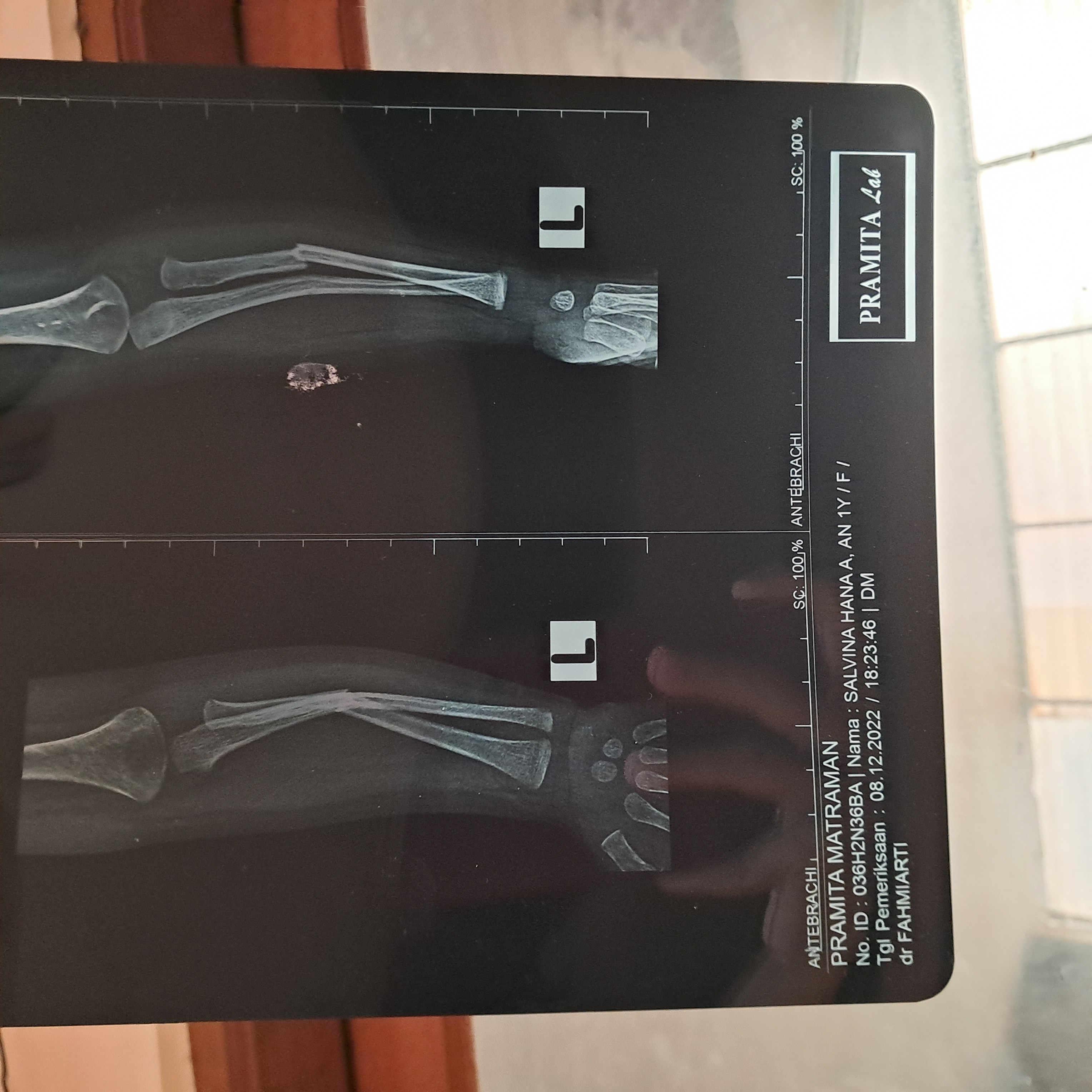 Untuk masalah tangan yang patah sudah di rontgen ulang dan hasilnya pun membaik.
