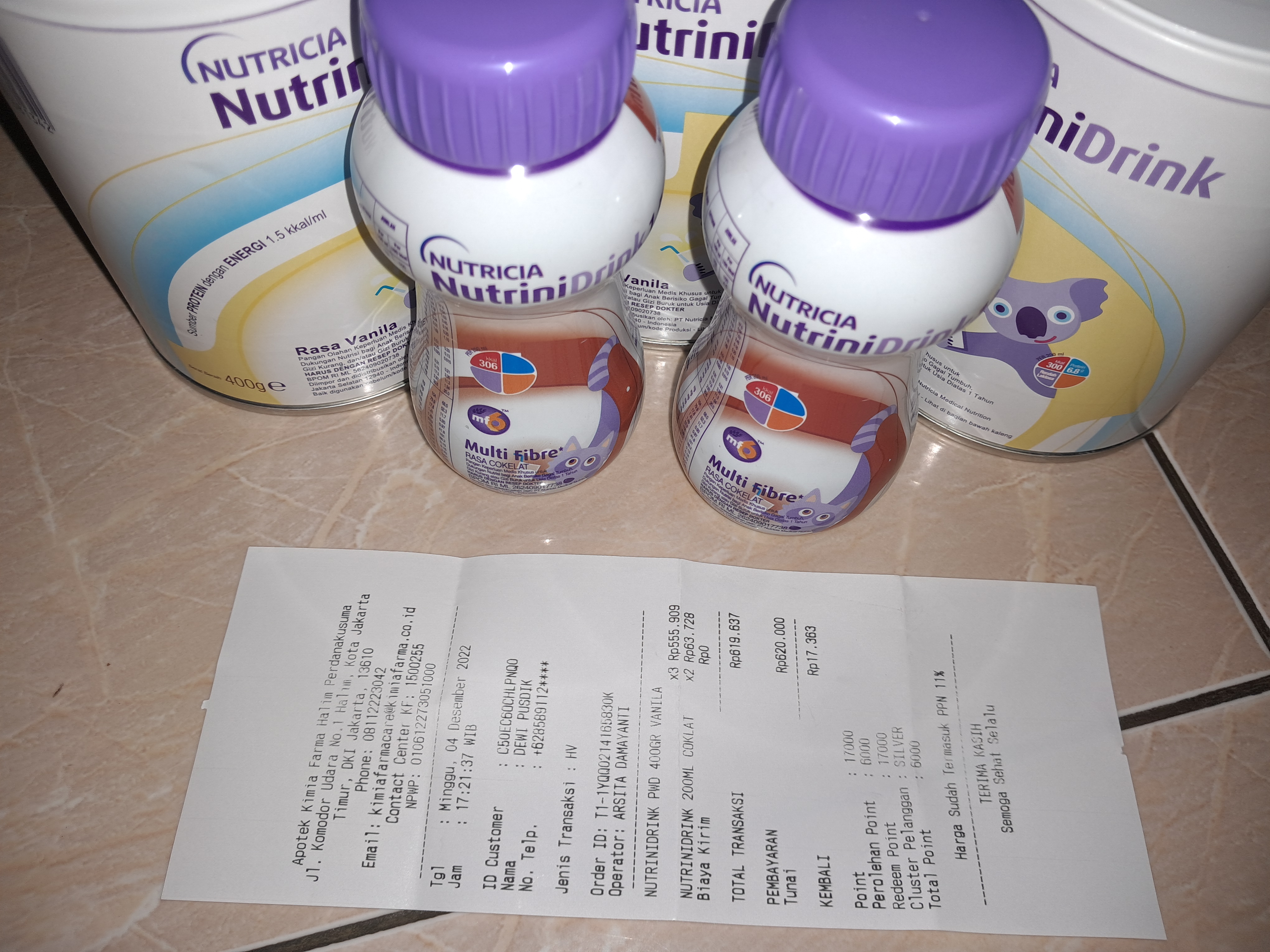 Dana digunakan untuk 1. Susu Nutrinidrink powder 1 kaleng Rp195.000 2. Susu Nutrinidrink cair 2 botol Rp64.000 3. Biaya transportasi ke RS Rp100.000 4. Obat Nebu 6 ampul Rp60.000.2023-01-10 15:52:42