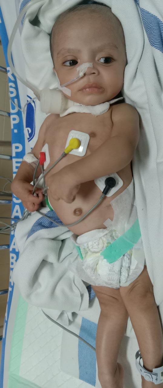 Gejala awalnya saat Sky masih berusia 4 bulan ia mengalami batuk bahkan demam naik turun. Saya kemudian membawanya ke RSUD Tangerang Selatan, sesampainya di sana Sky kejang-kejang dan tak berhenti. Akhirnya ia dimasukan ke ruang PICU/ICU. Karena tak ada perubahan, Sky dirujuk ke RSUP Persahabatan