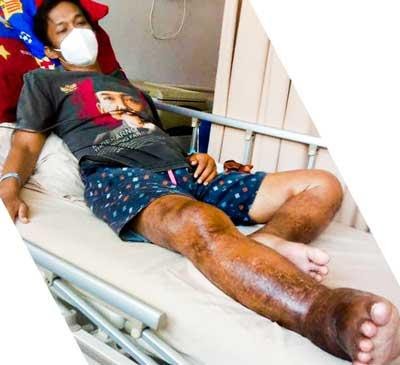 Saat ini, Pak Sumardi harus ditangani dokter spesialis bedah tulang, dokter spesialis ginjal dan spesialis darah. Dokter mengatakan, Pak Sumardi harus transfusi darah setiap bulan. Kelainan saraf di kakinya juga butuh dipasangkan implant permanent. Seluruh biaya pengobatan ini bisa mencapai puluhan juta.