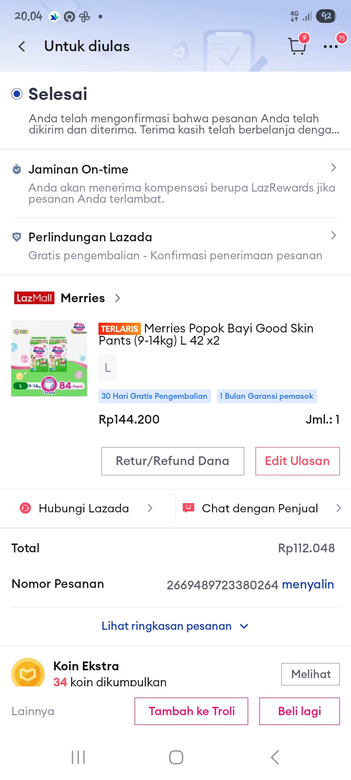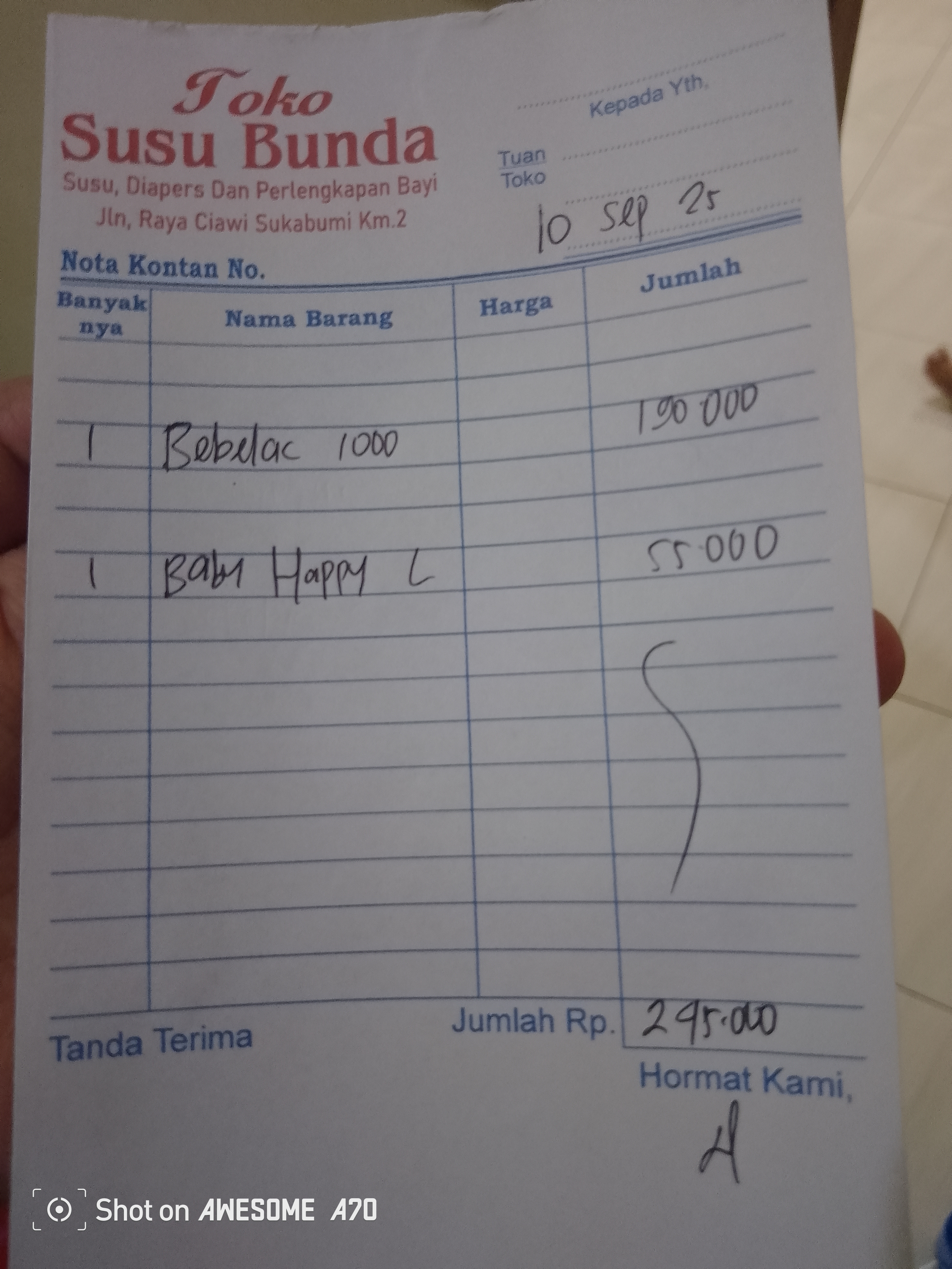 Dana digunakan untuk 1.Susu bebelac 1000 gram Rp.180.000 2.Diapers merries L44 Rp.80.000 x 2 ball = Rp.160.0002025-04-30 09:54:34