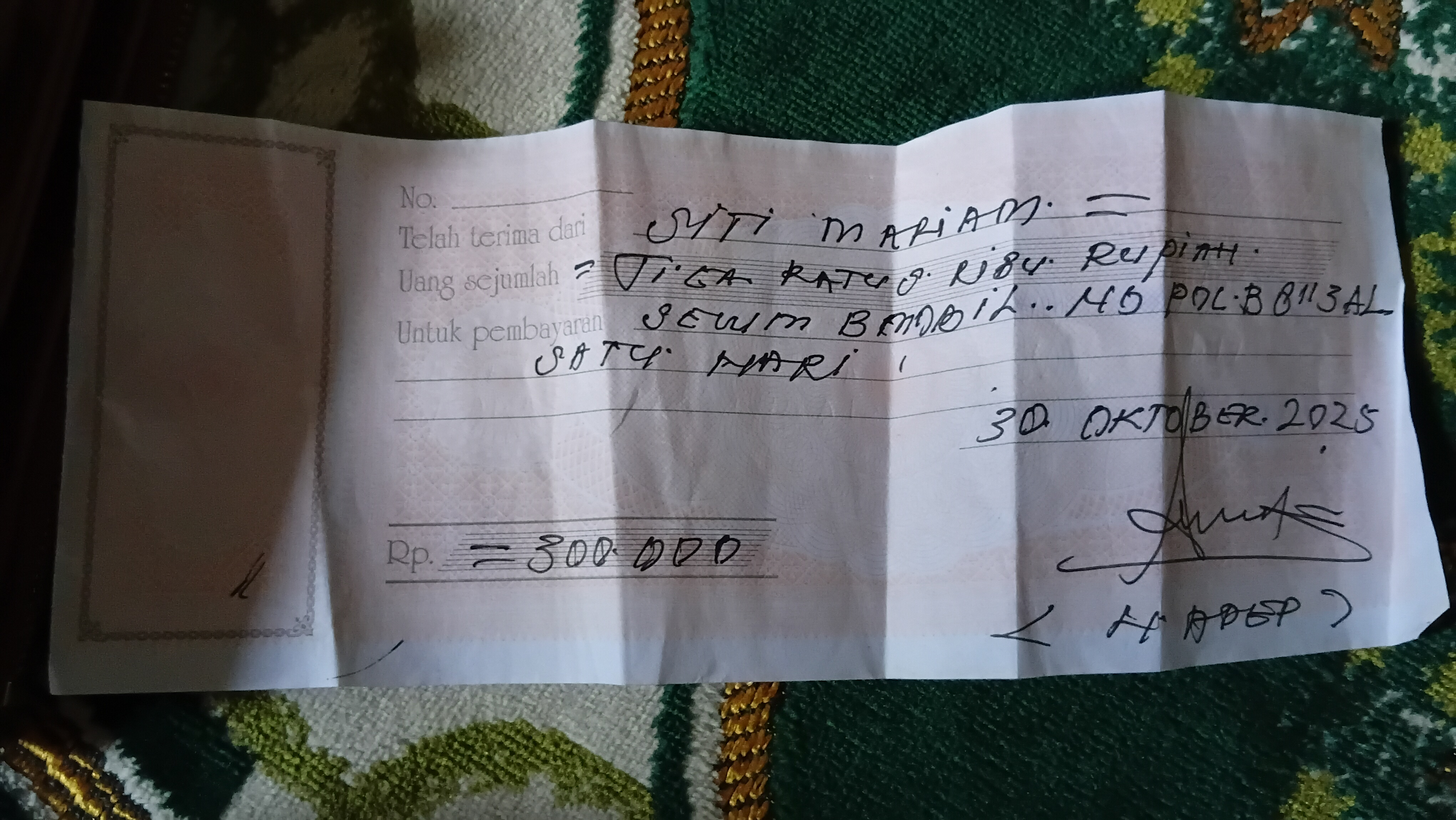 Dana digunakan untuk 1 .Susu pediacomplete Rp.380.000 2. Mamypoko L 42 Rp.70000 3.Transportasi sewa mobil ke RSCM Rp.300.0002025-10-06 10:29:59