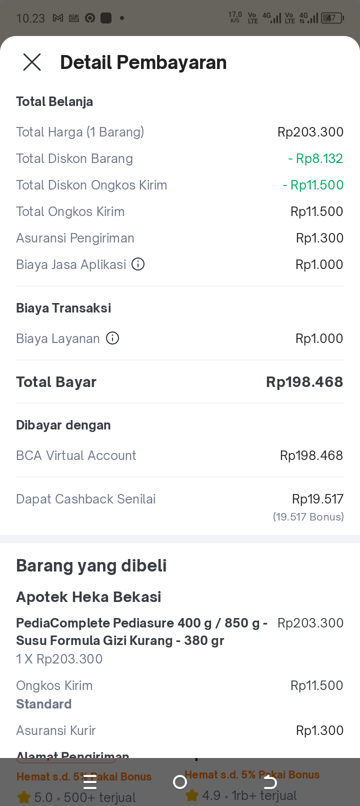 Dana digunakan untuk pembelian susu pediasure complete 850gram Rp400.000.2025-04-22 09:51:43