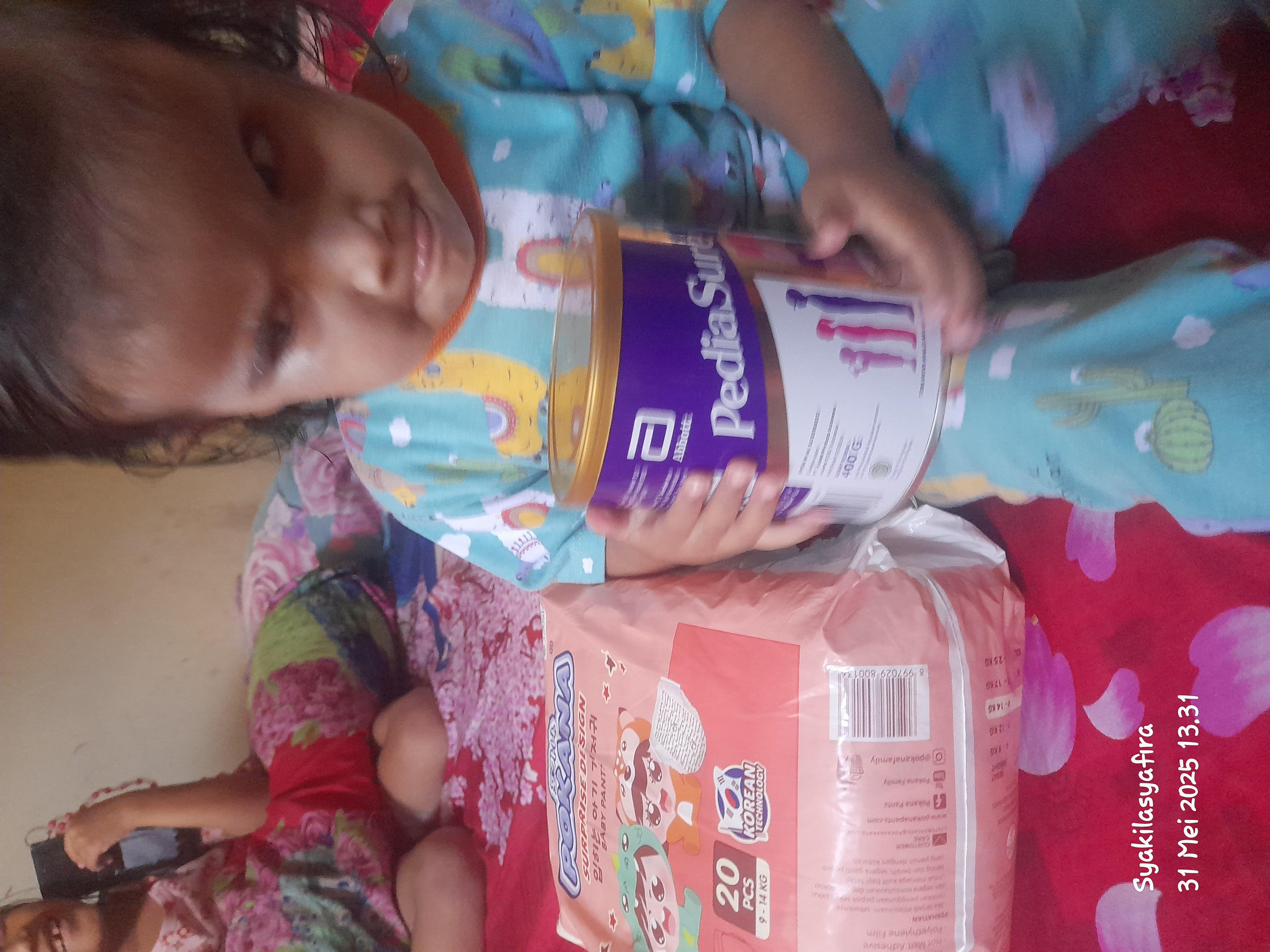Sebagian dana donasi telah kami gunakan untuk membeli susu dan kebutuhan Syafira lainnya.
