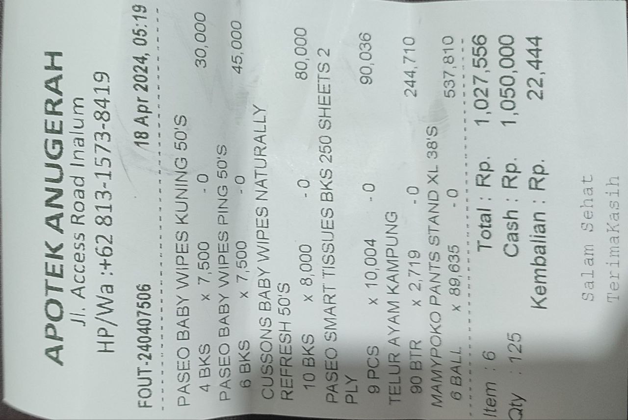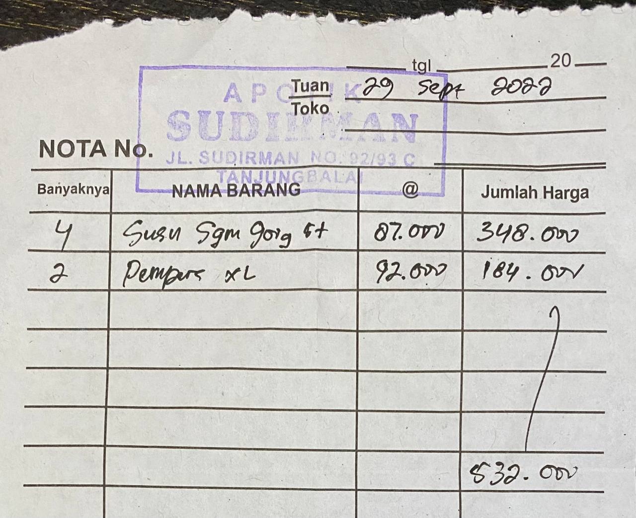 Dana dari TemanBaik digunakan untuk membeli diapers, susu, tissu basah dan juga biaya transportasi