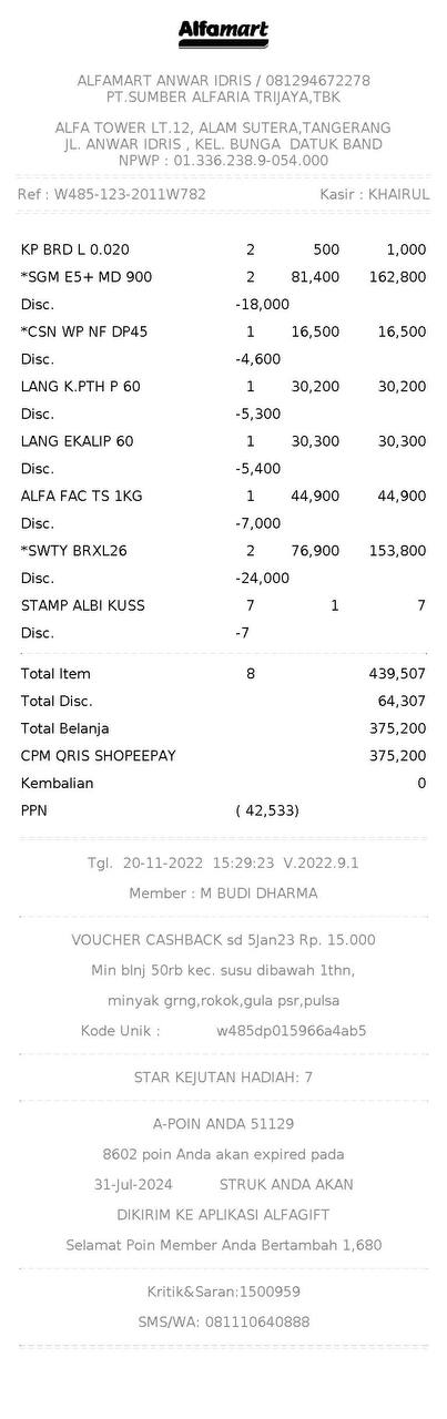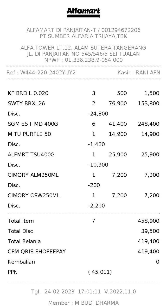 5. Tisu Paseo kering dan basah 33.000 x 8 pcs= Rp264.000