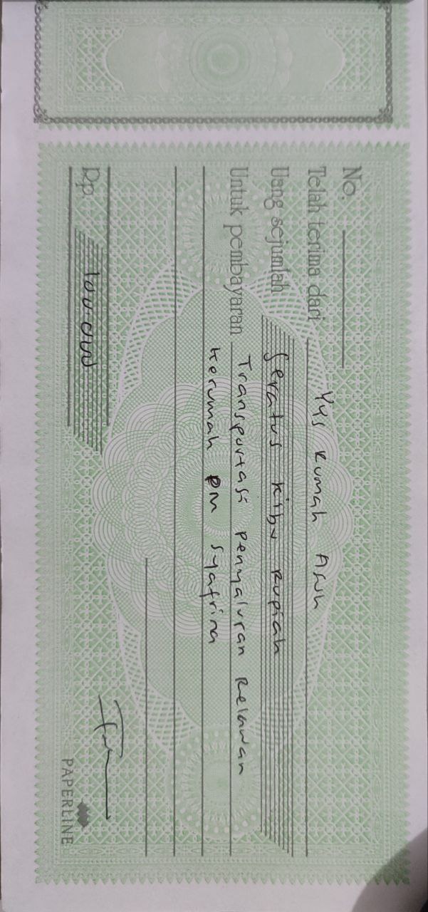 6. Biaya transportasi penyaluran relawan ke rumah penerima manfaat Rp100.000