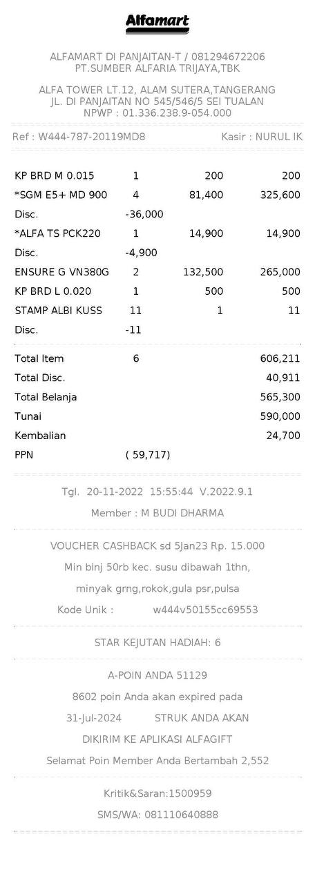 Dana digunakan untuk 1. Susu SGM 5+ Rp90.000 x 12pcs = Rp1.080.000 2. Terapi herbal Rp300.000 x 6terapi =Rp1.800.000 3. Pampers Mamypoko XL Rp85.000 x 10bal = Rp850.000 4. Telur ayam kampung Rp3.000 x 90pcs = Rp270.000 5. Buah-buahan Rp150.000 6. Sewa mobil untuk berobat ke kota Rp600.000 7.Blackmores Rp220.000 x 2 = Rp440.0002024-07-30 10:01:49