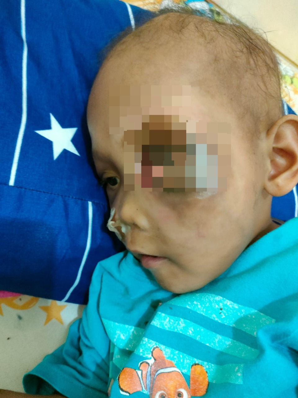 Beberapa bulan kemudian benjolan di mata sebelah kiri semakin membesar sehingga keluarga membawa pasien untuk berobat ke salah satu RS yang ada di daerah Pakam dan dirawat selama 1 malam, keesokan paginya dirujuk ke RS pemerintah dengan alasan dokter dan peralatan di RS tersebut tidak lengkap.