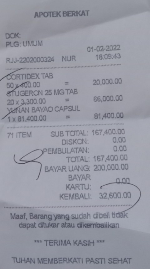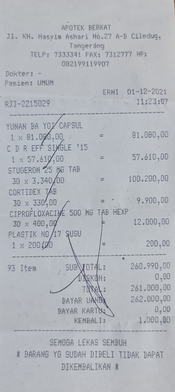 Terima kasih dukungannya atas hasil donasi kemarin untuk bayar tagihan BPJS Kesehatan bulan November 2021 dan membeli obatat-obatan yang rutin harus tersedia.