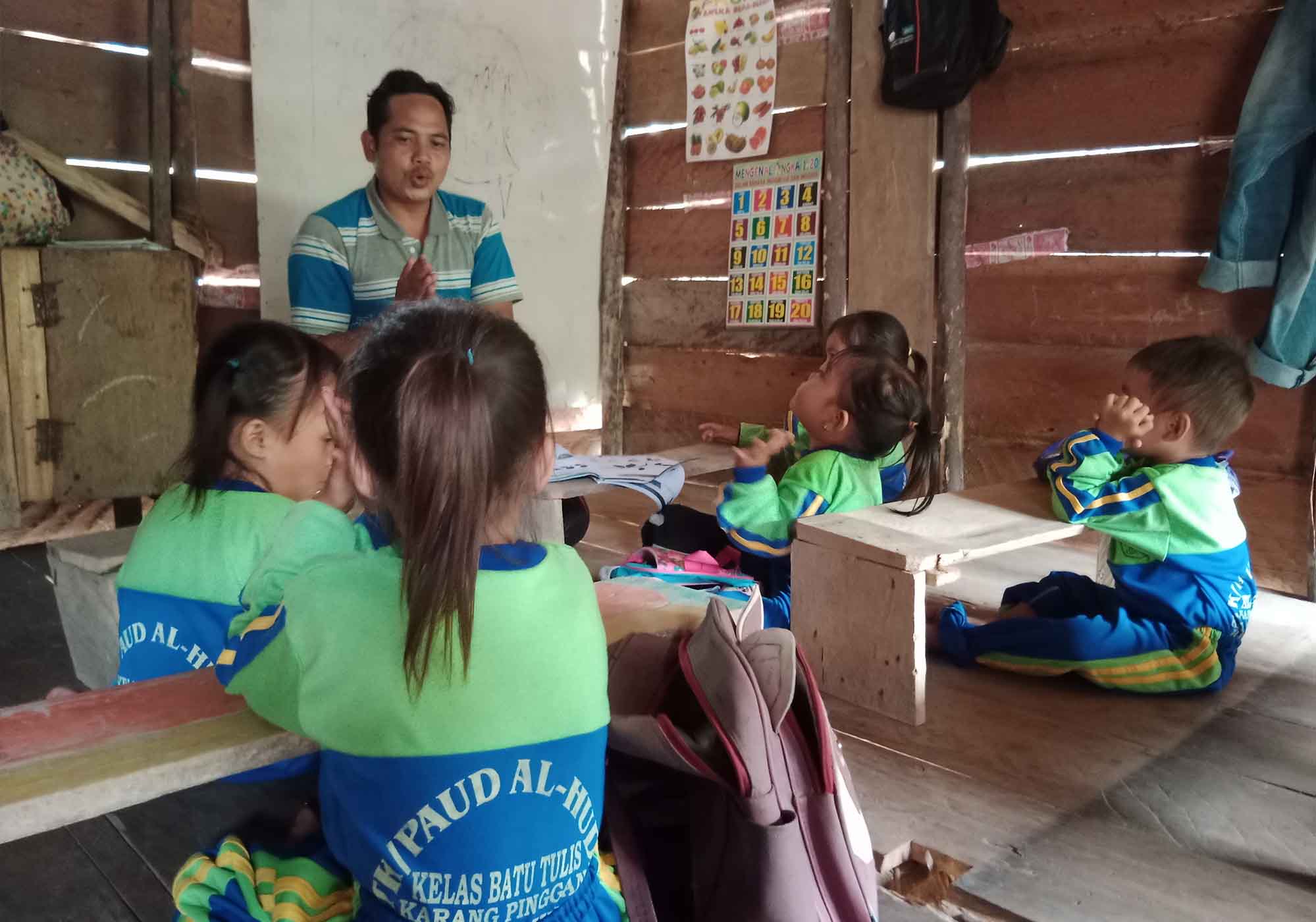 Semangat itu pun sampai pada anak-anak yang diajar. Tidak peduli, sekolahnya bocor dan atapnya bolong-bolong, buktinya anak-anak tetap tidak berhenti masuk sekolah. Mereka tetap semangat untuk belajar sambil bermain, tidak berbeda dengan anak-anak TK di tempat (daerah) lain.