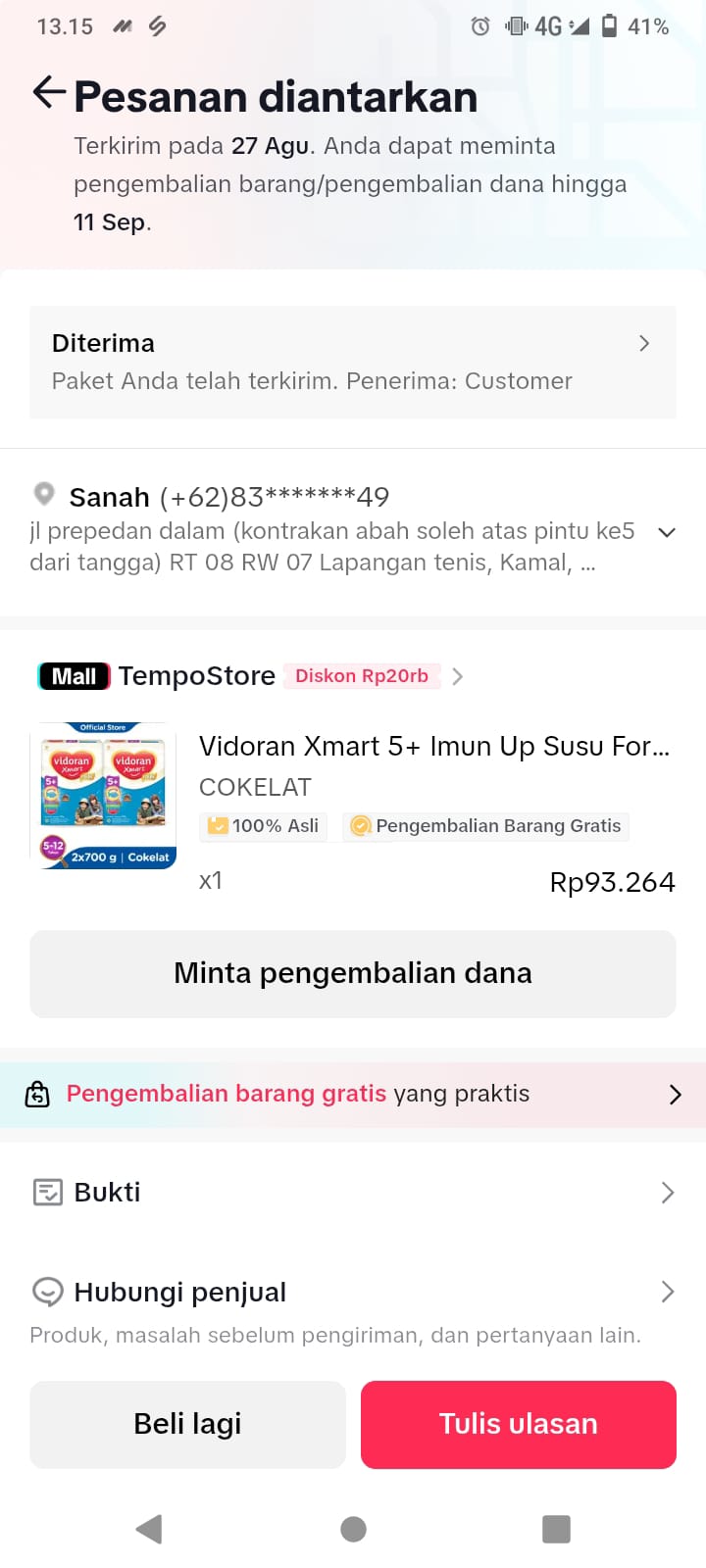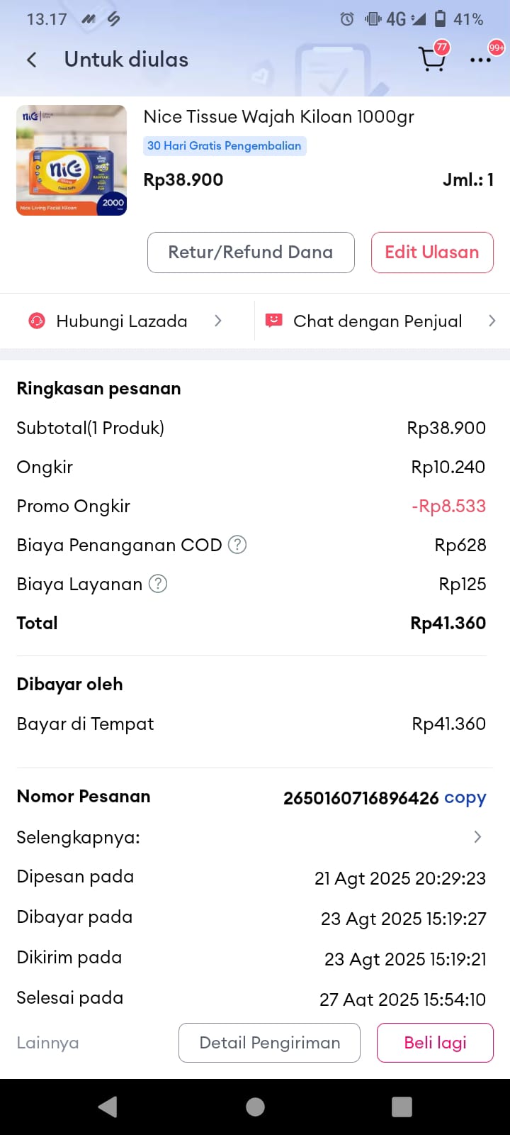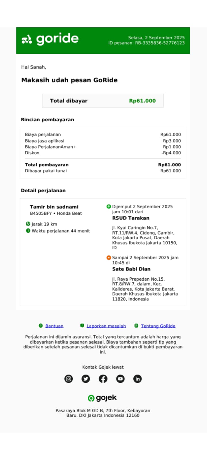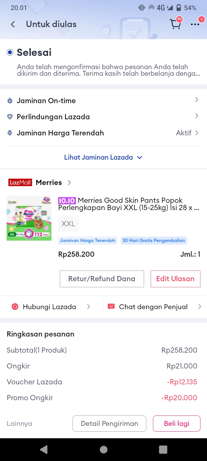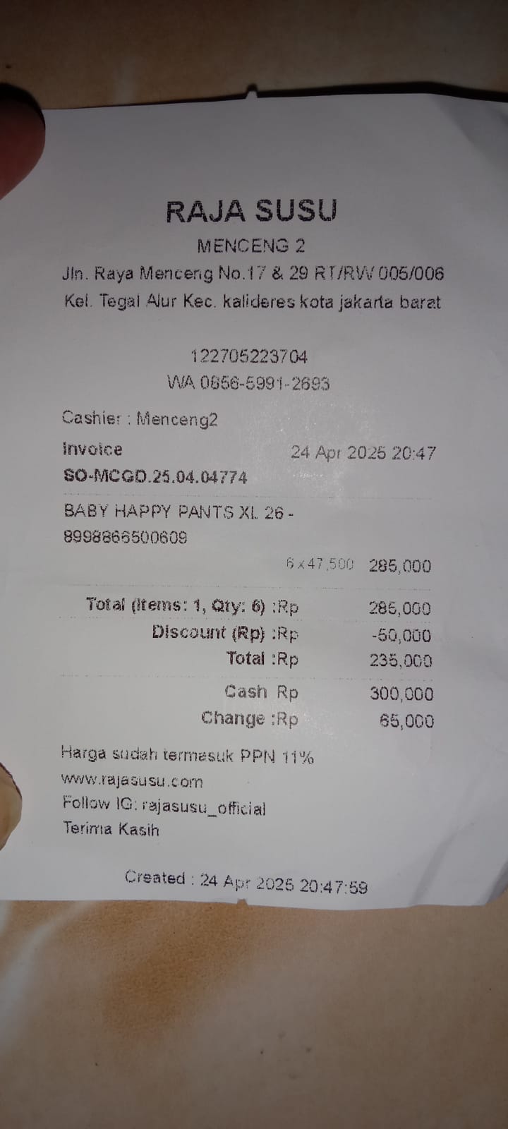 Dana digunakan untuk Pampers baby happy xxl Rp50.000 x4 bal = Rp200.0002025-10-10 10:50:51