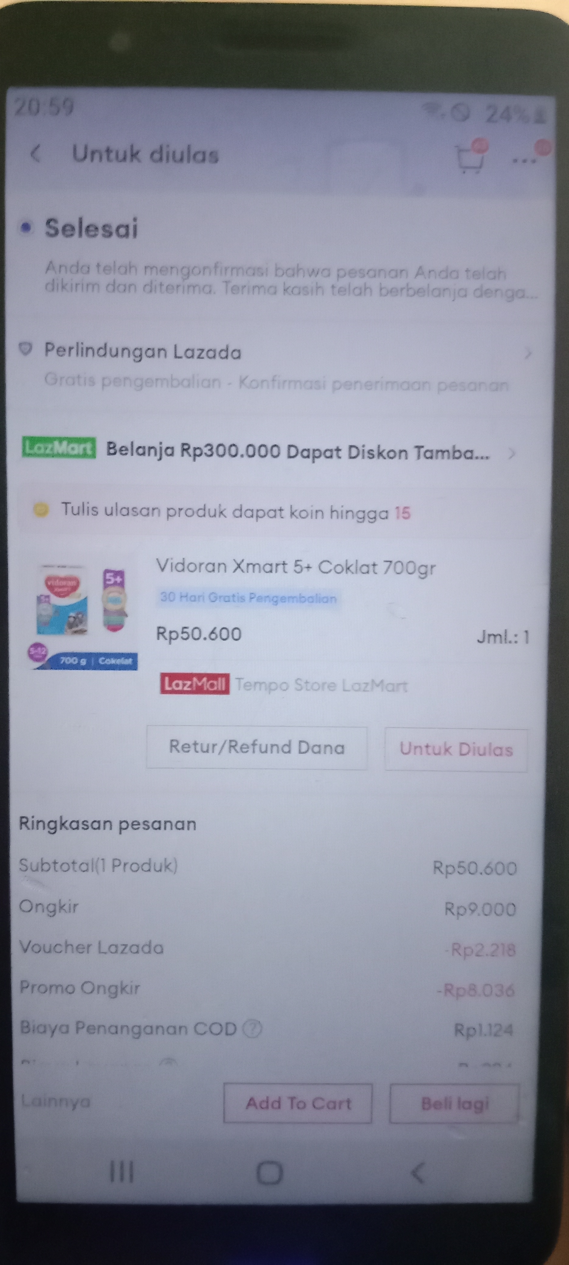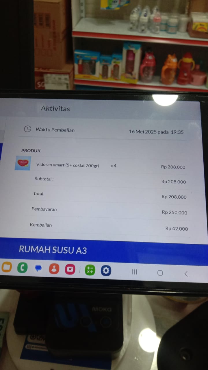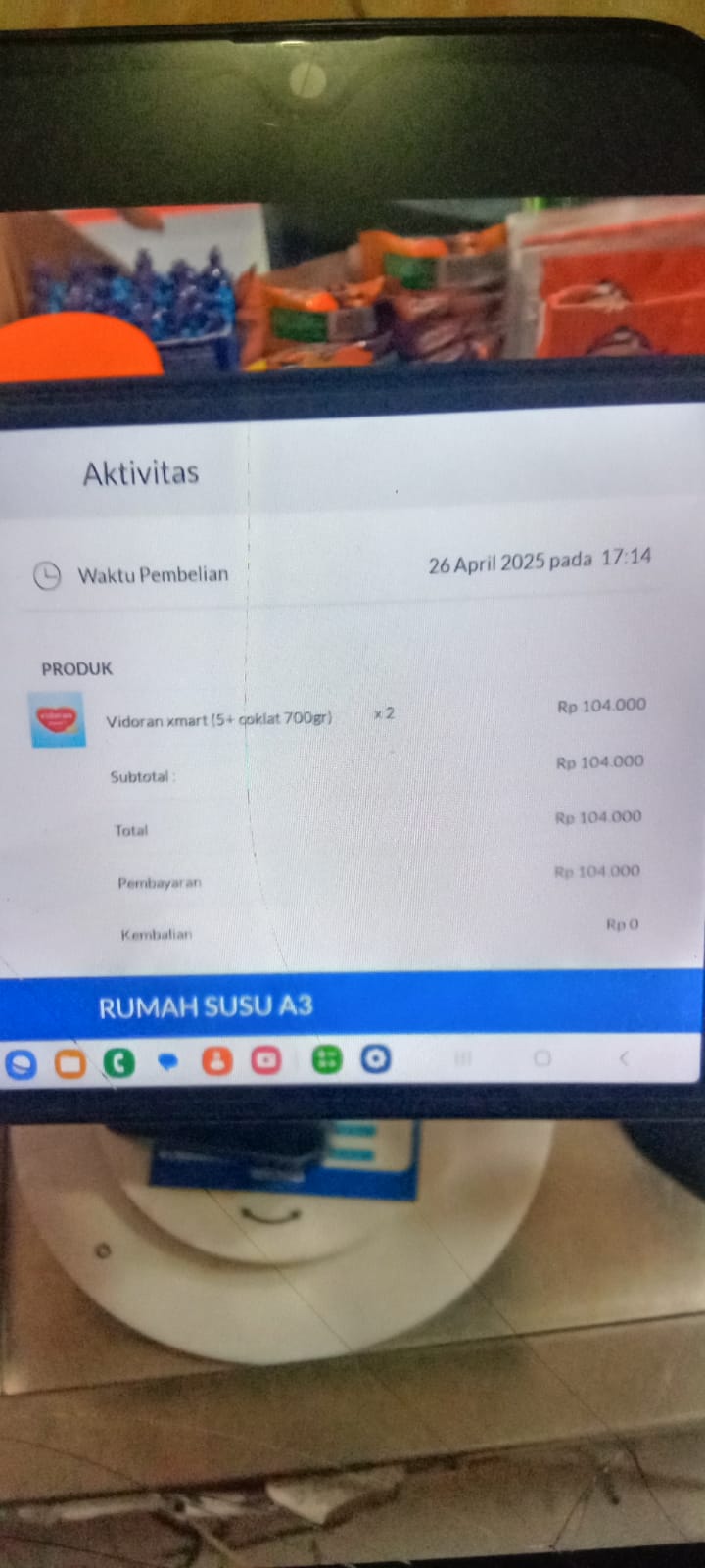 Dana digunakan untuk 1. Susu vidoran Rp50.000 x 2dus = Rp100.000 2. Pampers XL Rp100.000 3. Vitamin scoot Rp72.000 4. Tissue basah Rp14.000 5.Tissue kering 1kg Rp39.0002025-03-05 09:18:02
