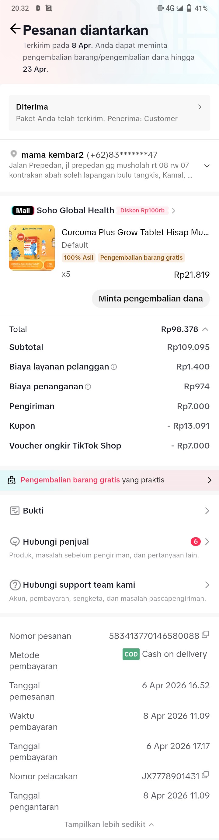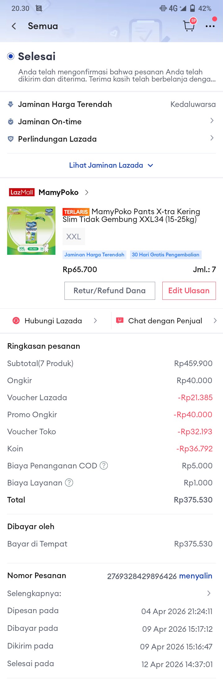 Dana digunakan untuk 1. Pampers XXL Rp68.000 x 6 ball = Rp408.000 2. Vitamin curcuma plus tablet Rp23.000x4 pcs = Rp92.0002026-04-07 11:22:24