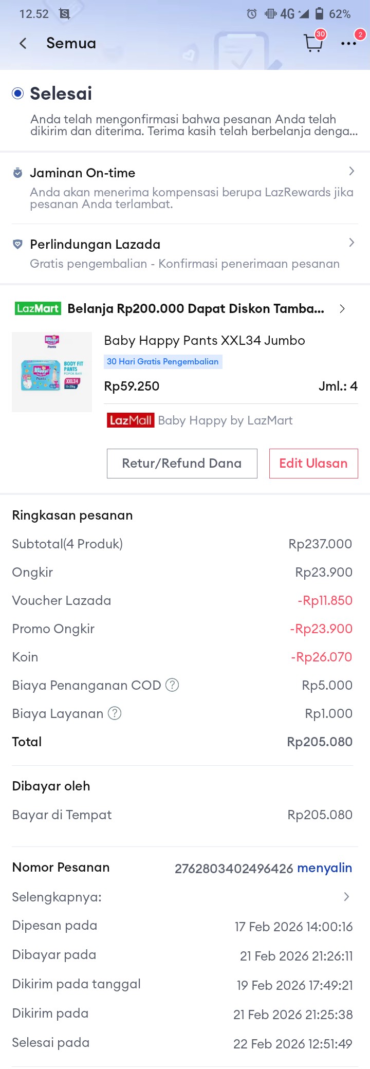 Dana digunakan untuk pampers xxl 34 Rp60.000x3 ball= Rp180.0002026-02-03 14:12:44