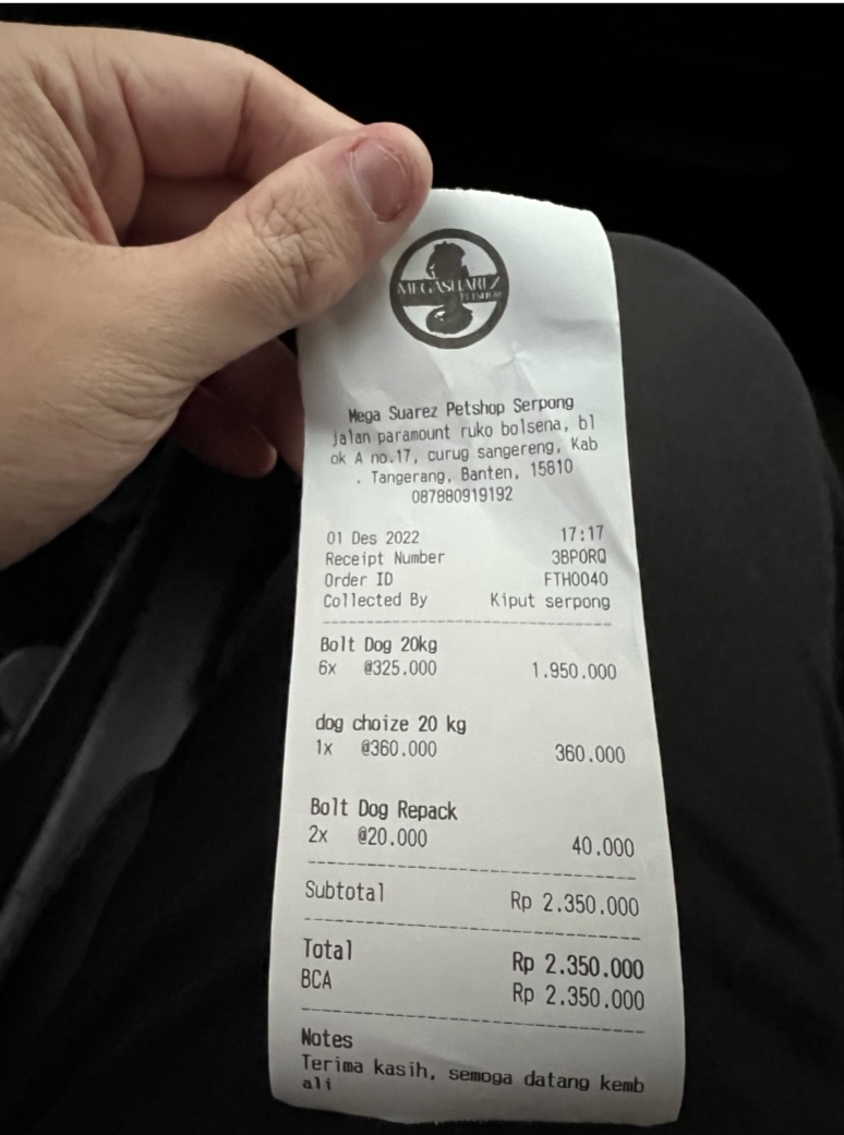 Dana donasi dari TemanBaik tersebut kami gunakan untuk membeli makanan anjing, karena makanan menjadi hal penting yang harus anabul dapatkan setiap harinya untuk menghindari berbagai risiko penyakit yang ada.