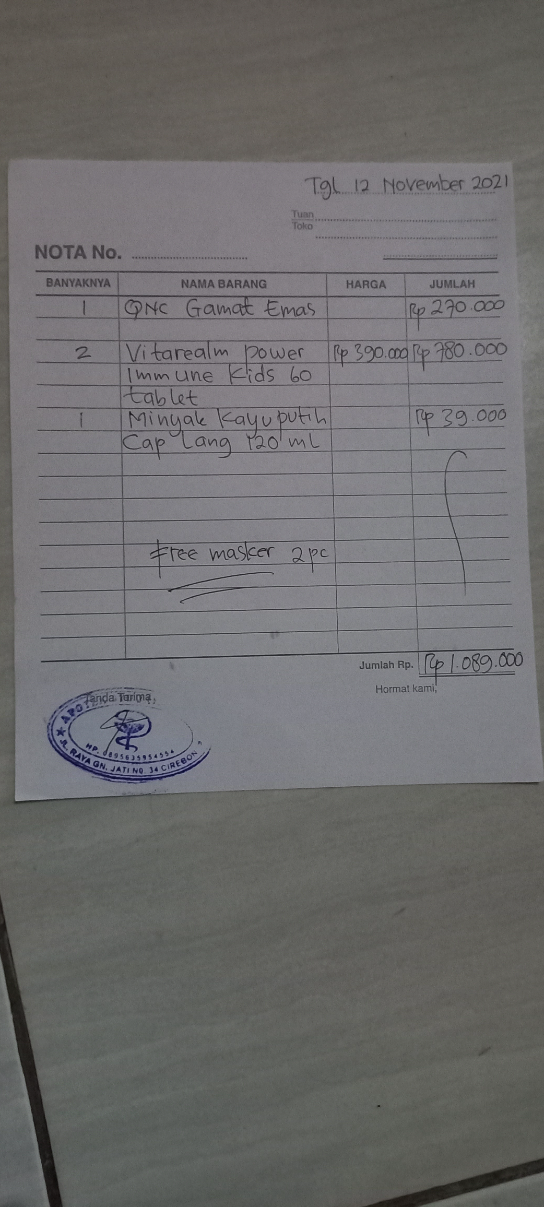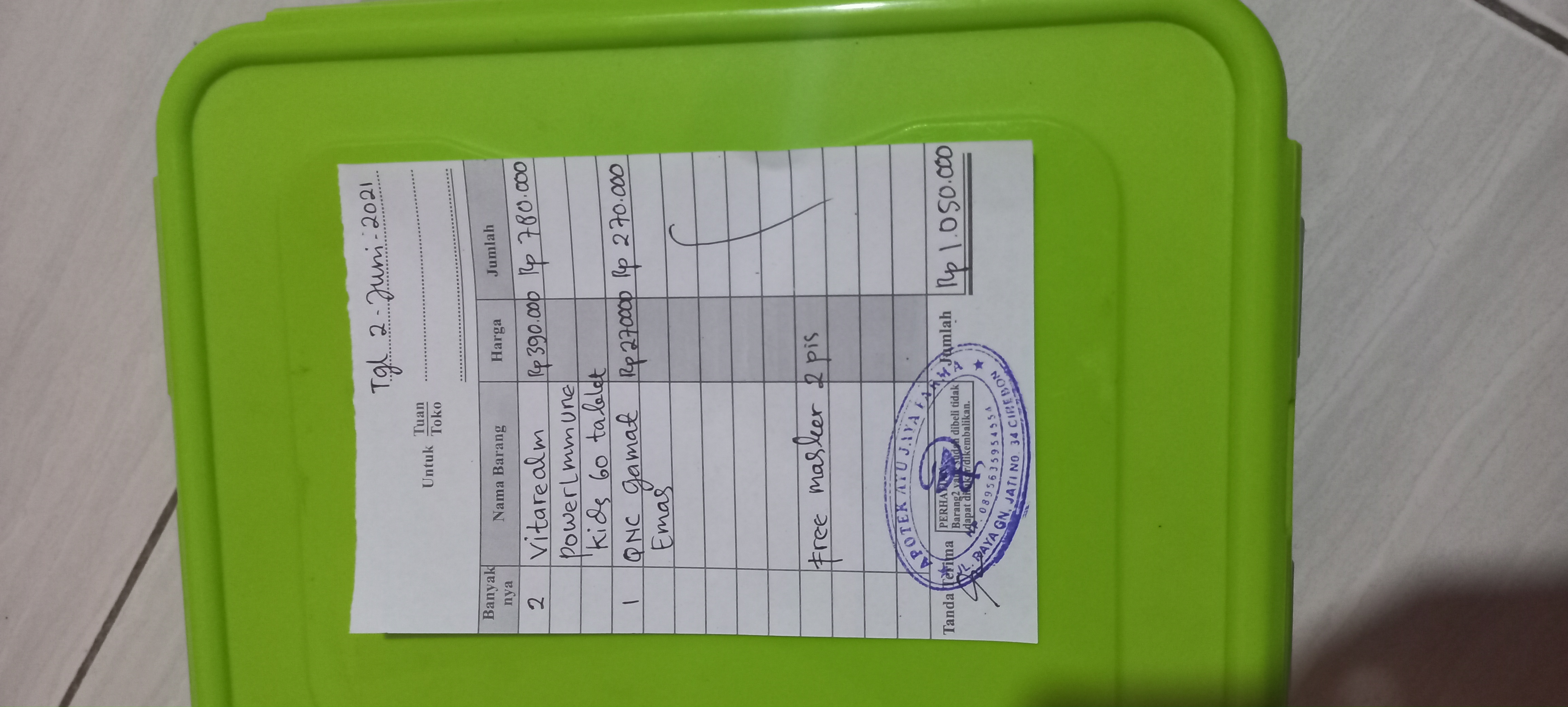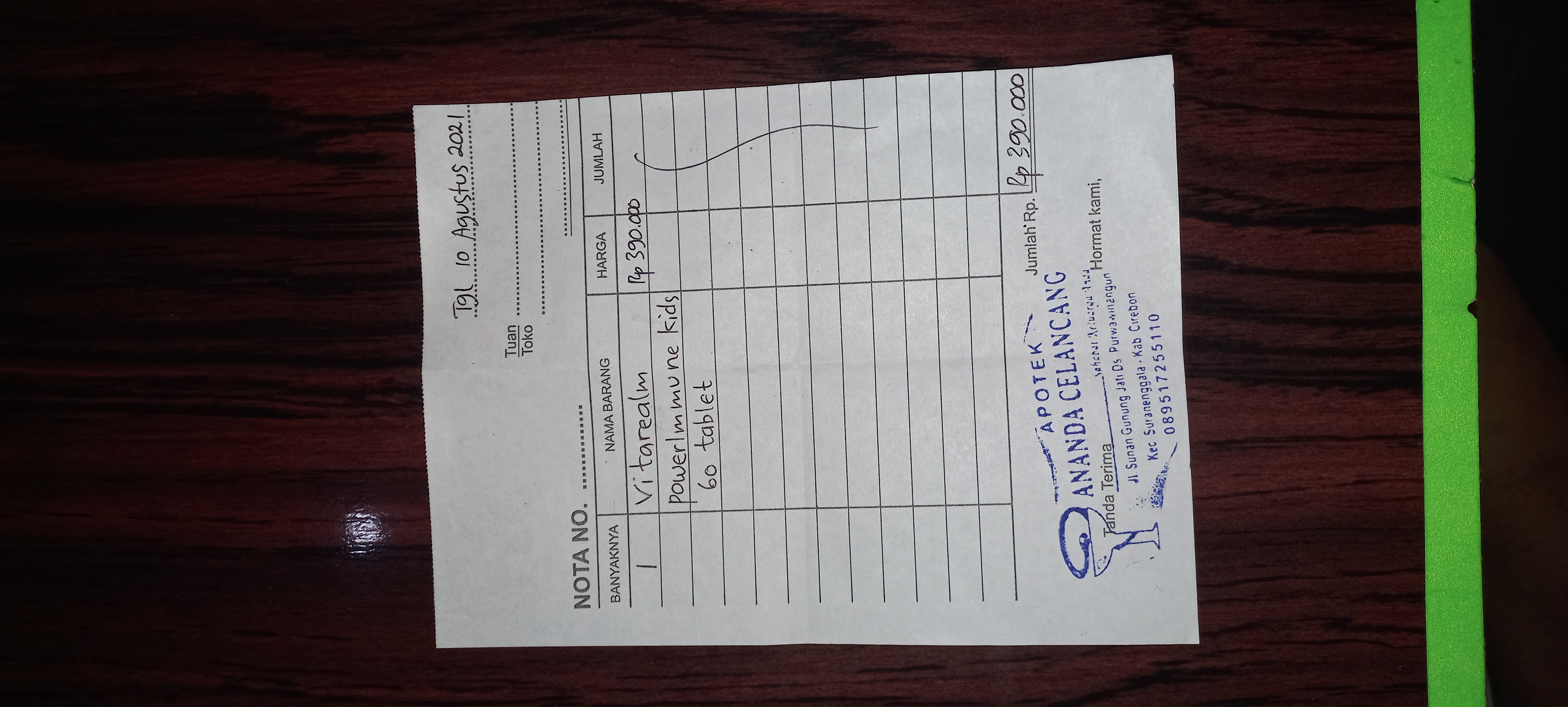 Berikut lampiran nota pembelian multivitamin lanjutan untuk yosa