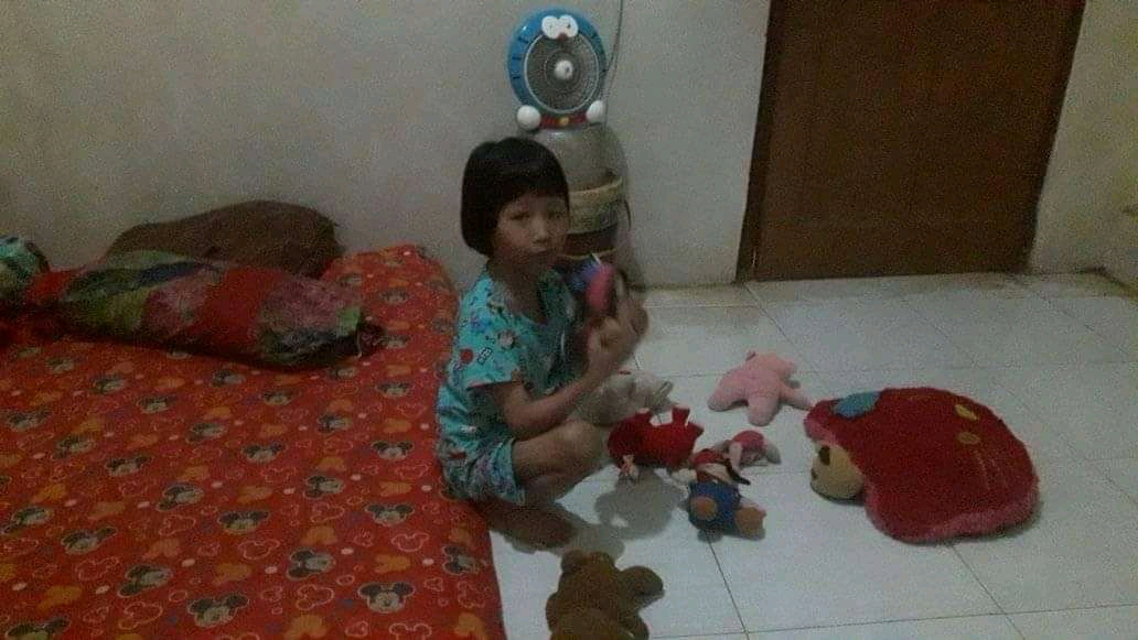 {Yosa sedang main/aktifitas di kamar,dikarenakan klw main di luar kondisi suhu badan suka mendadak drop/panas }
