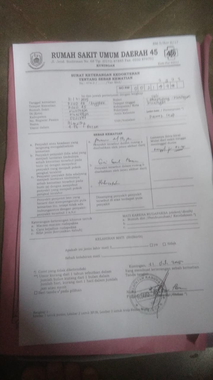 Saya ibunda dari Almaira Zahra. Awalnya kondisi Zahra masih sehat, namun beberapa bulan kemudian kesehatannya menurun hingga kritis dan harus dibawa ke Rumah Sakit Kuningan.