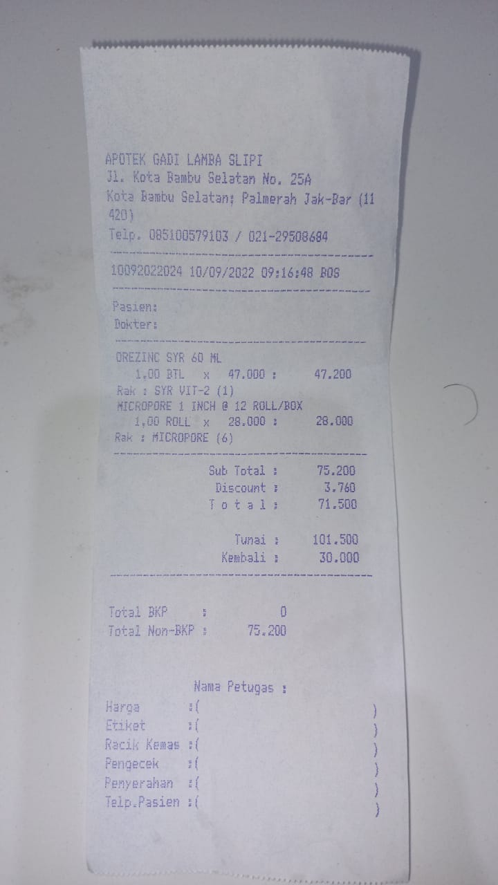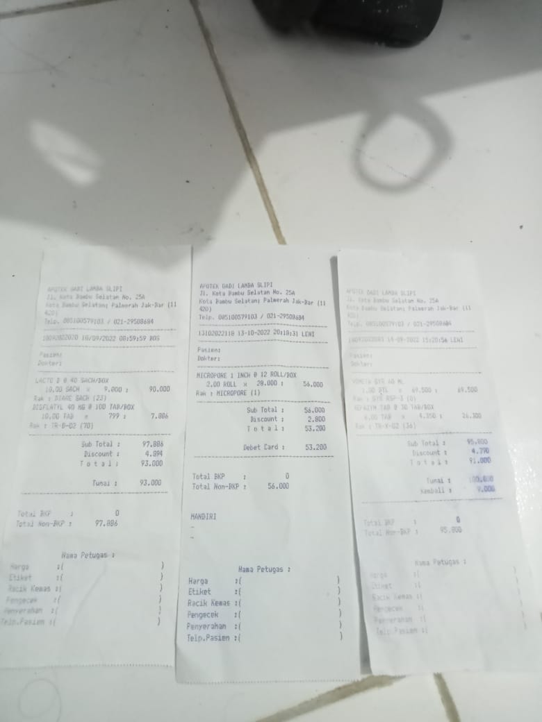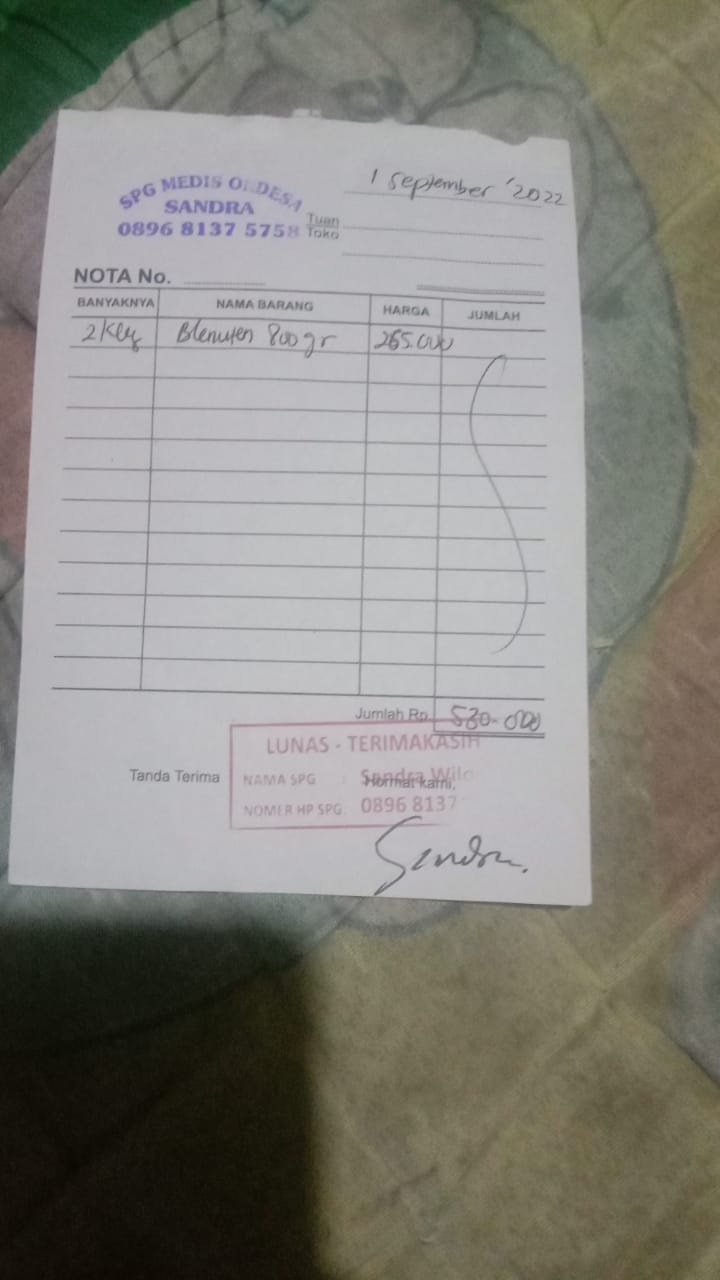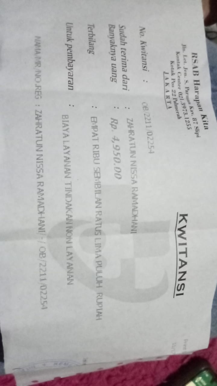 Dana digunakan untuk: 1. Susu Blenuten 800 gram @265.000x2 kaleng= 530.000 2. Untuk nebus obat 150.000 (belum ada resep, namun sudah ada tagihan dari apotek). 3. Untuk cek ke Poli psikolog 450.000 (tidak dicover bpjs) untuk konsultasi karena dalam belajar zahra agak kurang konsentrasi 4. Ongkos Bajaj dari Penjaringan ke RSAB Harapan Kita Slipi 35.000 bolak balik 70.000 x 4hari=280.000 Total 1.410.0002022-09-13 17:32:22