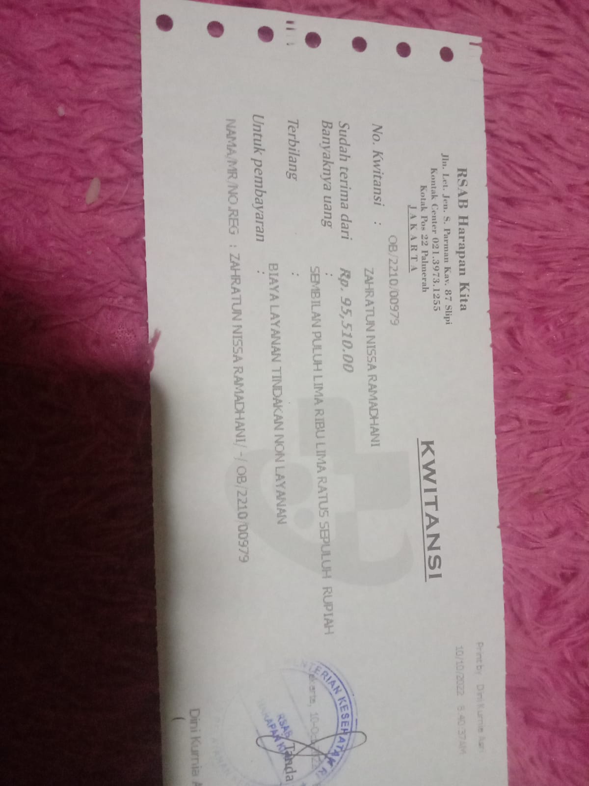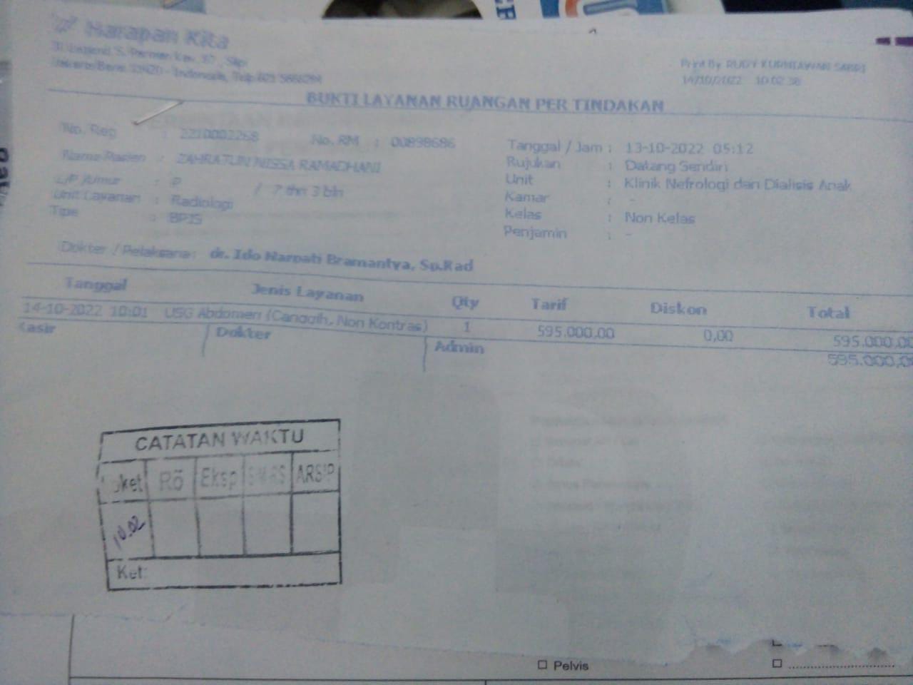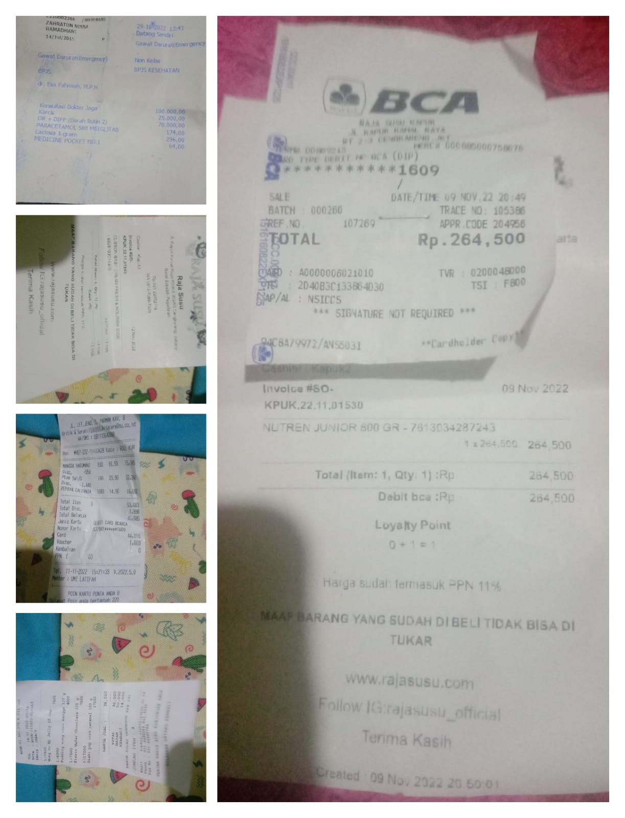 Dana digunakan untuk: 1. Susu Blenuten 800 gram @265.000x2 kaleng= 530.000 2. Untuk nebus obat 150.000 (belum ada resep, namun sudah ada tagihan dari apotek). 3. Untuk cek ke Poli psikolog 450.000 (tidak dicover bpjs) untuk konsultasi karena dalam belajar zahra agak kurang konsentrasi 4. Ongkos Bajaj dari Penjaringan ke RSAB Harapan Kita Slipi 35.000 bolak balik 70.000 x 4hari=280.000 Total 1.410.0002022-09-13 17:32:22