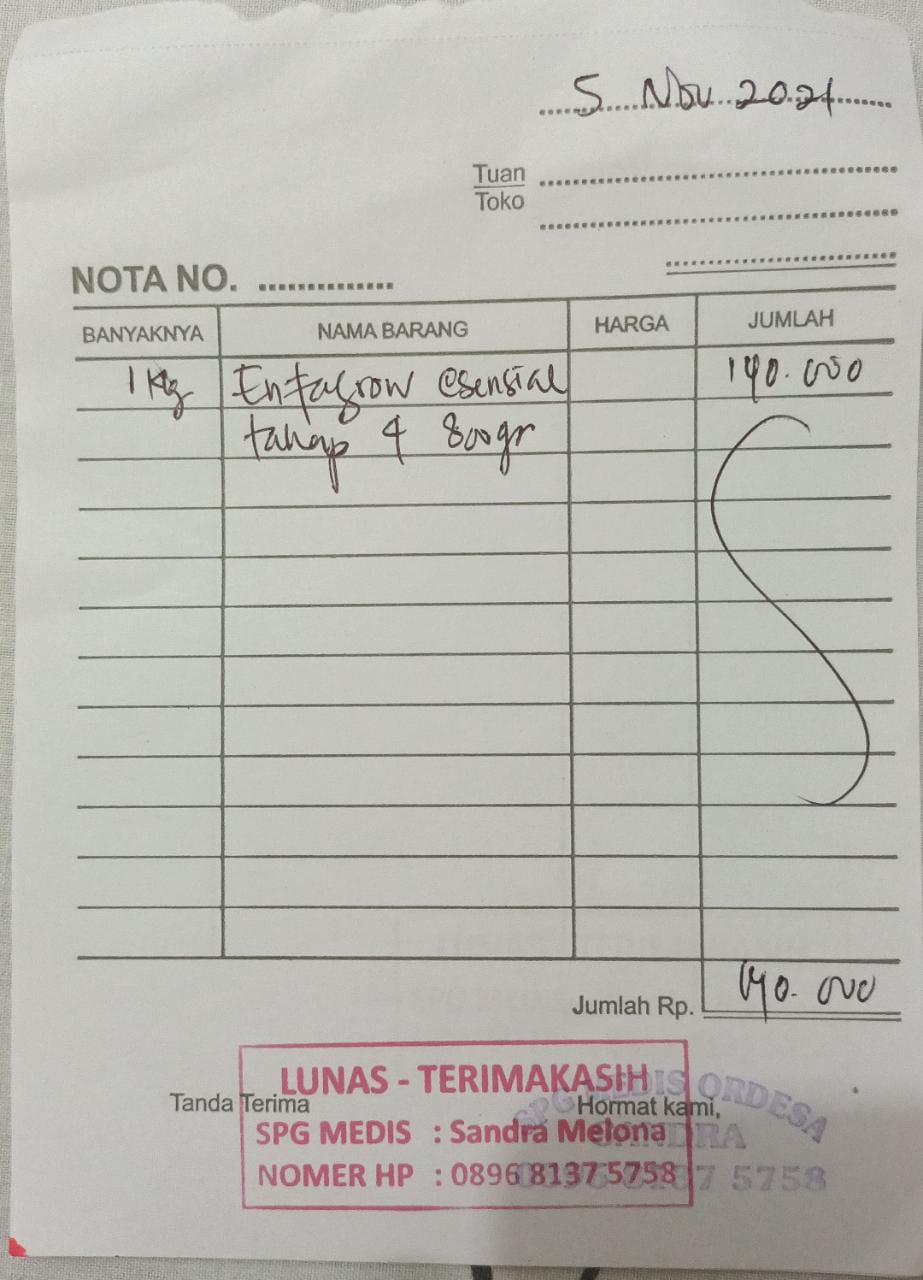 Dana digunakan untuk membeli Susu Nutren Junior 250.000 x 3 kaleng= Rp750.000.2023-01-05 15:56:08