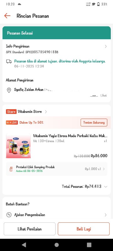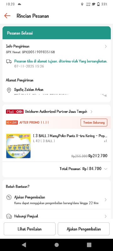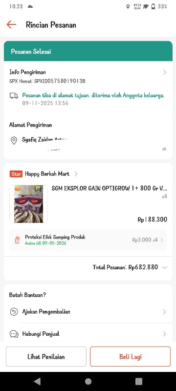 Dana digunakan untuk 1. Susu sgm gain optigrow 1+ Rp185.000 X 4dus = Rp740.000 2. Pampers mamypopok size L 1 karton Rp200.000 3. Vitabumin 130ml Rp55.000 X 2botol = Rp110.000 4. Minyak kayu putih 120ml Rp50.0002025-11-06 10:28:02