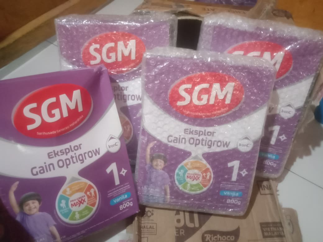 Dana digunakan untuk 1. Susu sgm gain optigrow 1+ Rp185.000 x3 = Rp.555.000 2. Pampers Fluffy size L Rp.41.500 X3 = Rp.124.500 3. Minyak telon caplang(100ml) Rp27.000 4. Transportasi kontrol PP Rp50.000 x 2 kali = Rp100.0002025-05-26 15:47:26