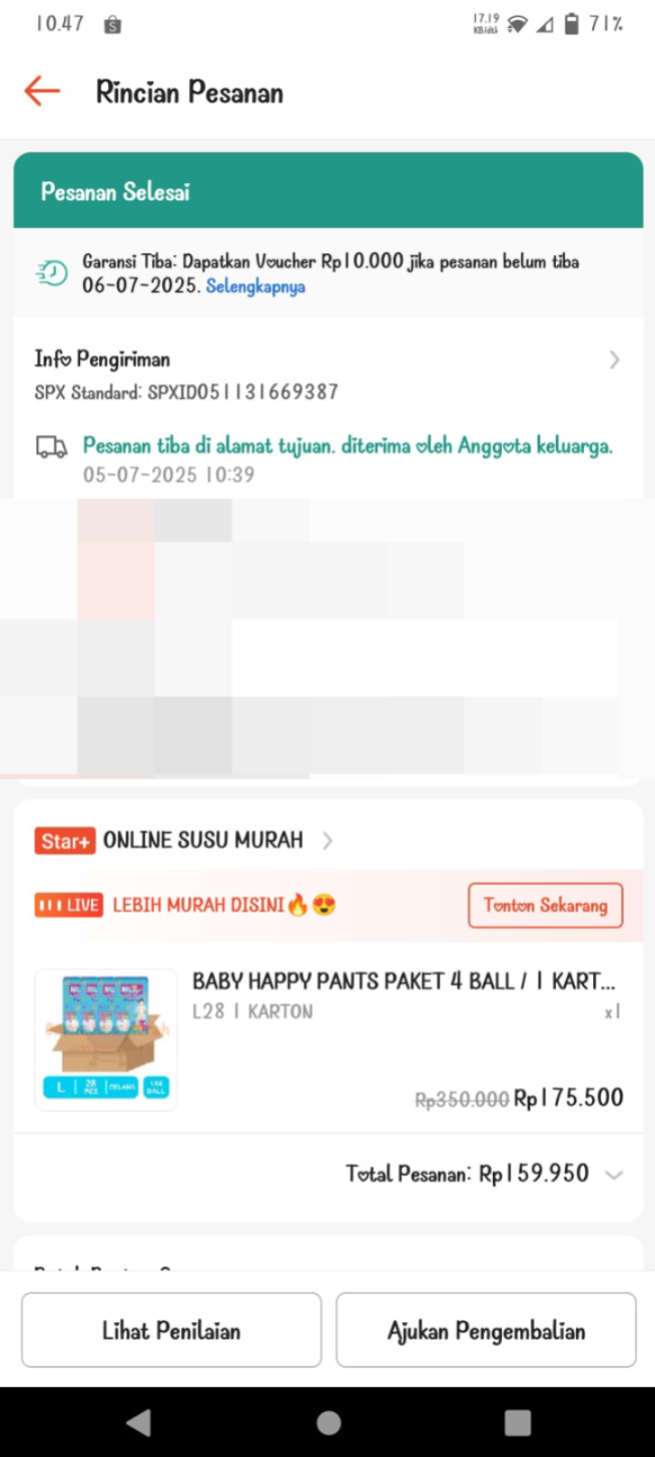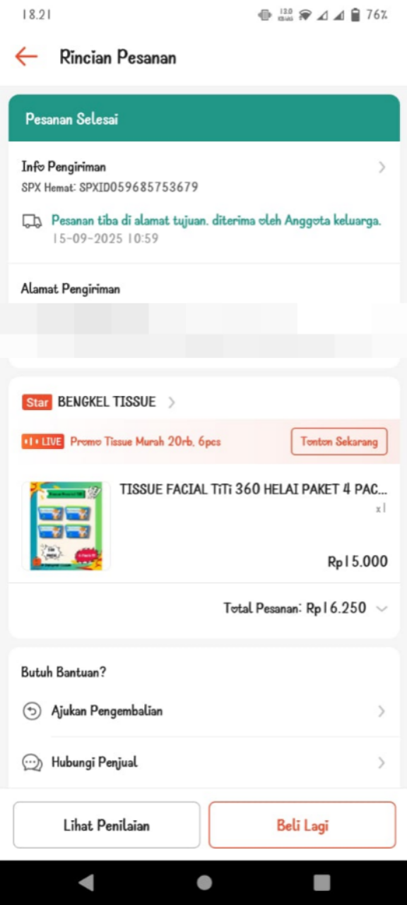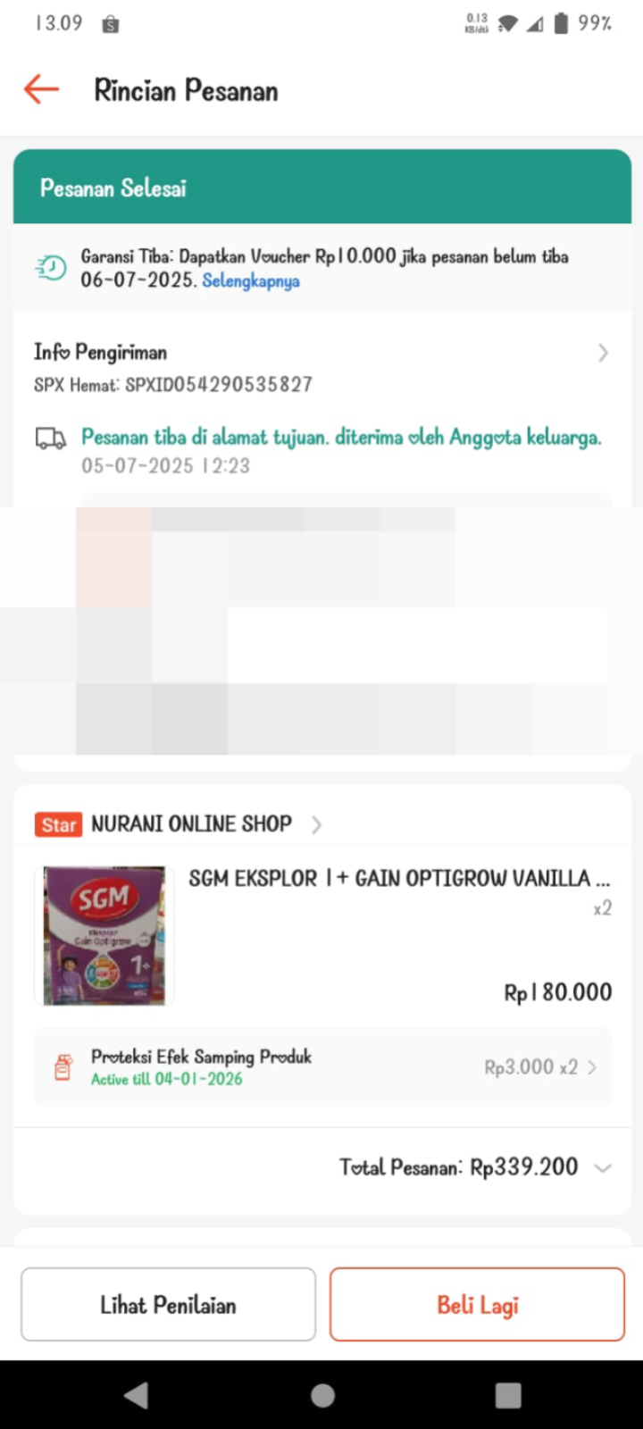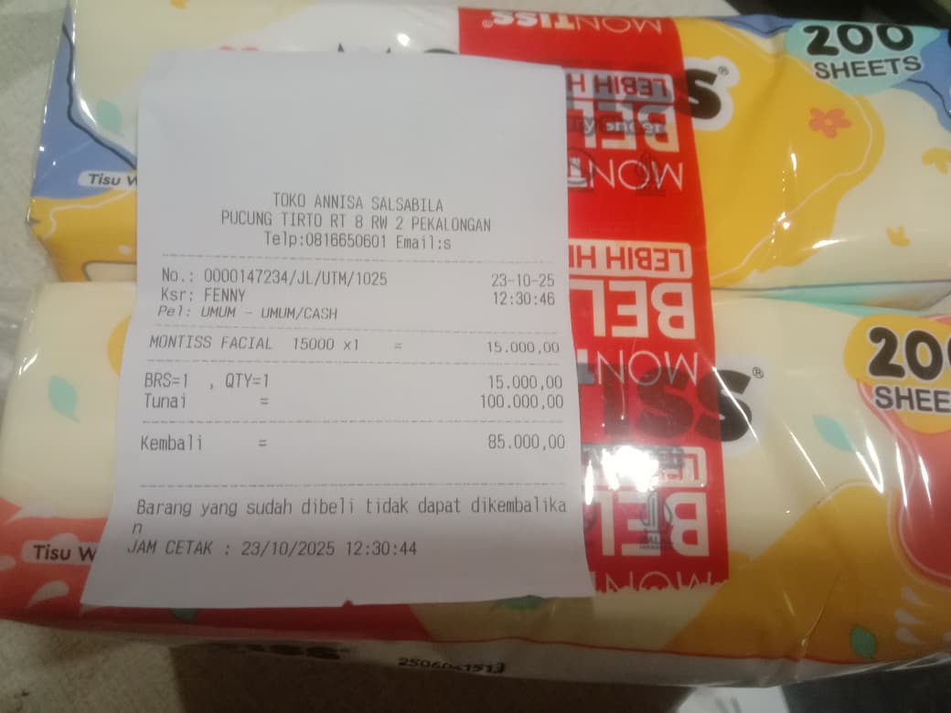 Dana digunakan untuk 1. Susu SGM gain Optigrow 1+ Rp185.000 X 4dus = Rp740.000 2. Pampers mapok jumbo L42 Rp75.000 X 2ball = Rp150.000 3. minyak kayu putih 60ml Rp25.000 X 2botol = Rp50.000 4. tisu basah Rp20.000 5. tisu kering Rp20.0002025-10-07 10:18:46