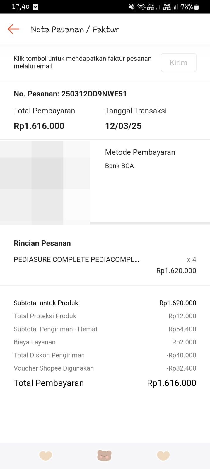 Dana digunakan untuk Susu pediasure completed 4 kaleng Rp1.620.0002025-03-13 08:46:32