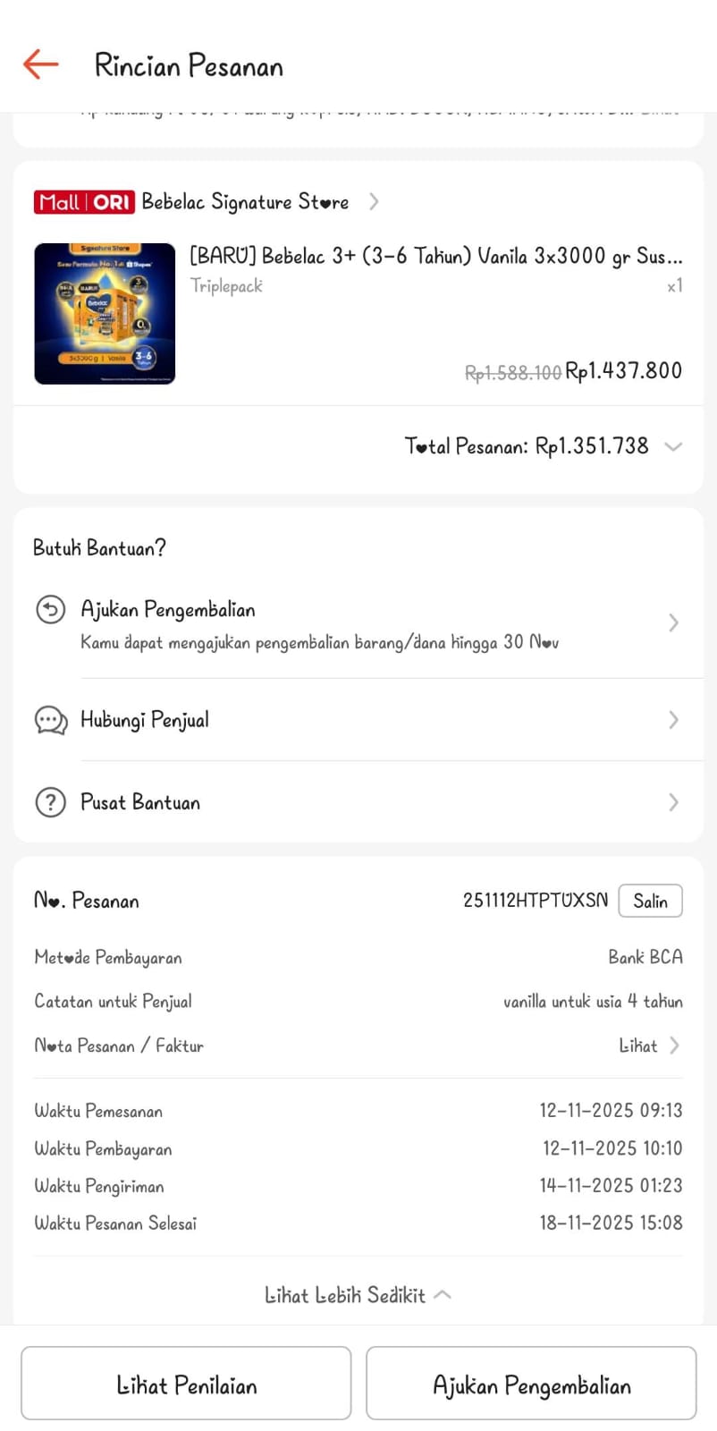 1.Susu bebelac vanilla Rp170.000 x 2pcs = Rp340.000