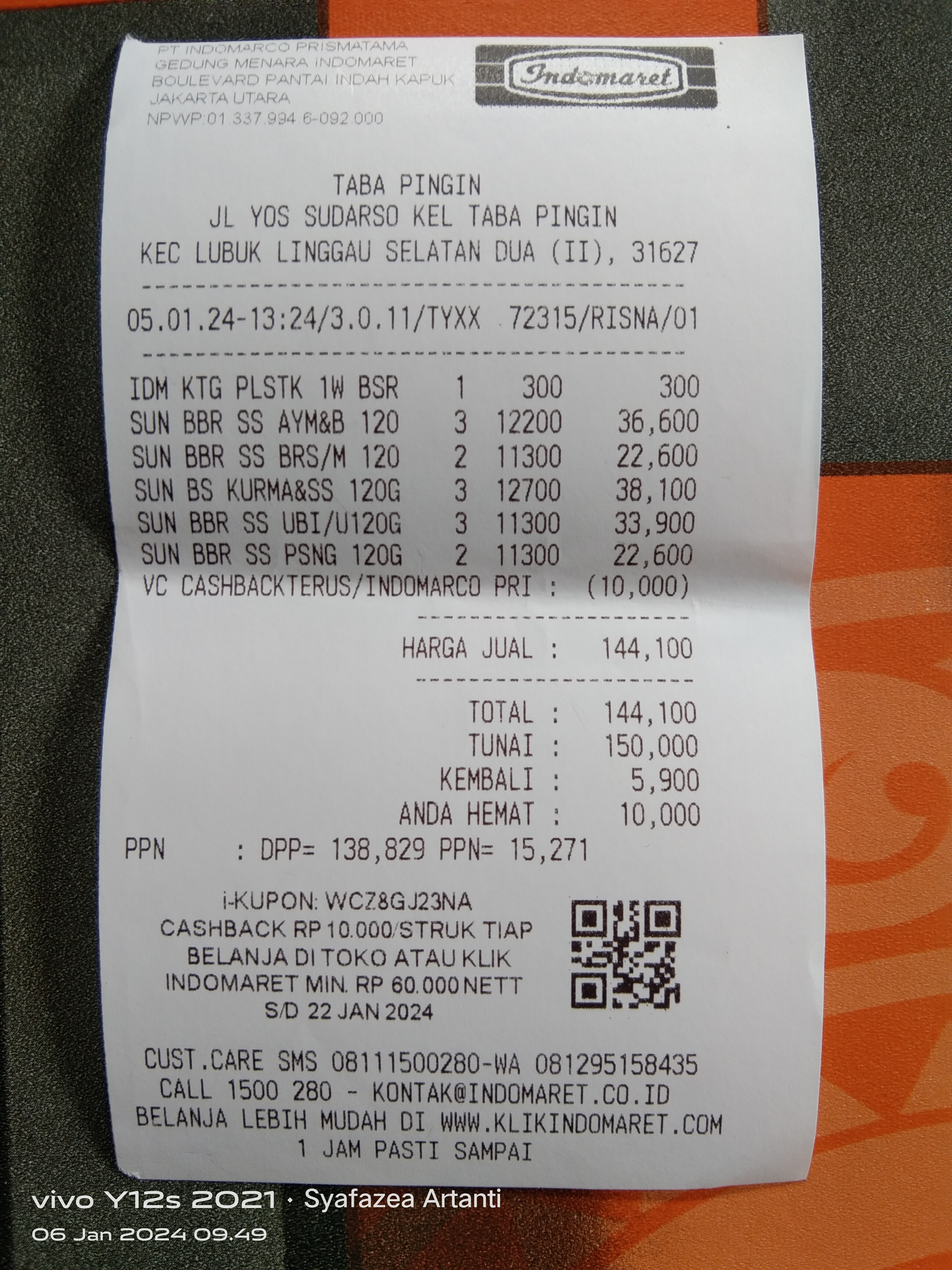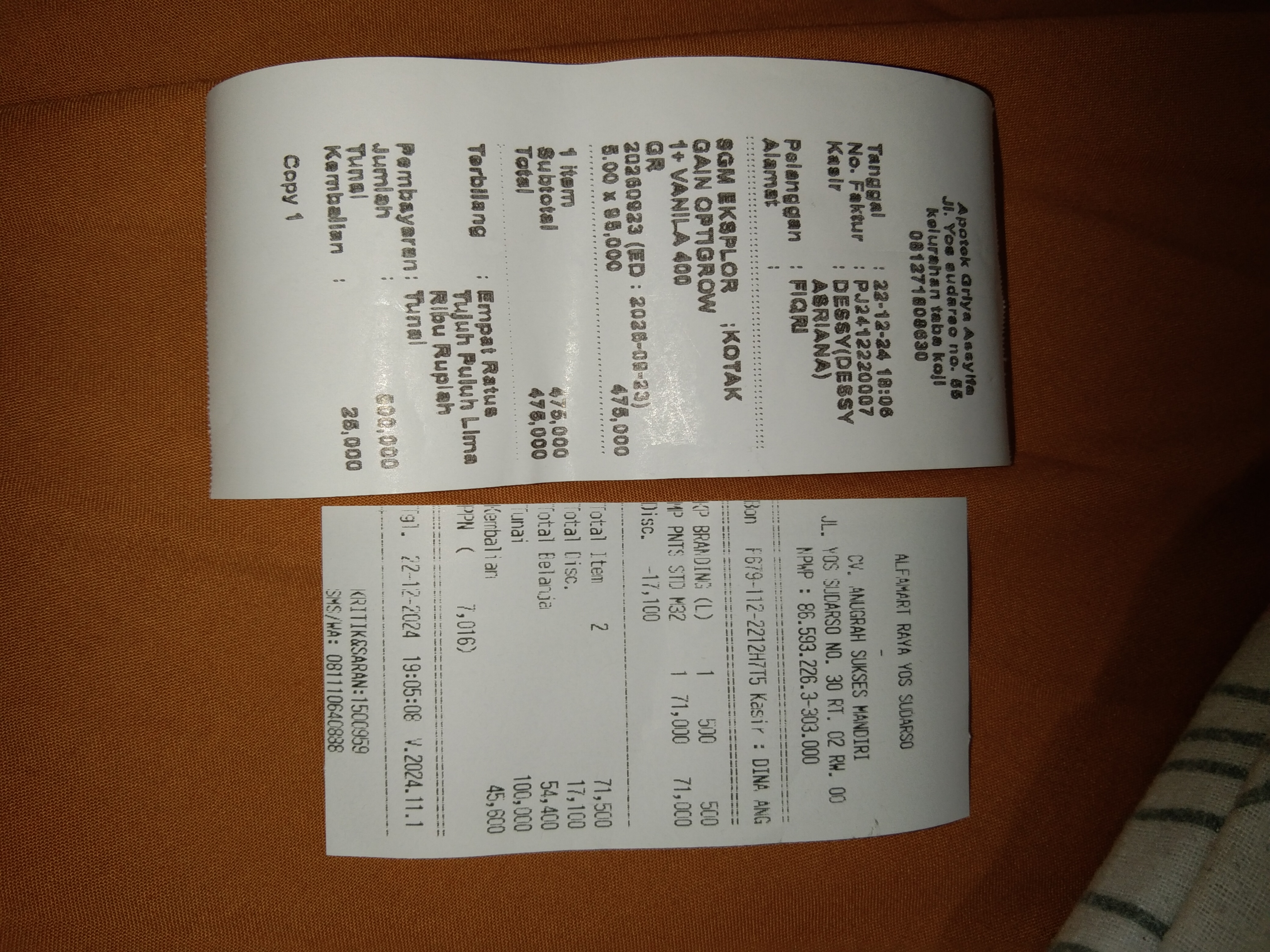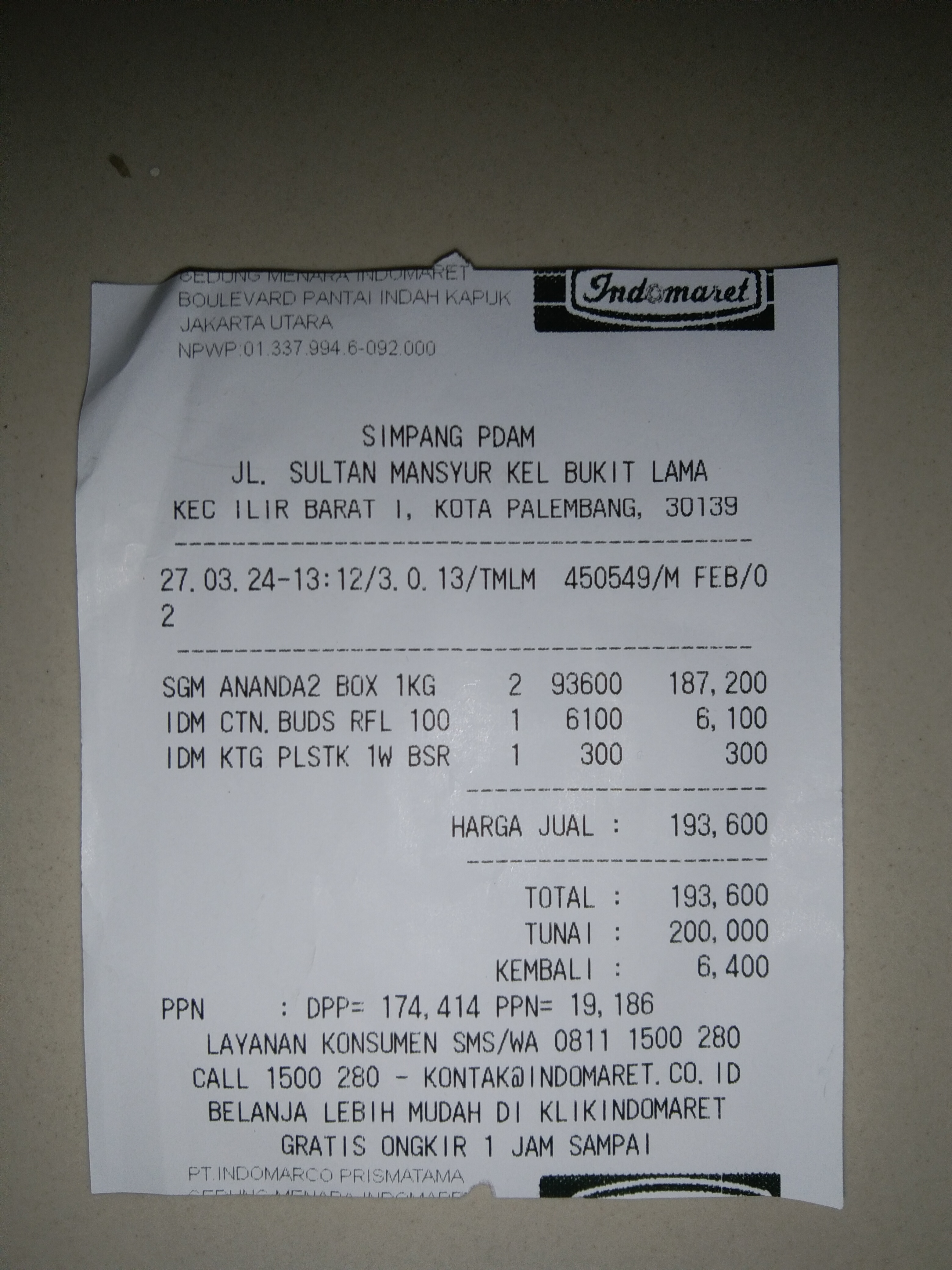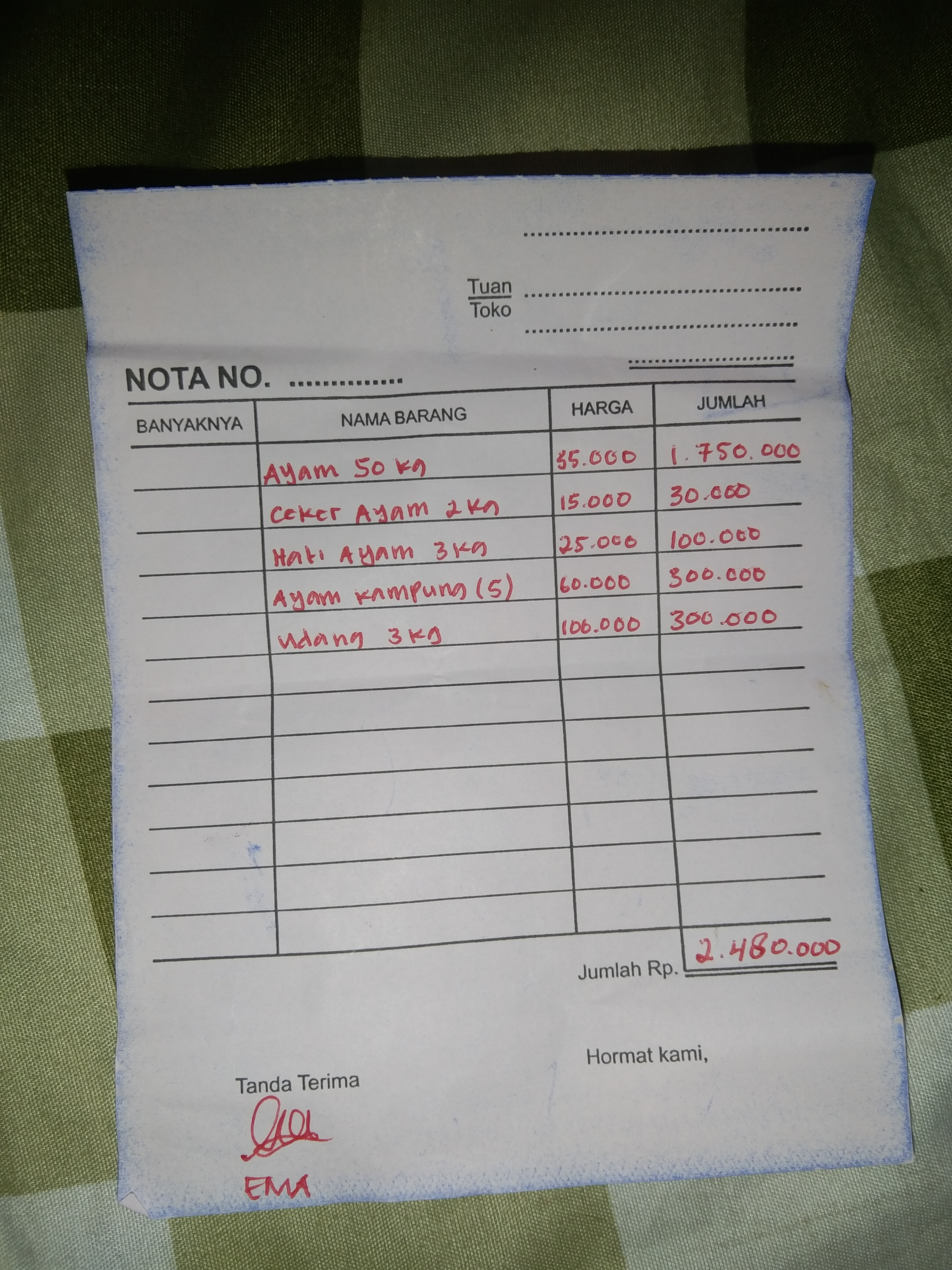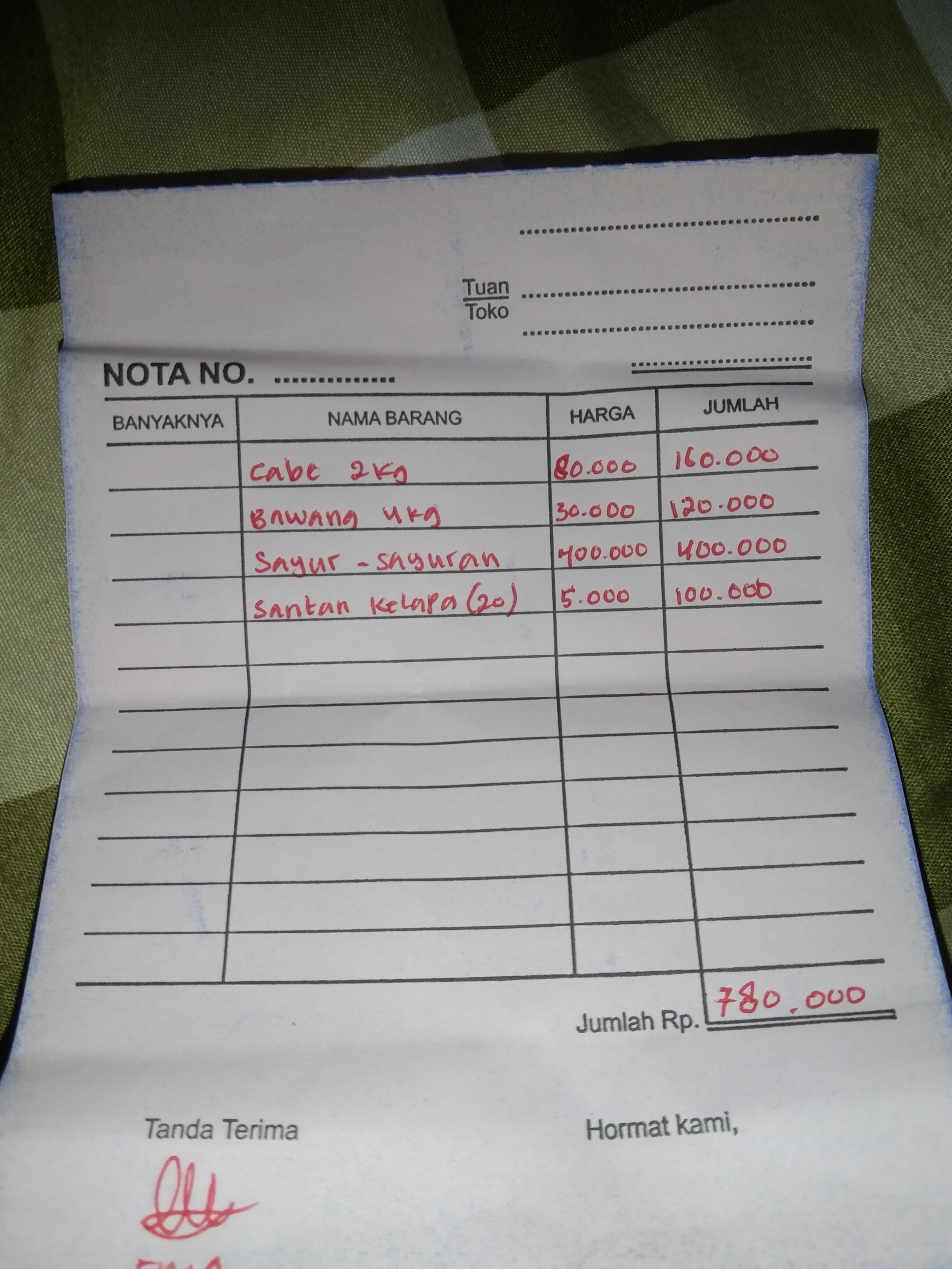 Dana digunakan untuk 1. Susu SGM Ananda Gain 100 400 gr 115.000 x 5 kotak= Rp557.000 2. Susu SGM Ananda 1000 gr 103.000 x 5 kotak= Rp515.000 3. Pampers Moko-moko ukuran M 54.000 x 5 ball= Rp270.000 4. Minyak telon plus 32.000 x 6= Rp188.000 5. Tisu basah kodomo 12.000 x 10= Rp120.000 6. Tisu kering nice 46.000 x 5= Rp230.000 7. Bubur Sun beras merah ukuran 120 gr 1 dus Rp175.000 8. Vitamin Prolacta bayi 70.000 x 2= Rp140.000 9. Sampo Zwitsal 21.000 x 5= Rp105.000 10. Bedak My baby2024-01-04 17:17:13