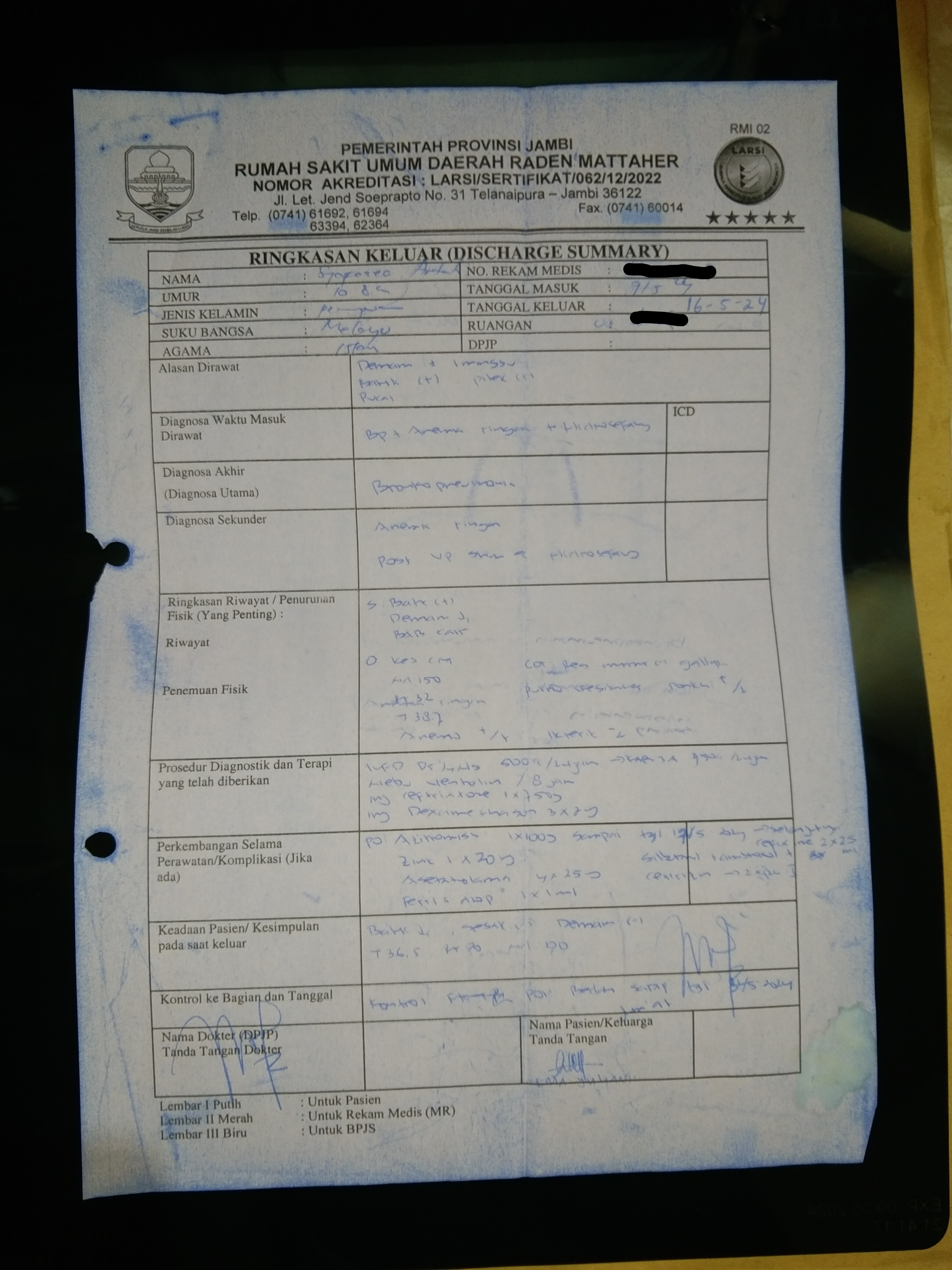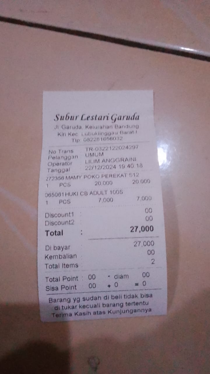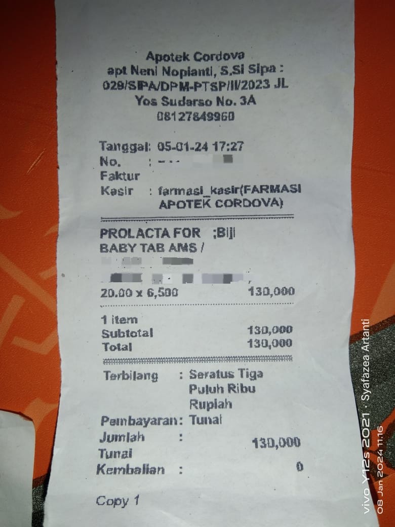 Dana digunakan untuk 1.Susu SGM Ananda isi 900 gram untuk 1-3 tahun Rp83.000 x 2 = Rp166.000 2.Pempes Mamypoko pants 32 Rp56.000 x 2 = Rp112.000 3.Ongkos transportasi ( dari Lubuklinggau ke Rumah sakit Raden Mattaher) Rp500.000 4.Uang kontrakan 1 bulan (dilubuk Linggau) Rp400.0002024-08-06 09:47:05