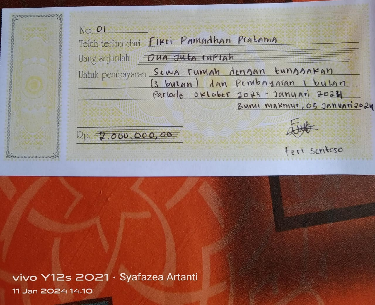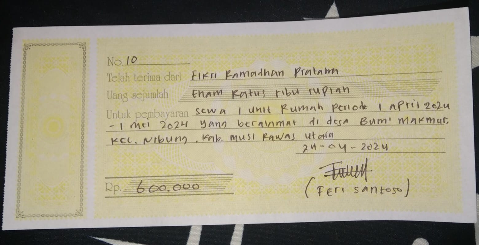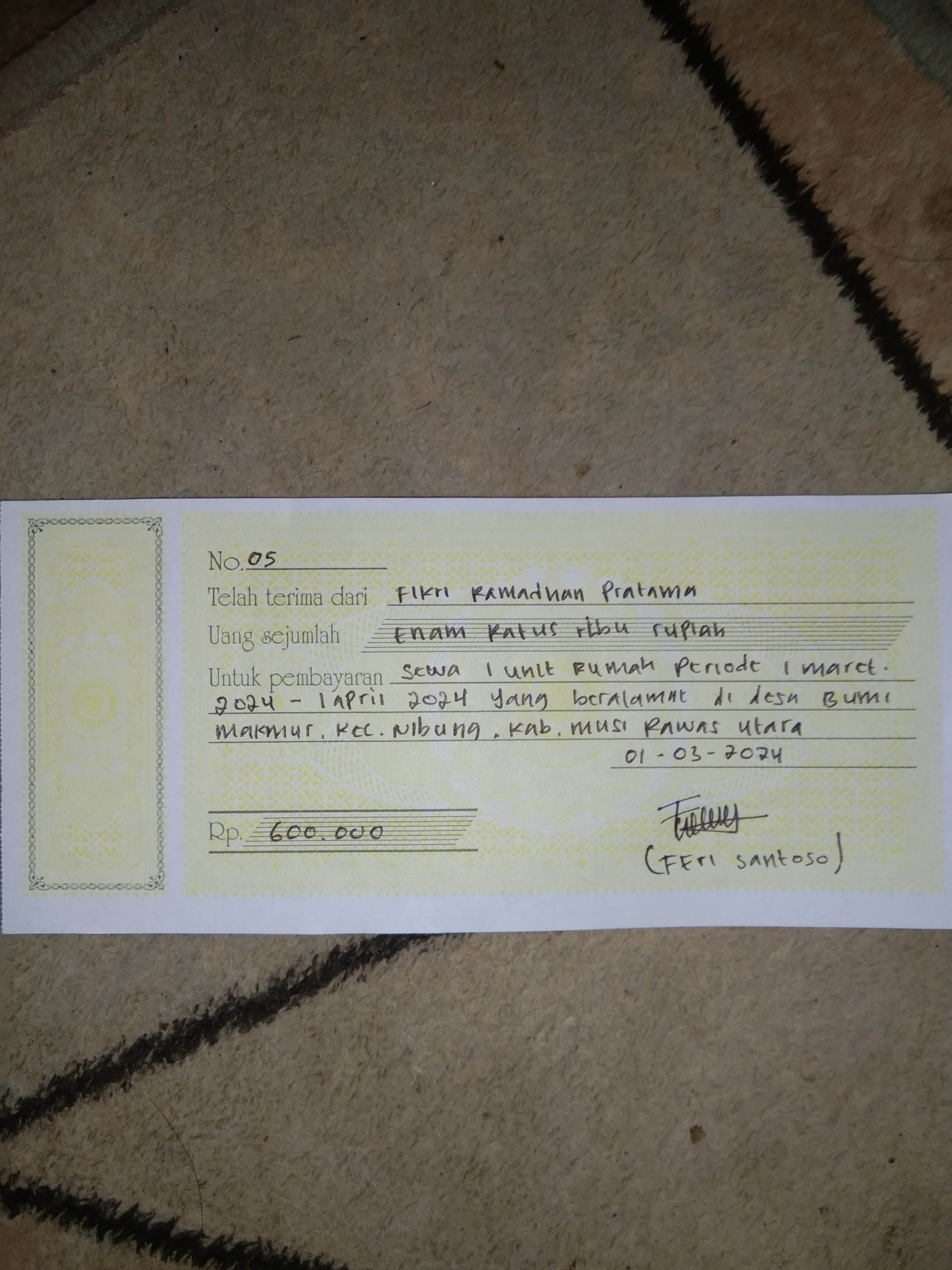 Dana digunakan untuk 1. Uang kontrakan di (Nibung Musi Rawas Utara) satu bulan Rp600.000 2. susu chil-mil Morinaga 6-12 bulan ukuran 800 gram Rp385.000 3. pempes Mamypoko pant ,ukuran M ,isi 9 , Rp20.000 x 2 = Rp40.0002024-04-25 11:05:01