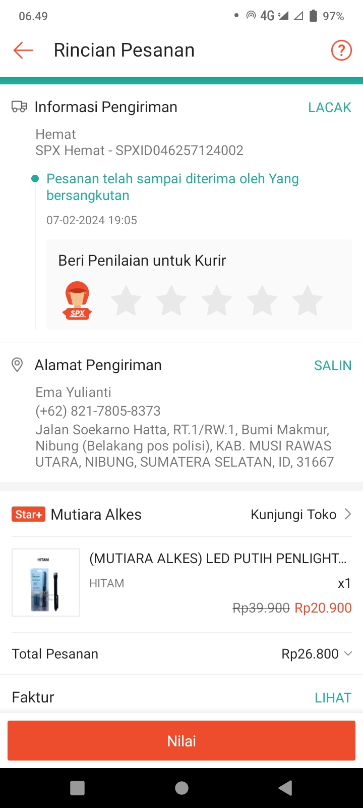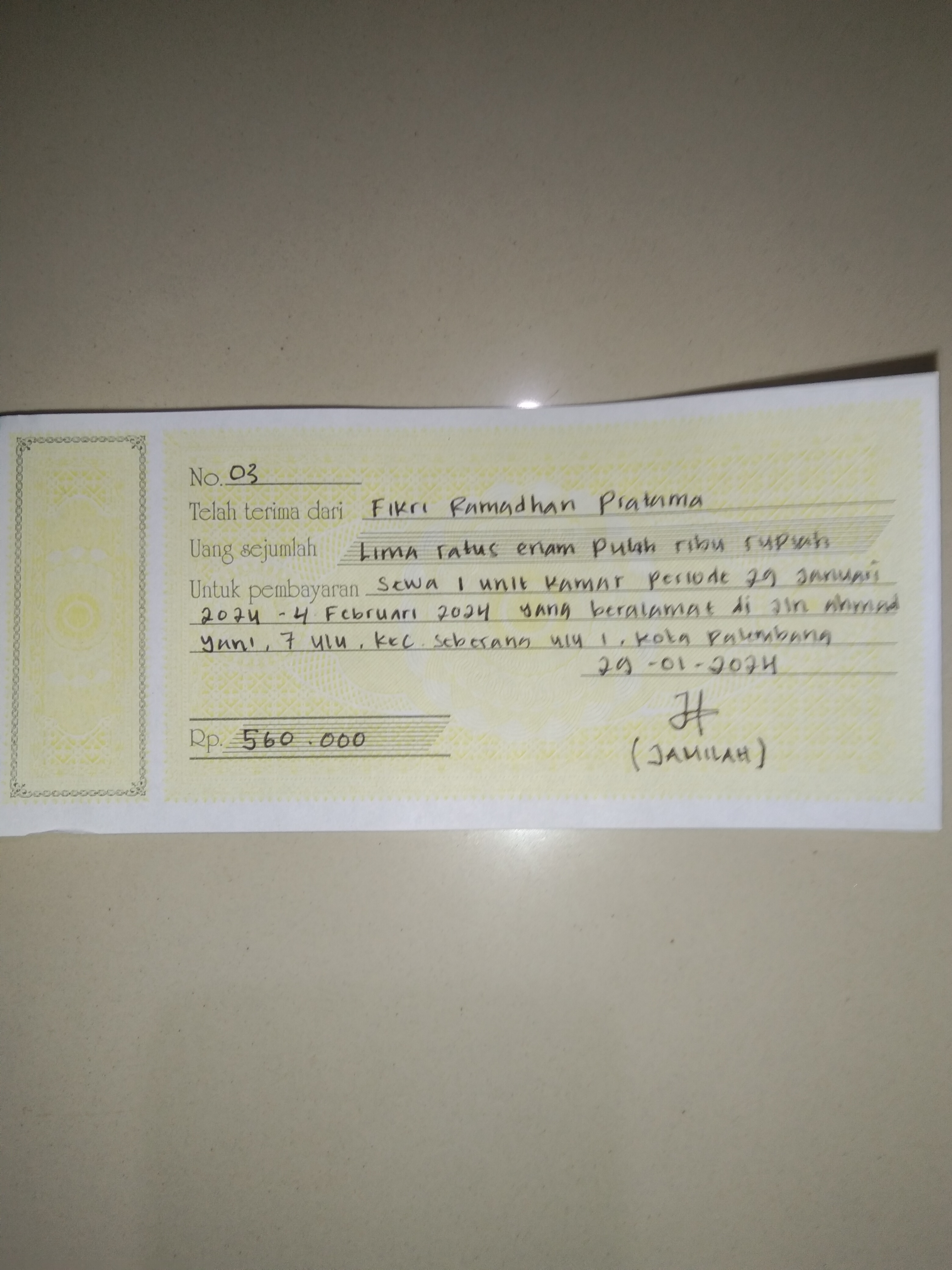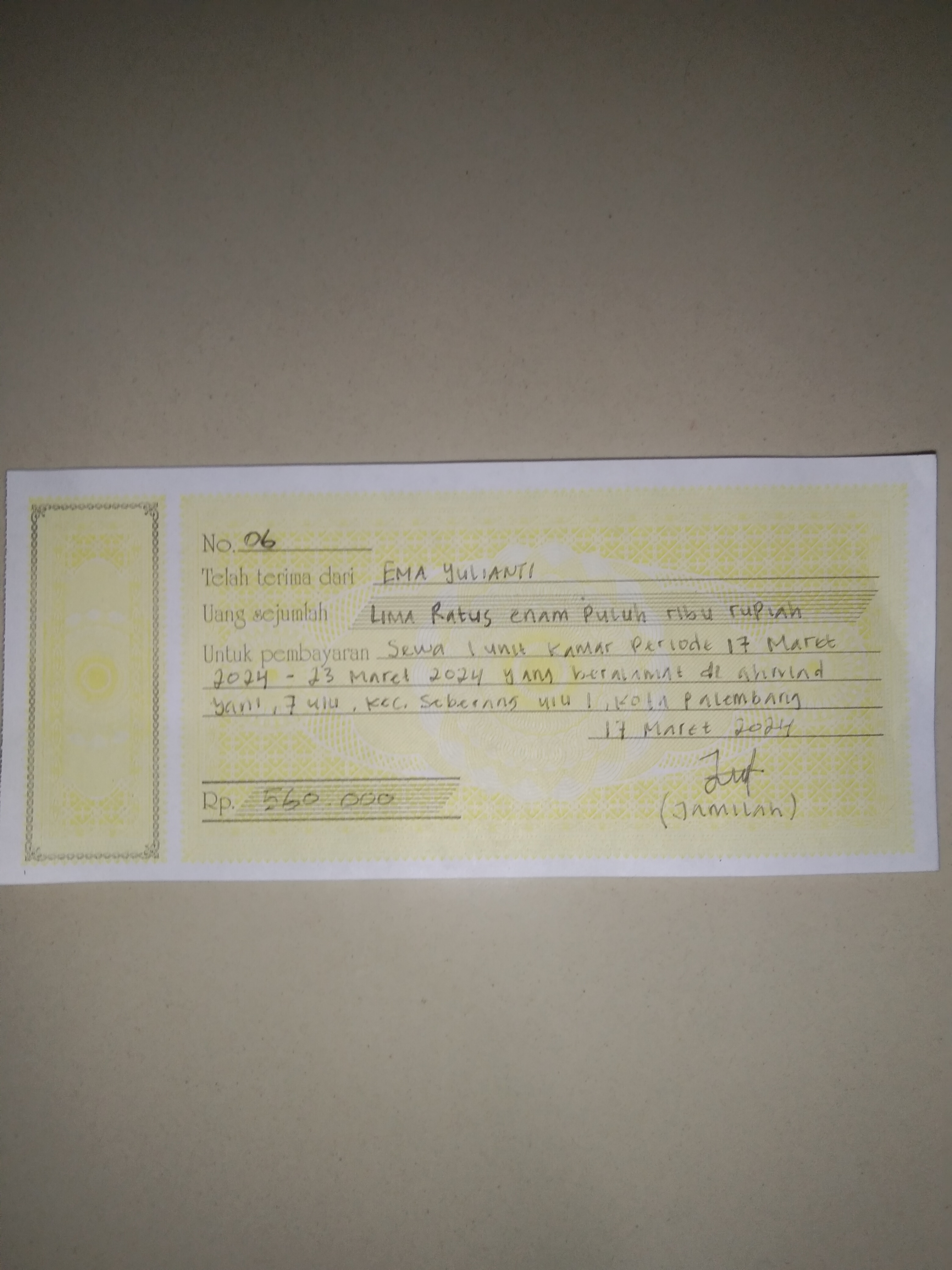 Dana digunakan untuk 1. Uang kontrakan di (Nibung Musi Rawas Utara) satu bulan Rp600.000 2. susu chil-mil Morinaga 6-12 bulan ukuran 800 gram Rp385.000 3. pempes Mamypoko pant ,ukuran M ,isi 9 , Rp20.000 x 2 = Rp40.0002024-04-25 11:05:01