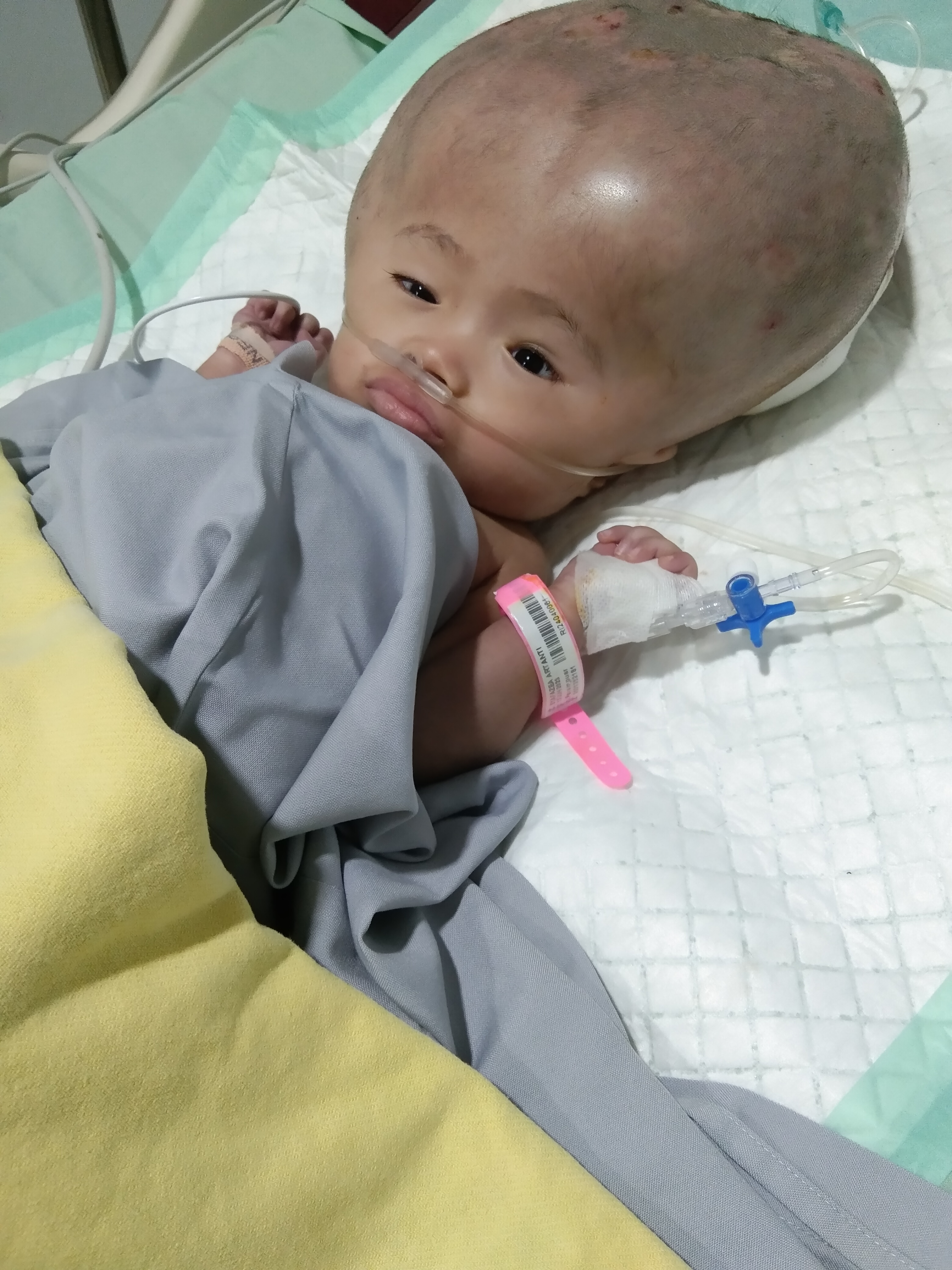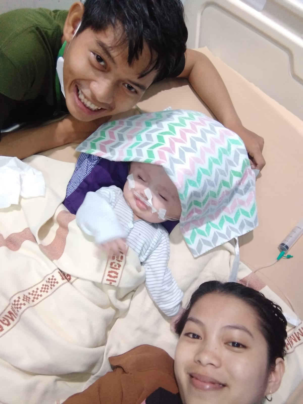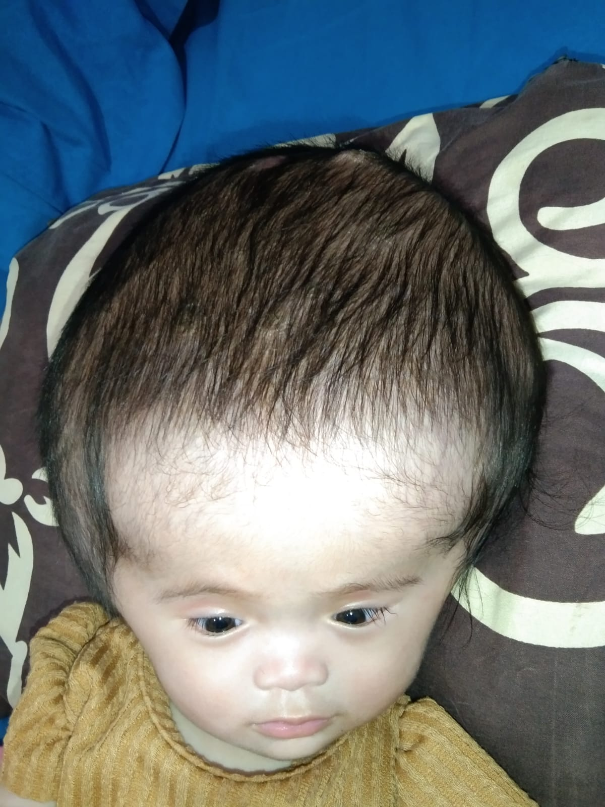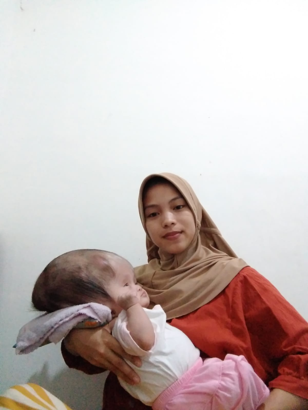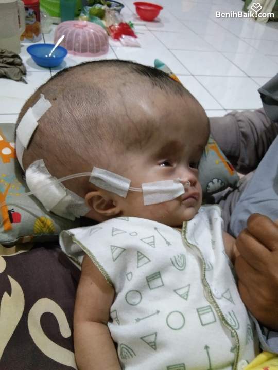 Syafazea Artanti (6 bulan) didiagnosa penyakit hidrosefalus sejak lahir, yaitu menumpuknya cairan di dalam rongga di dalam otak yang menyebabkan kepala membesar.