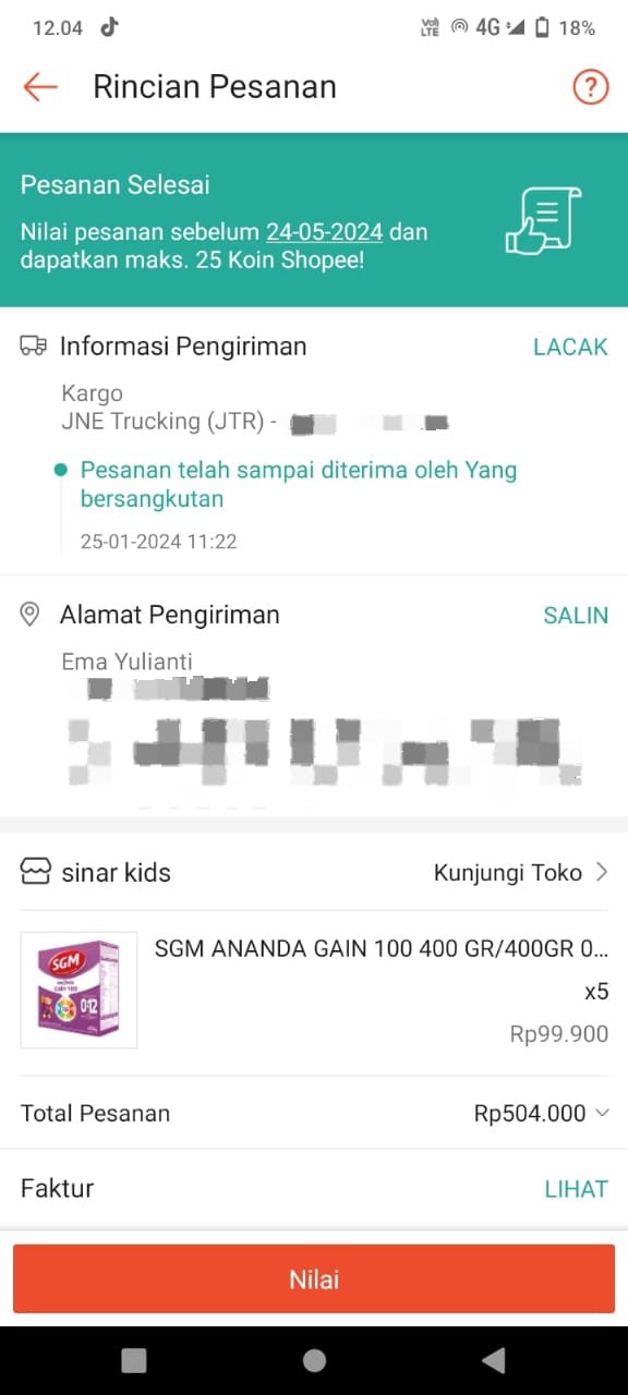 5. Susu SGM Ananda isi 1kg untuk 6 -12 bulan Rp99.000 x 2 = Rp198.000