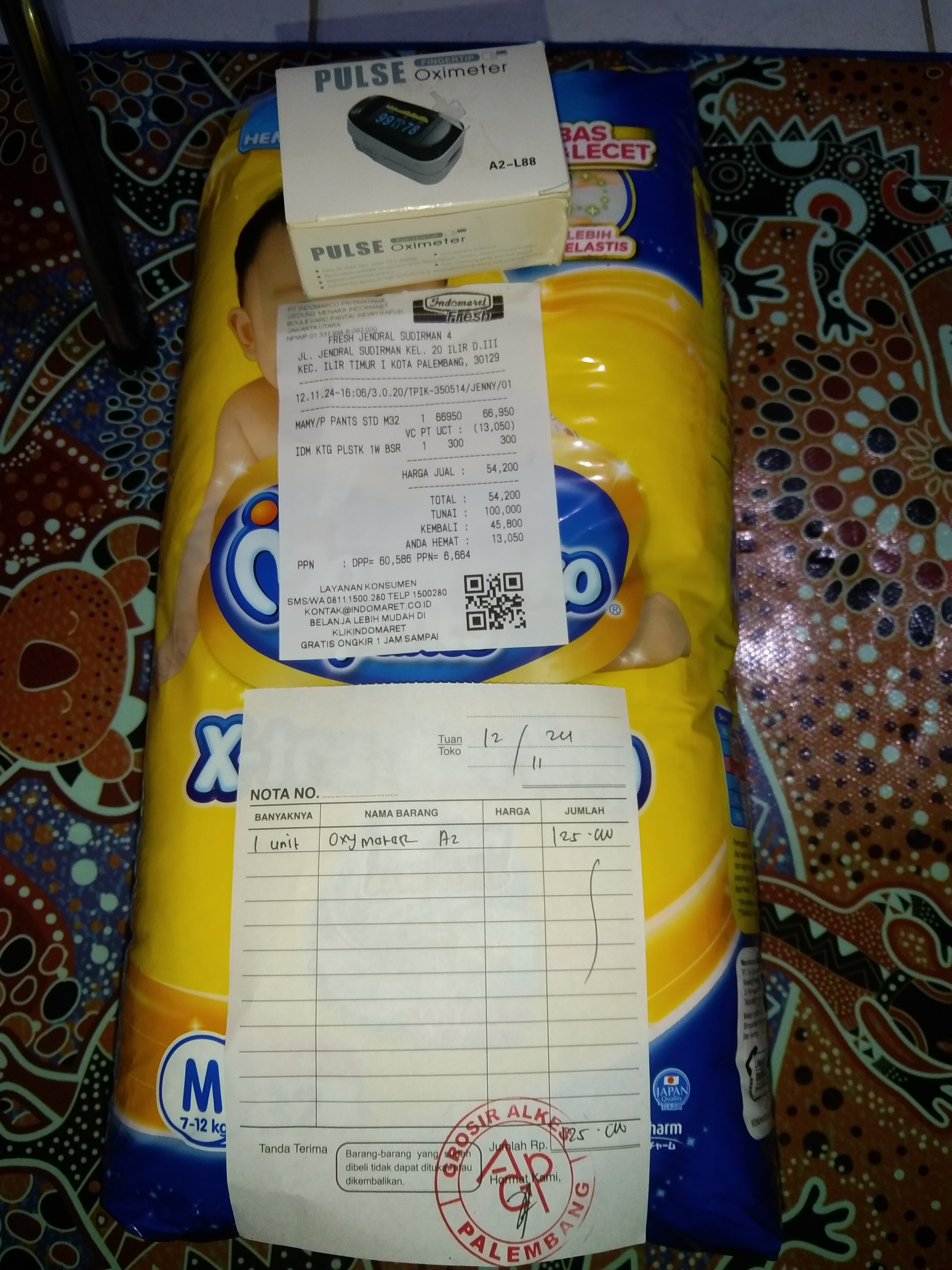 Dana digunakan untuk 1.Susu SGM 400gram 1 tahun + Rp99.000 x 3 pcs = Rp297.000 2. Pampes Mamypoko pants isi 32 ukuran M Rp56.000 3. Alat saturasi oksigen Rp120.000 4. Konsumsi untuk 2 orang selama 16 hari di Rumah Sakit Rp800.000.2024-11-12 09:12:44