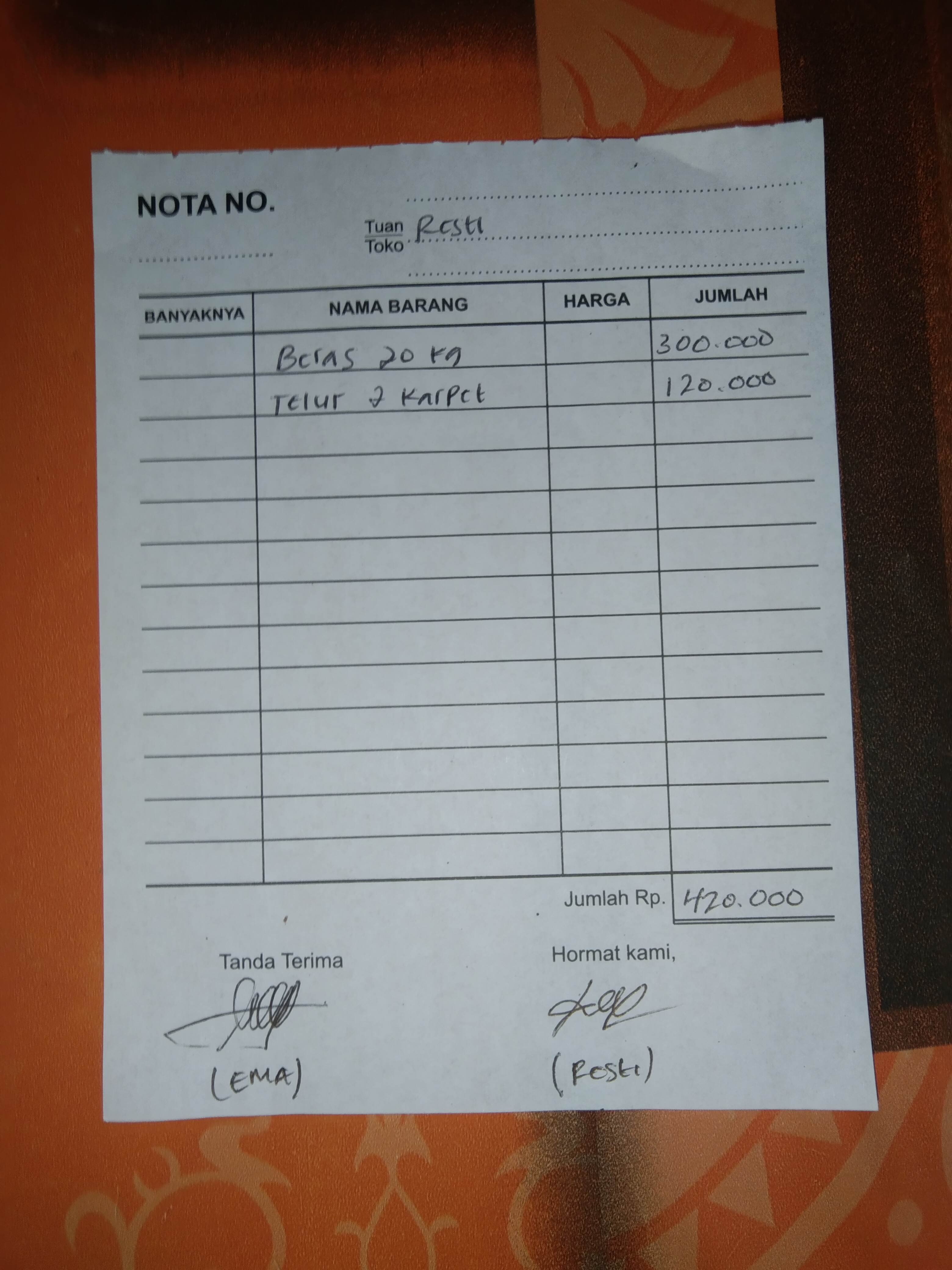 8.Beras Rp15.000 x 20kg = Rp300.000