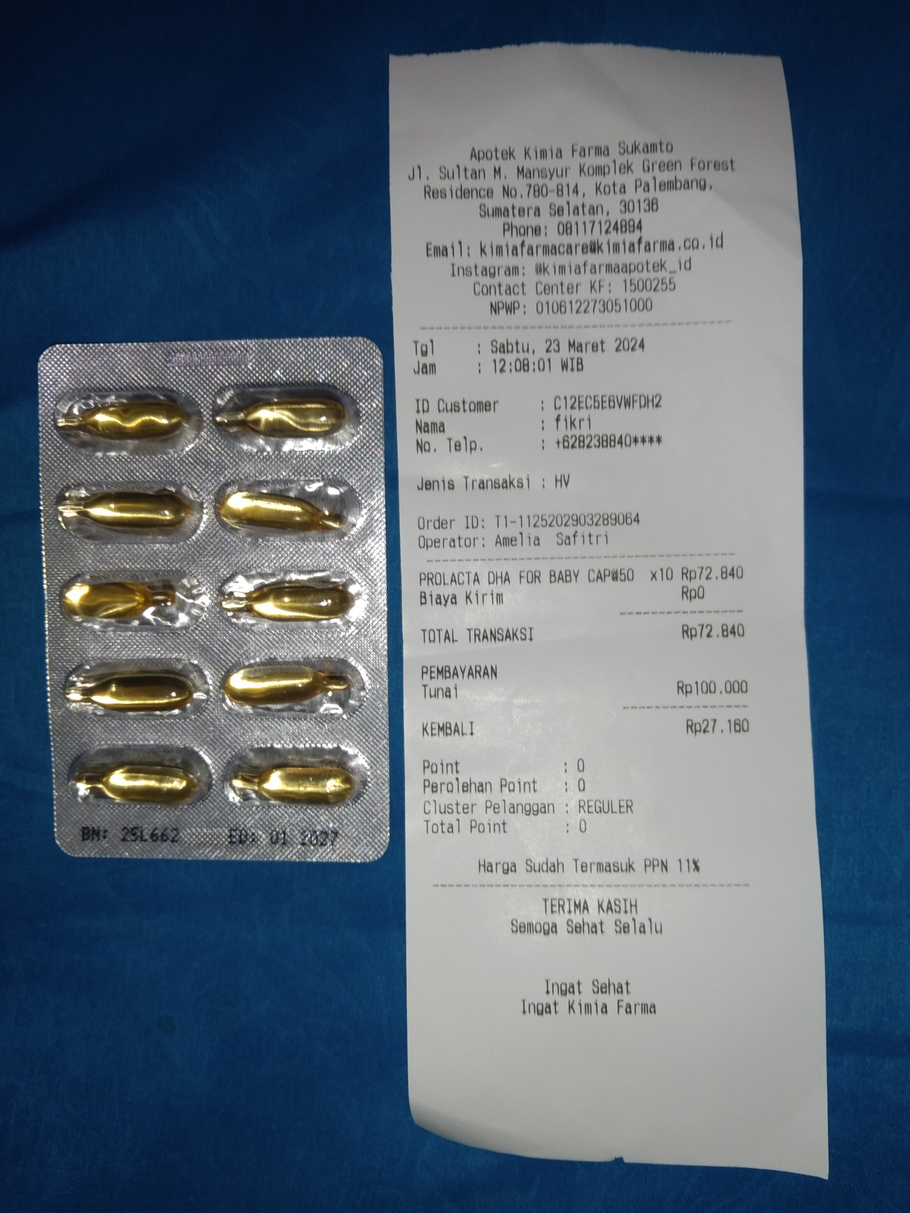 4. Vitamin Prolacta DHA Rp6.500 x 10 Pcs = Rp65.000