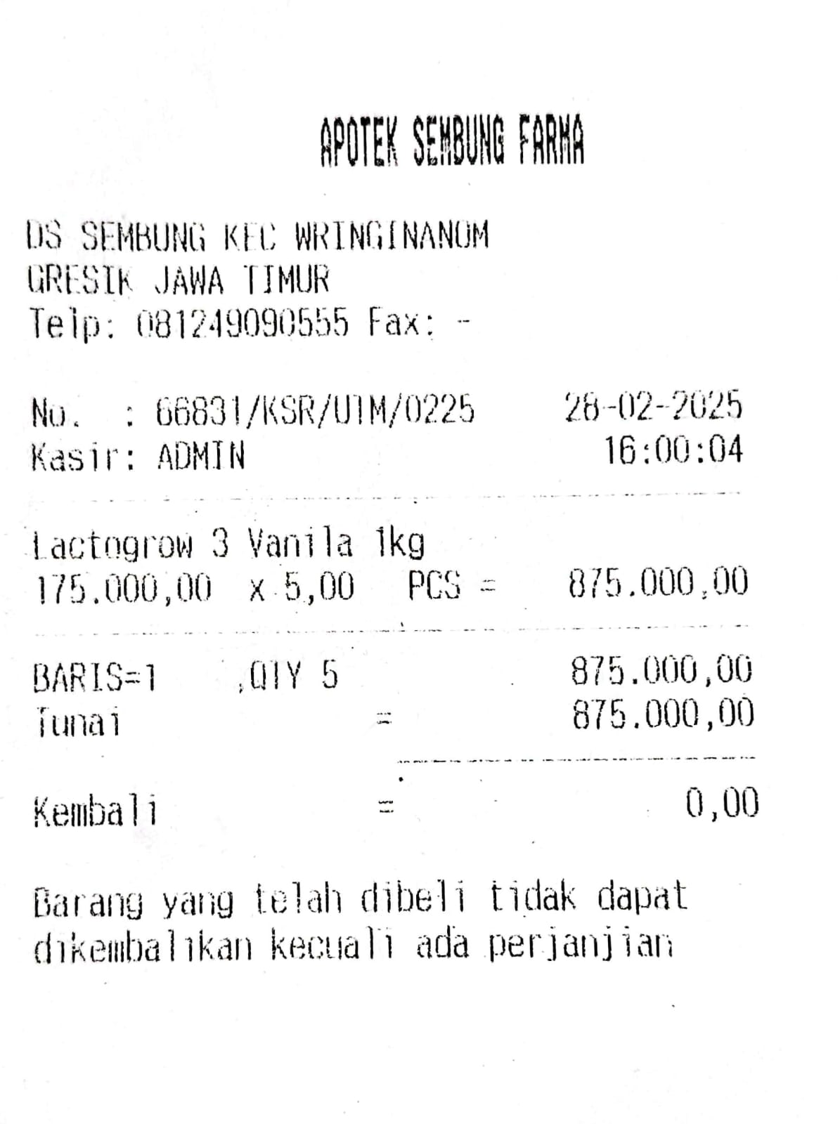 Dana digunakan untuk Susu Lactrogrow Rp75.000 x 5 dus = Rp875.0002025-02-20 09:18:20