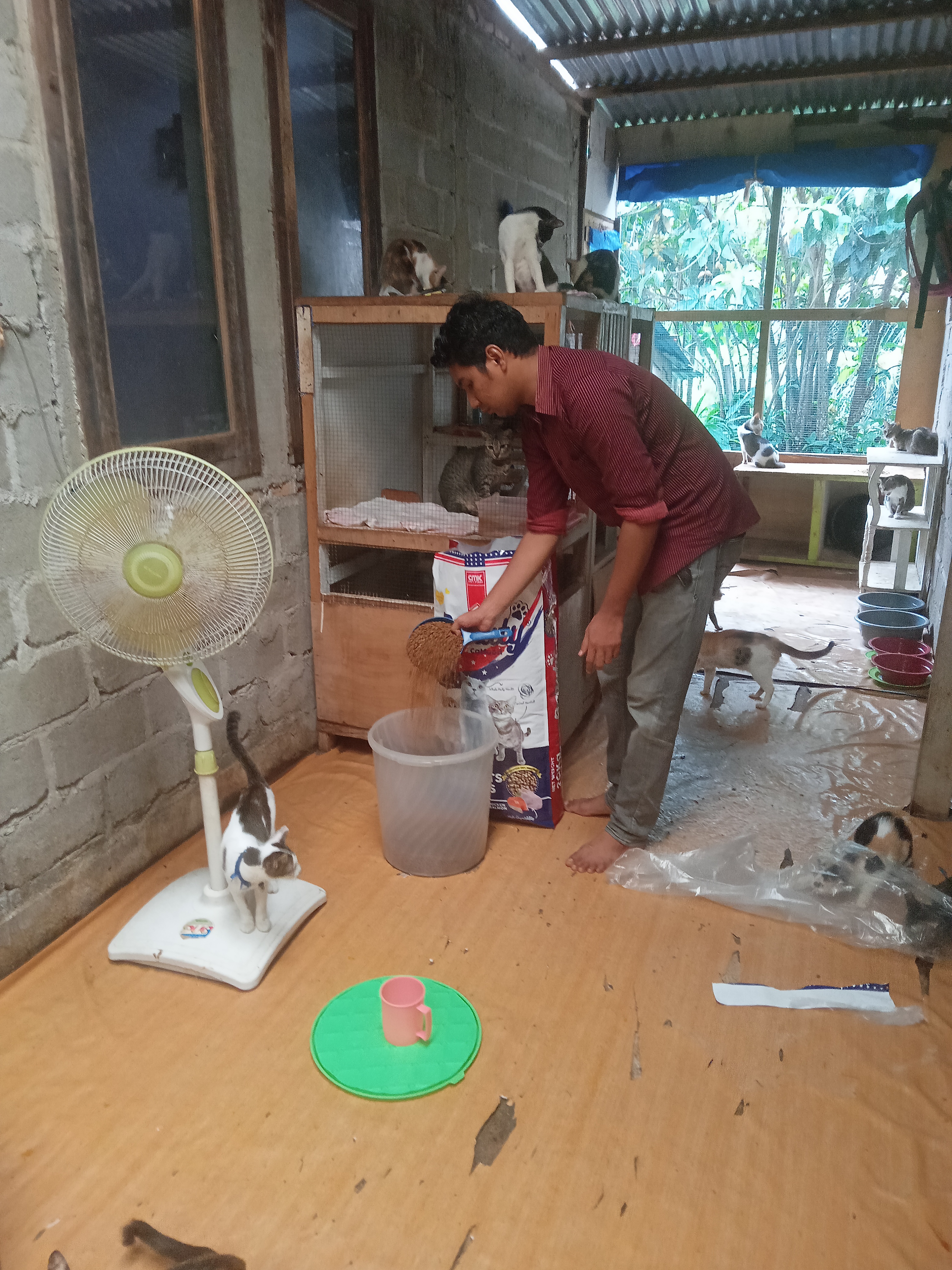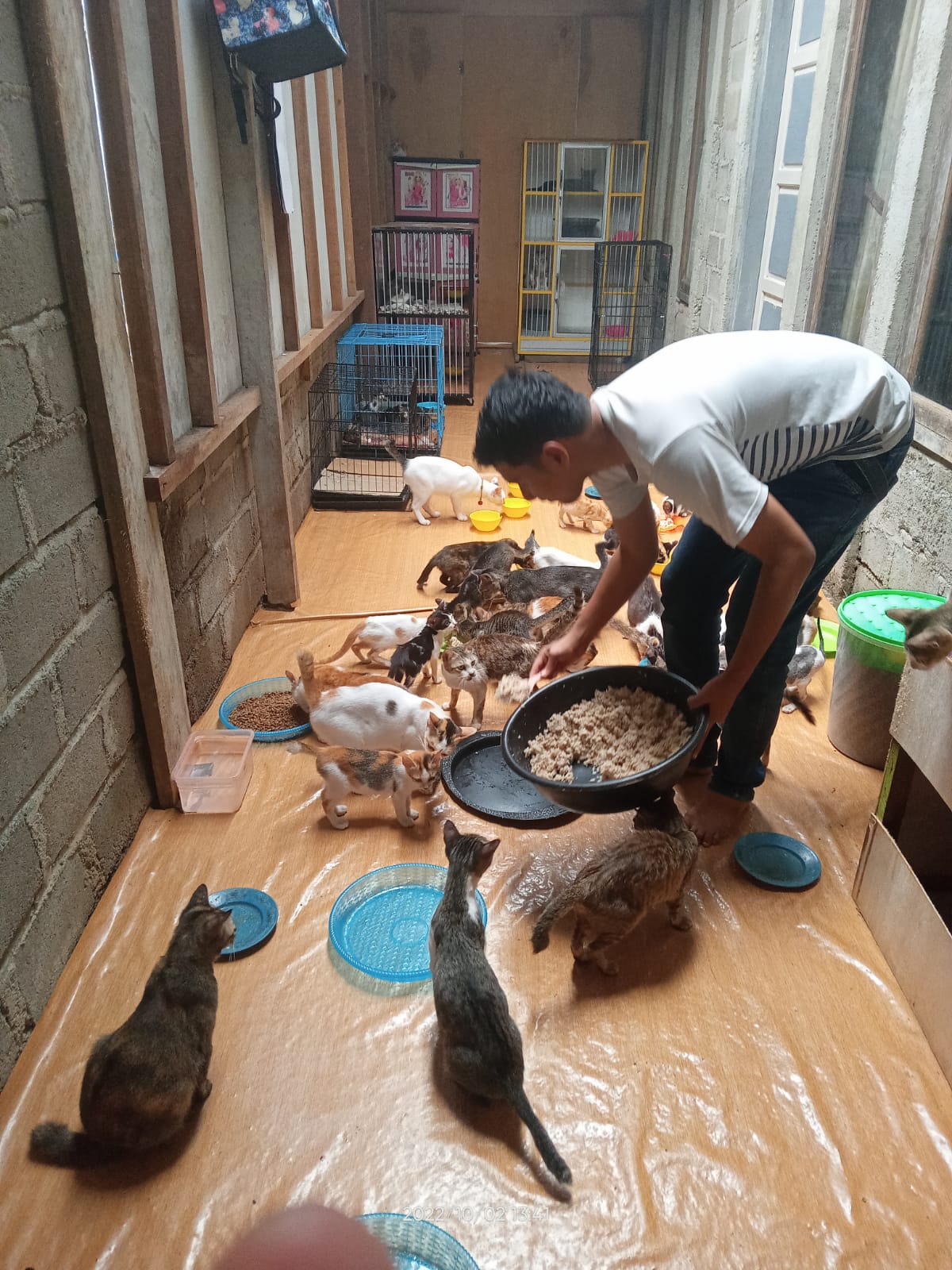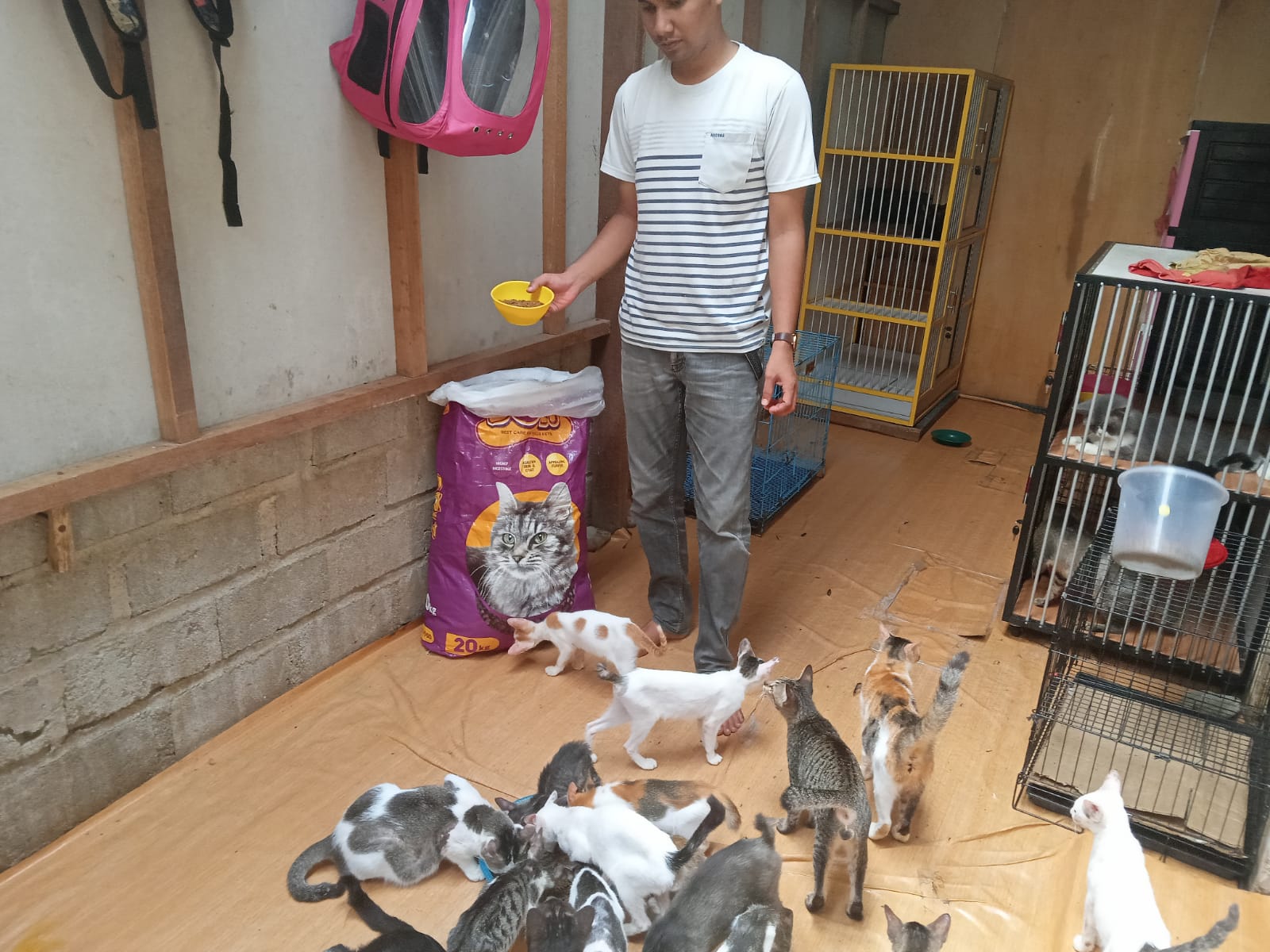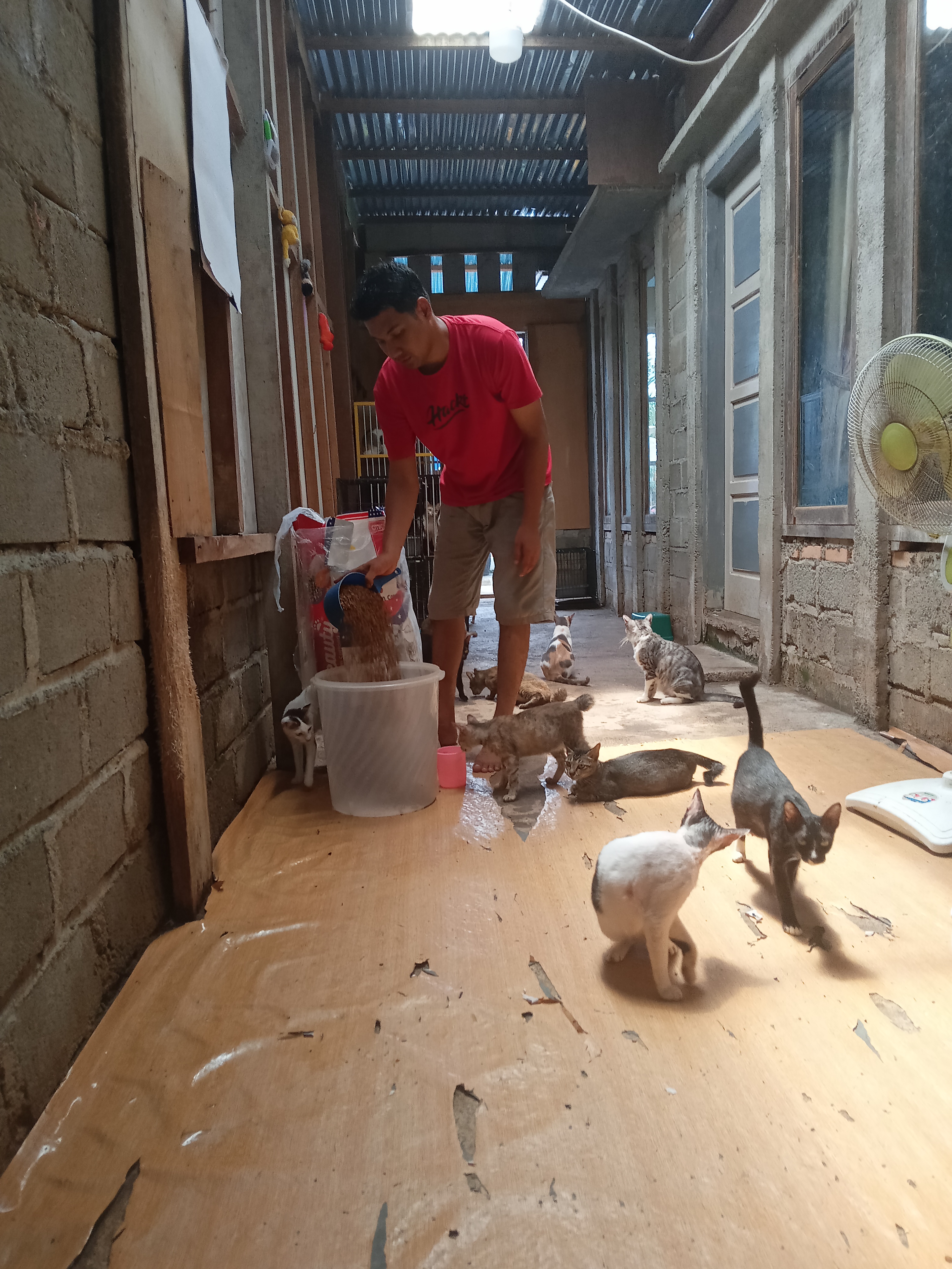 Saat ini ada sekitar 62 ekor kucing yang saya rawat, baik yang jantan atau betina. Saya ingin bisa memberikan keamanan dan kenyamanan bagi para kucing, hal pertama yang ingin saya miliki tentu rumah yang layak bagi mereka, setidaknya rumah ini tidak bocor supaya bisa menampung lebih banyak lagi kucing.