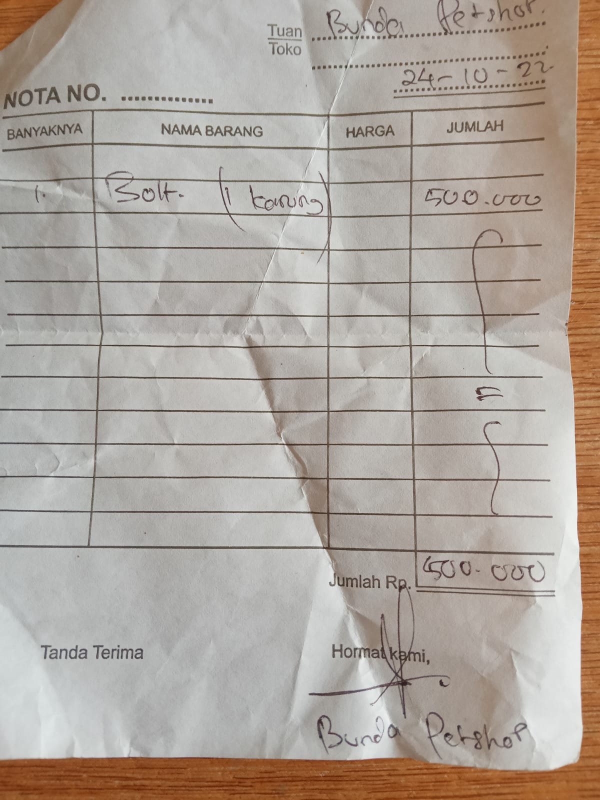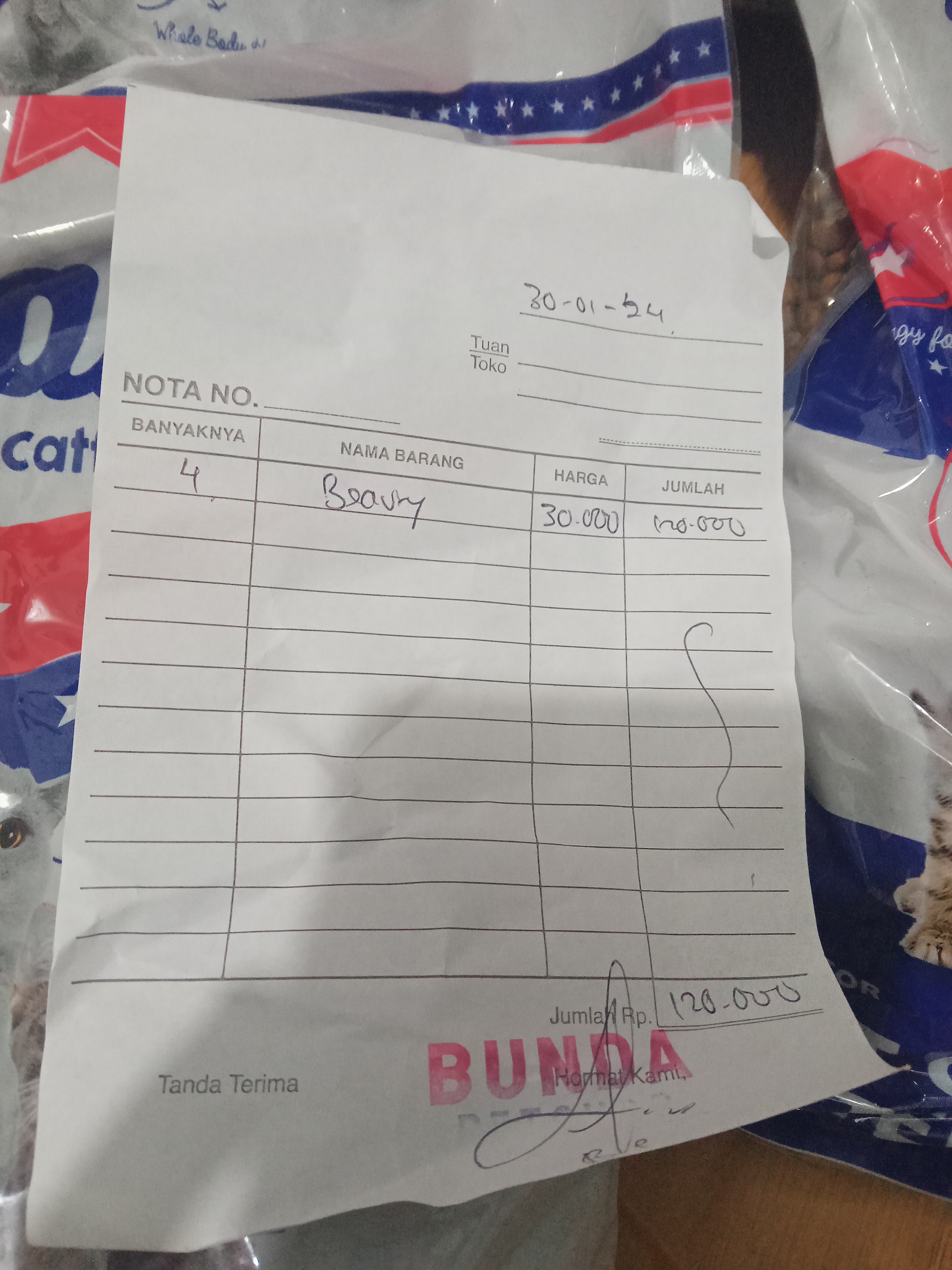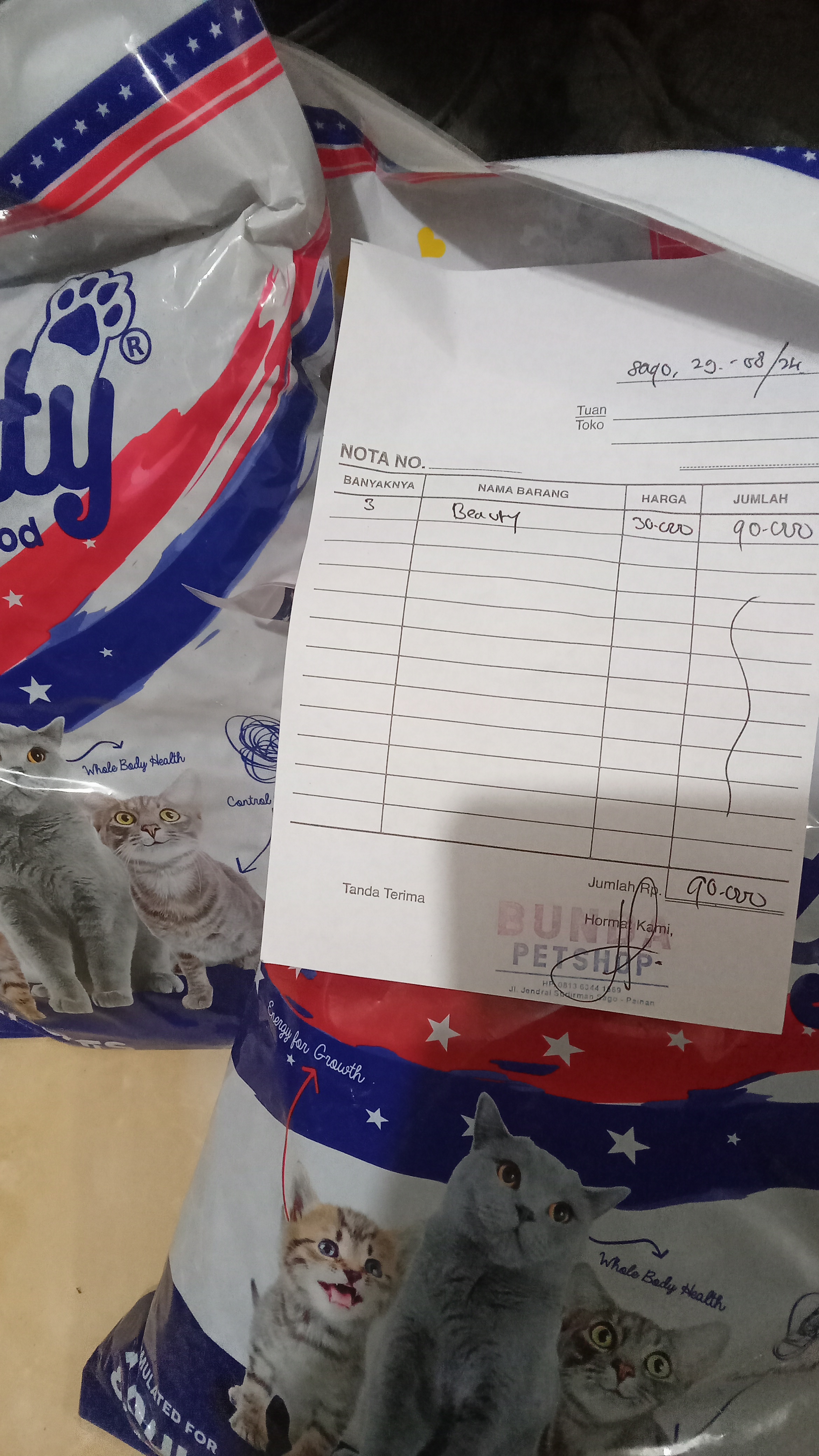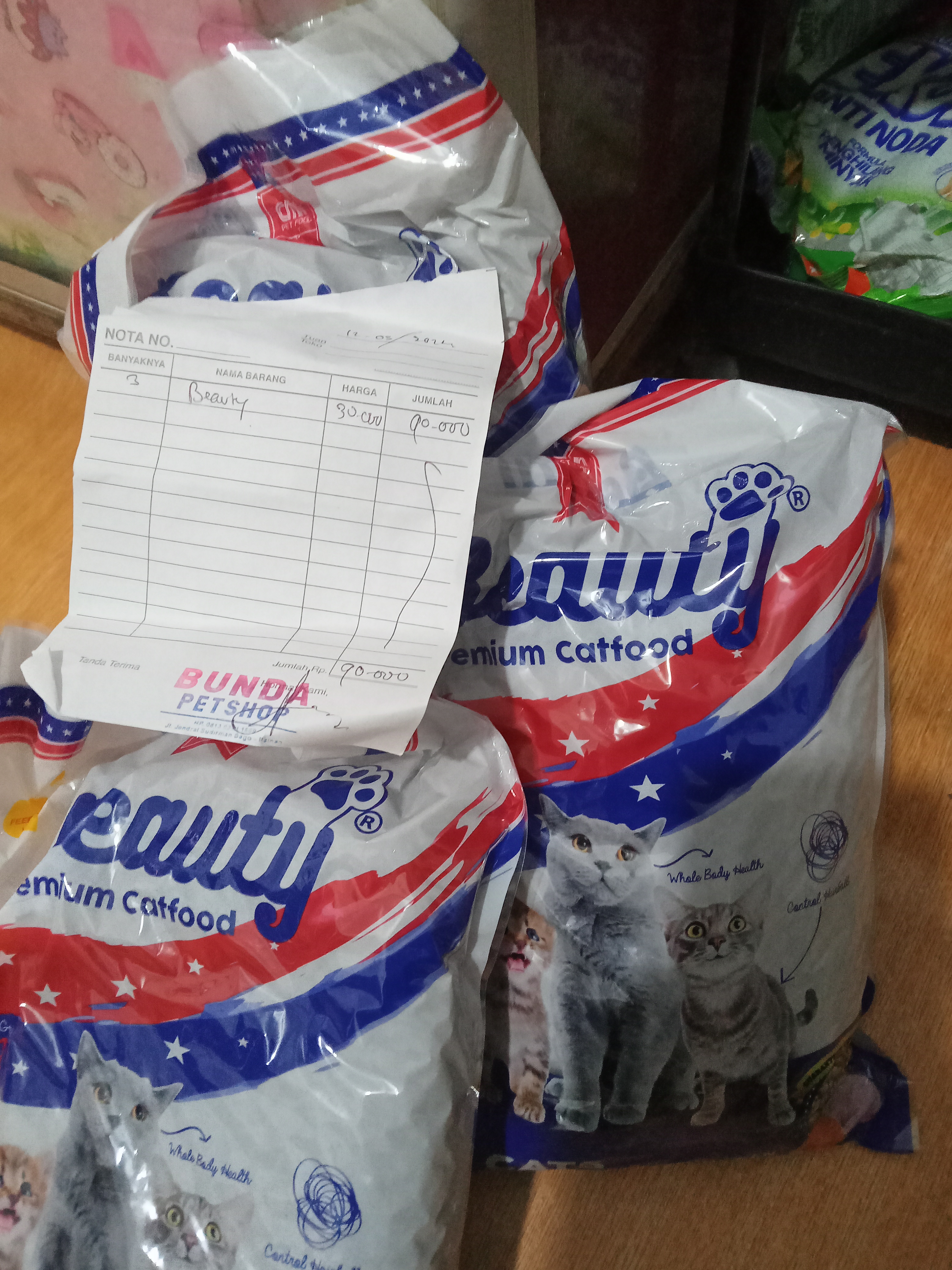 Alhamdulillah berkat bantuan dari #TemanBaik, saya dapat membeli stok makanan untuk anabul sebagaimana pembeliannya sudah saya lampirkan nota dan dokumentasi barangnya ya.