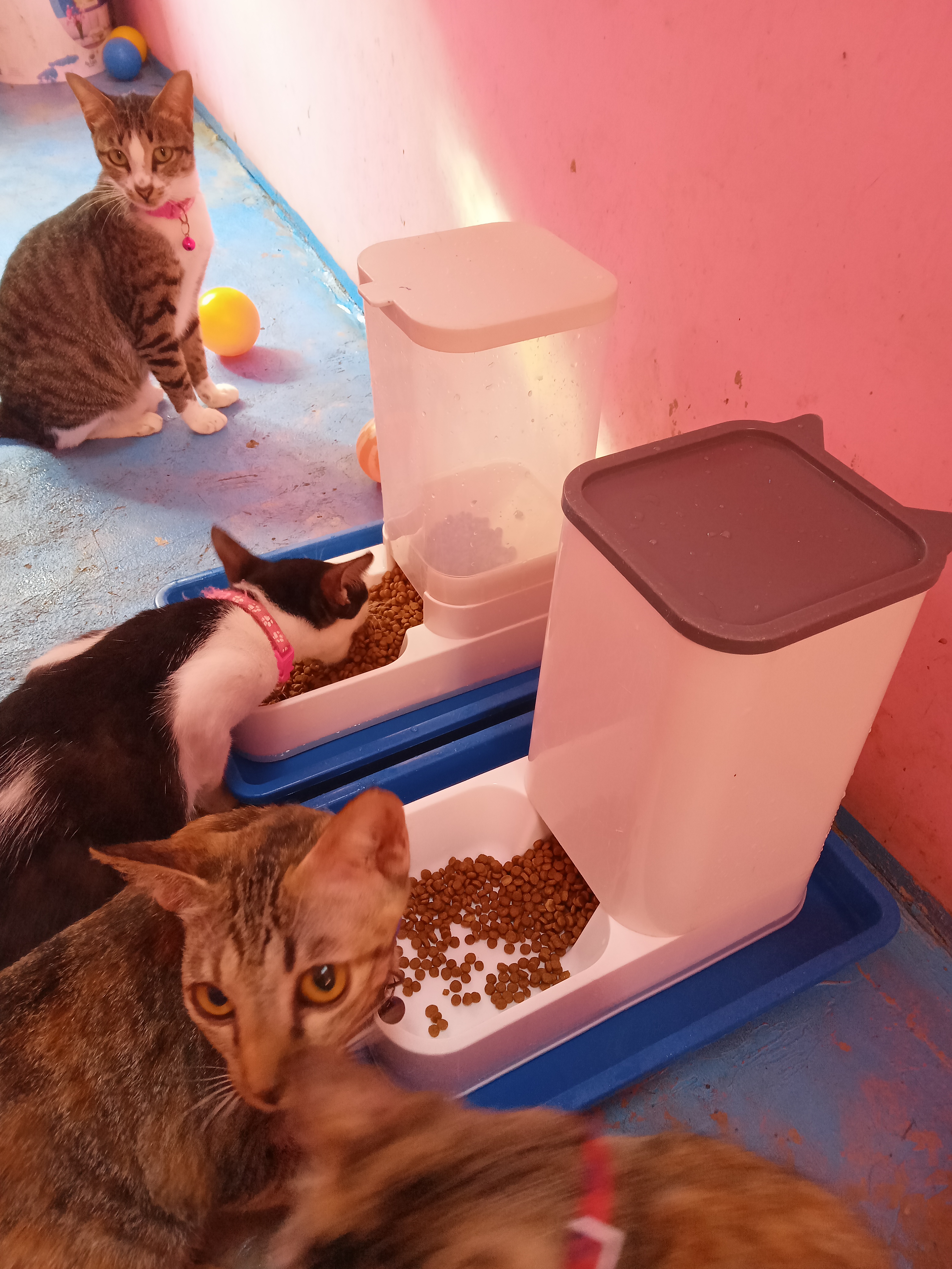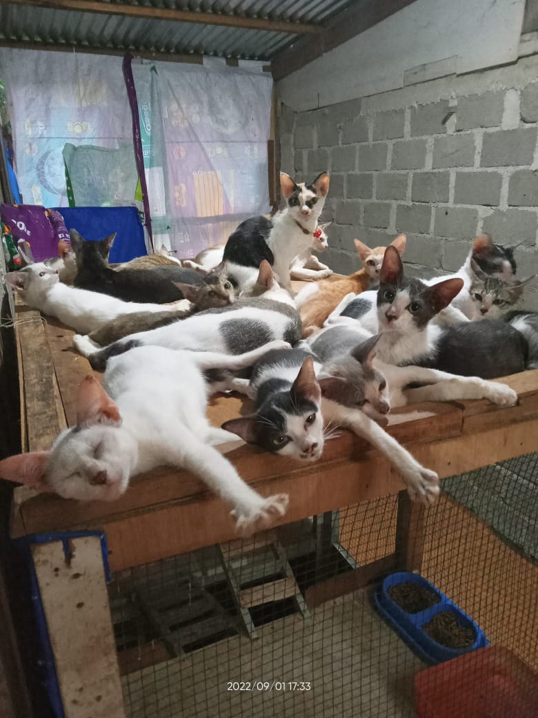 Alhamdulillah, berkat galang dana di platform di BenihBaik.com dan donasi dari TemanBaik, aku tidak pernah kekurangan masalah pakan untuk anabul di sini yang totalnya 42 ekor.