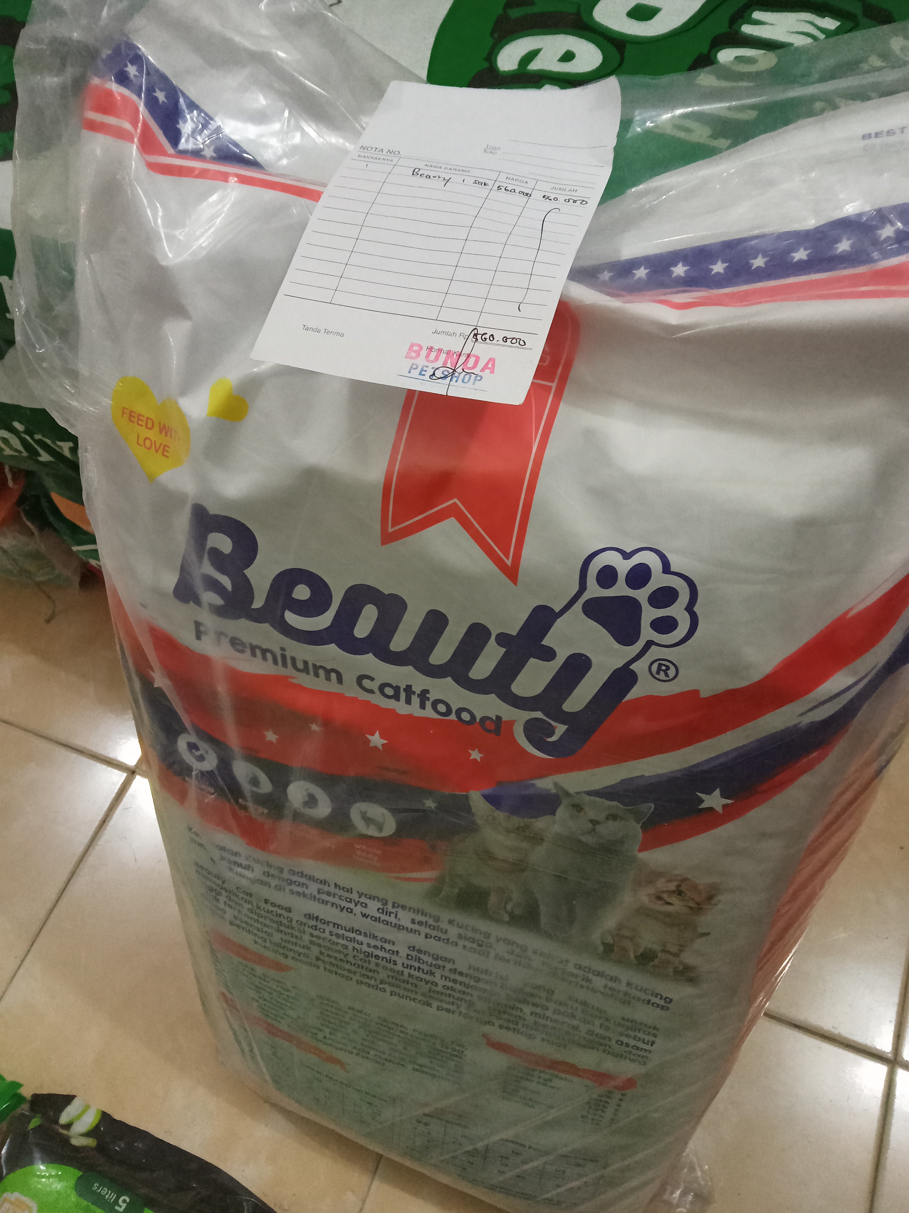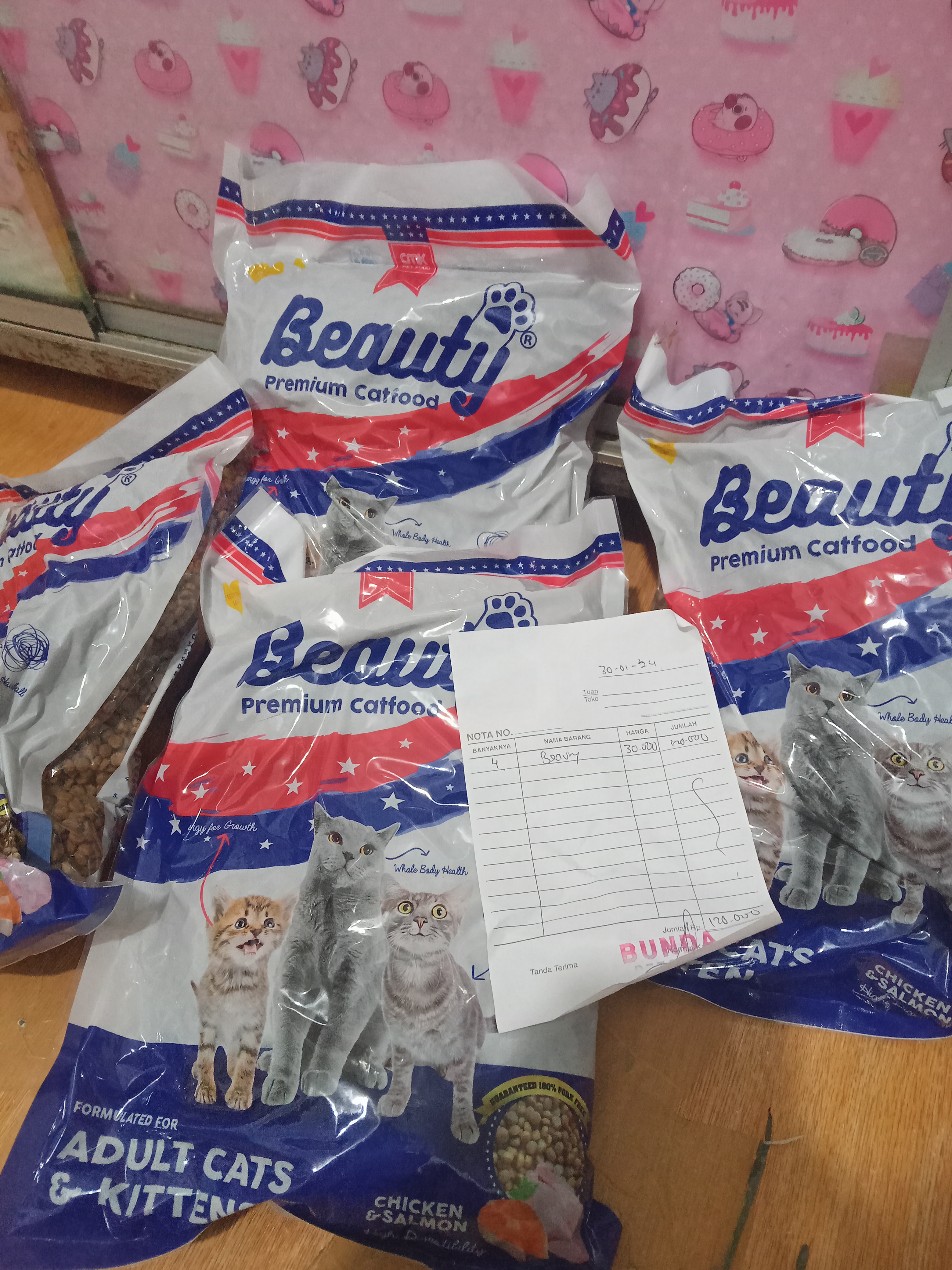 Dana telah digunakan untuk membeli 4 Kg makanan dry food beauty.