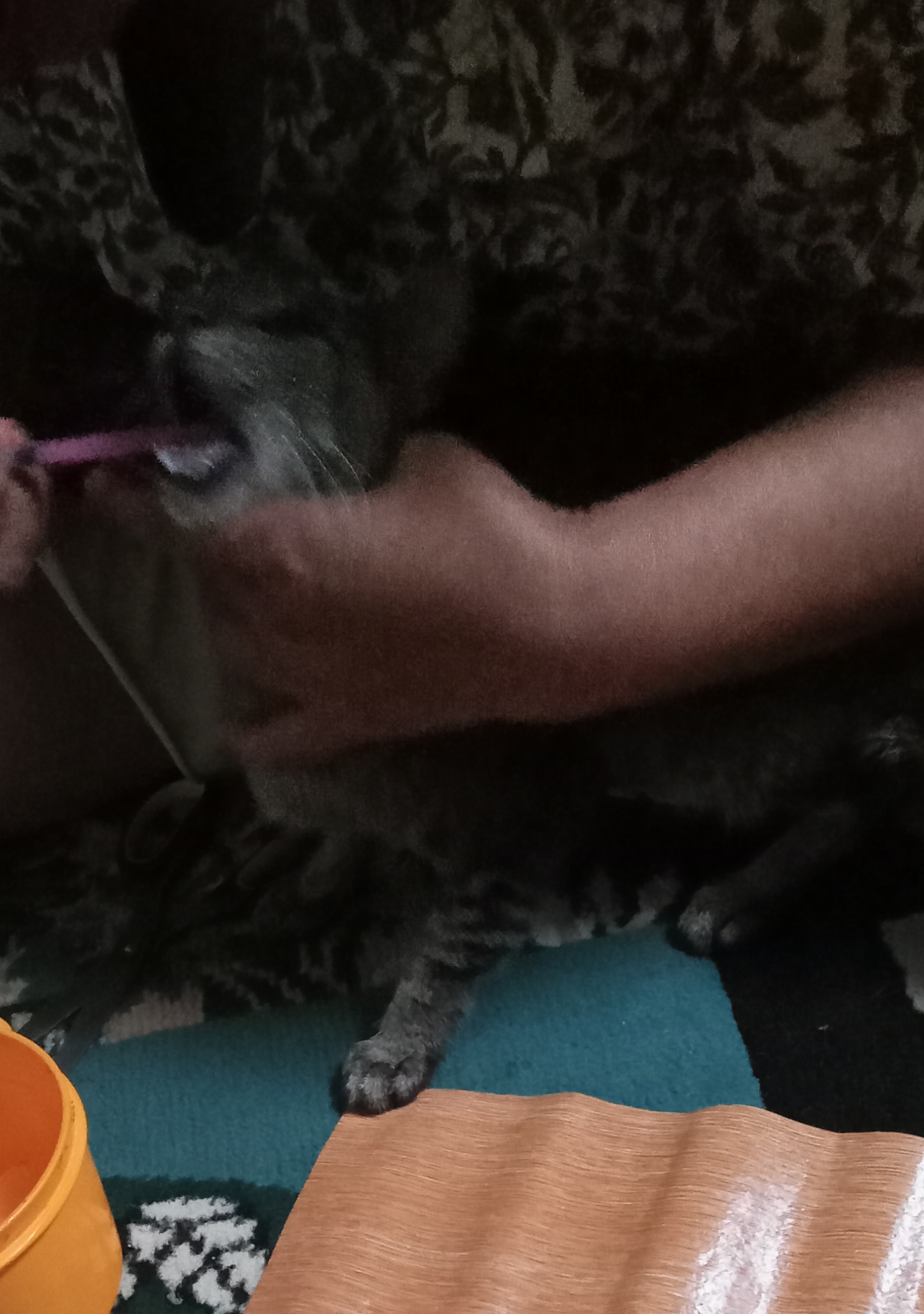 Saya ingin mengabarkan update dari hasil donasi TemanBaik. dana sudah digunakan dengan baik untuk membeli susu khusus kucing, pasir kucing, obat-obatan dan makanan basah. Pemberian obat pada kucing juga dibantu oleh orang tua saya.